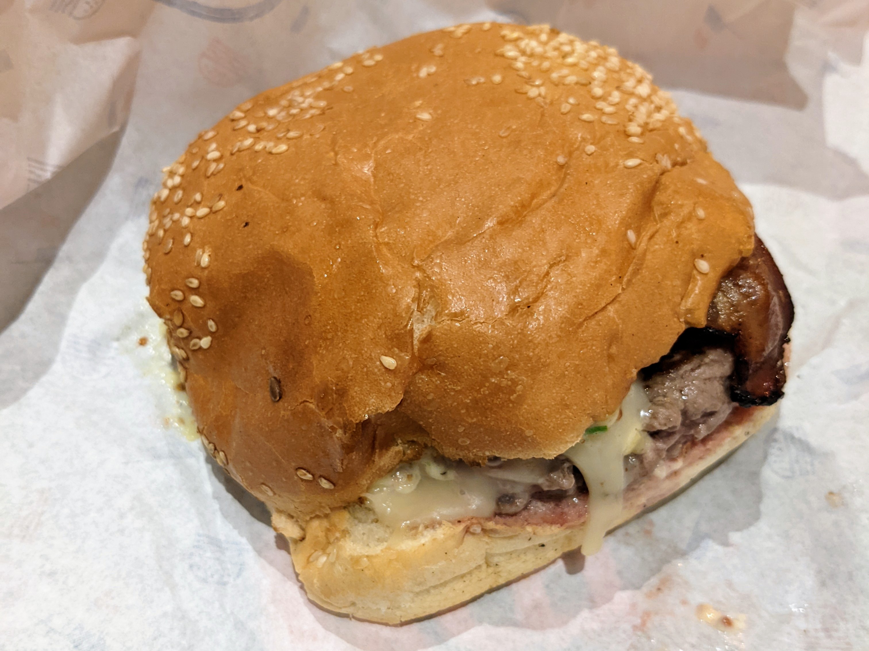Pour moi c'est moyen: je n'ai pas aimé le pain et surtout la sauce ketchup hyper sucrée qui a ecrasé tout le reste. La salade est malheureusement à éviter. Le reste est bon (frites et viande). Dommage.