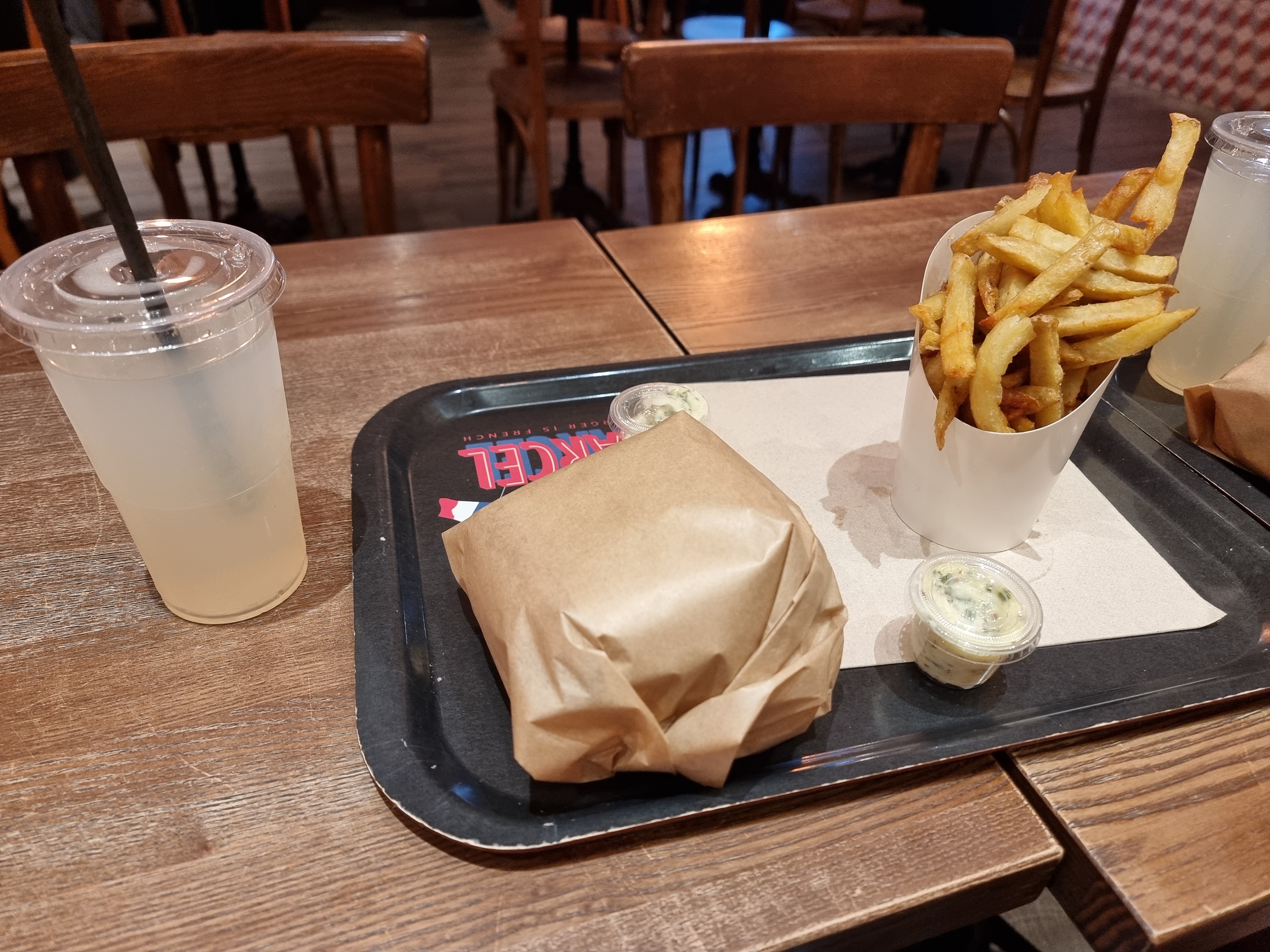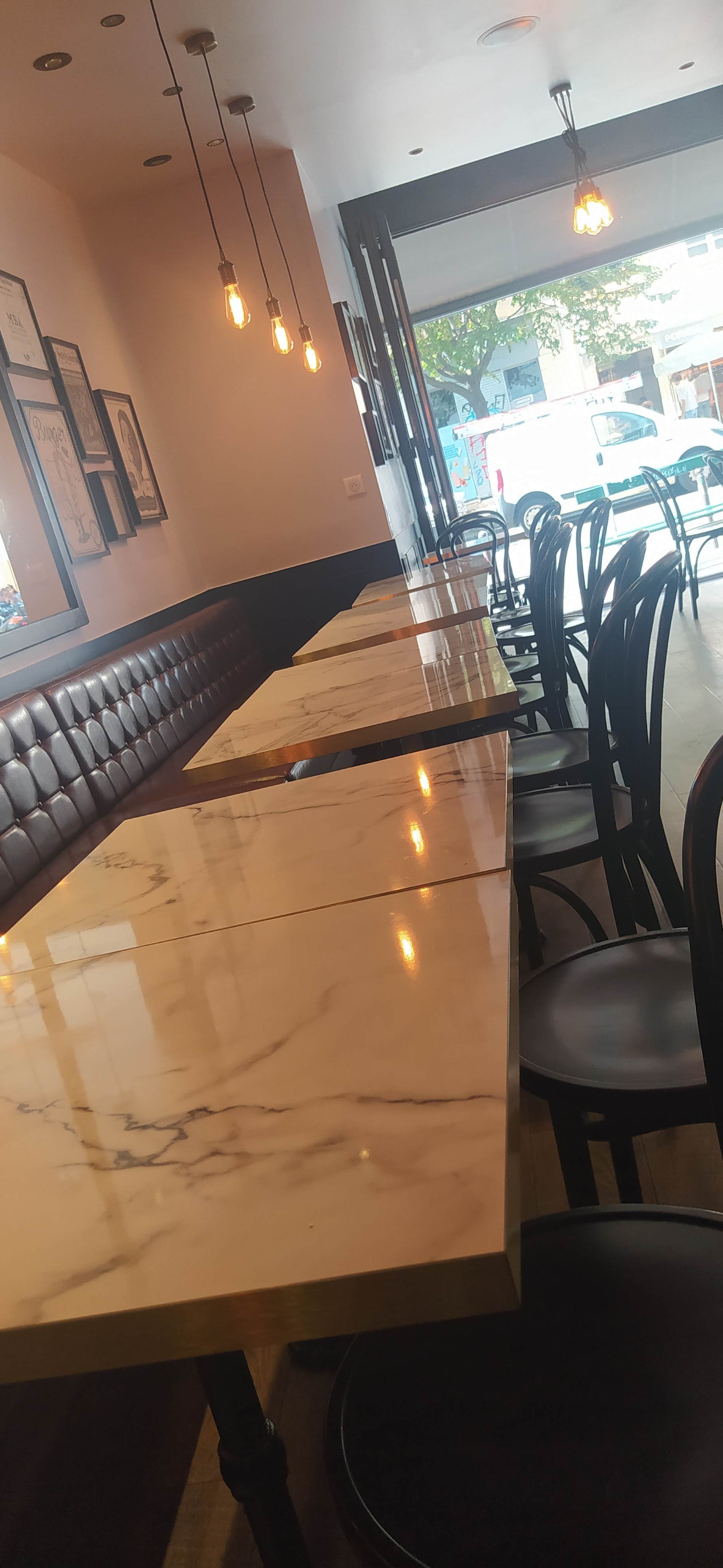 Croyant qu' il s'agissait d'un resto huppé a cause de la déco sombre et de loin chère, je suis allée aujourd'hui après avoir compris que c'était un macdo français. Personnel sympa. Hamburger moyen: la viande excellente le reste sub par. Frites fraîches mais leur goût est noyé dans le goût de l'huile pas changé depuis un bon moment. Dommage. Pour 13euros menu on devrait manger un peu mieux.