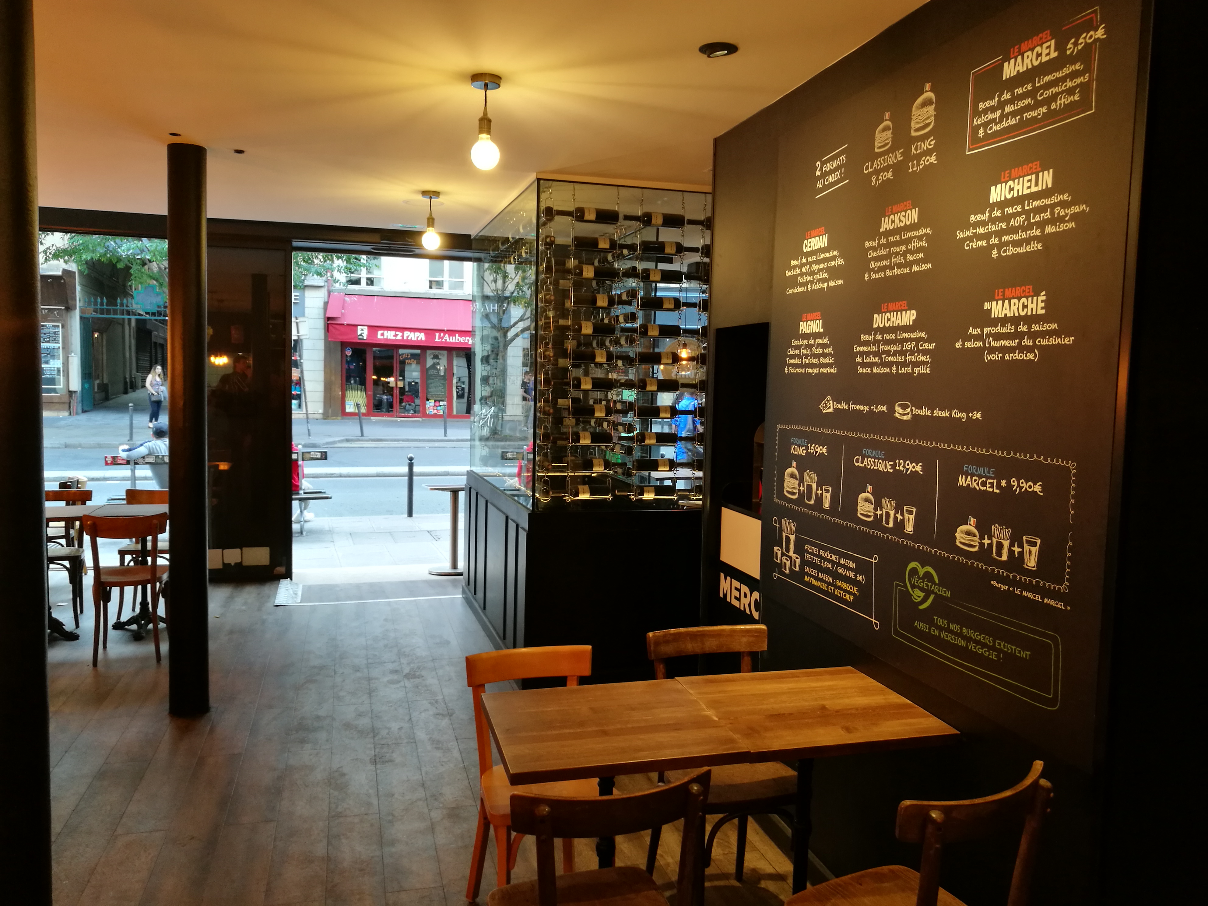 Les meilleurs burgers de tout paname ! Plus sérieusement, des ingrédients frais et de bonne qualité, des recettes originales et délicieusement préparées, un service sympathique, jovial et rapide, un décor moderne et sobre mais original, que demander de plus ? Les prix sont tout à fait corrects étant donné la qualité des mets servis. Je recommande ce restaurant aux amateurs de hamburgers et de bonne cuisine, n'hésitez pas, vous ne le regretterez pas, je vous en donne ma parole ! Je souhaite au Roi Marcel (tout droit débarqué de Lyon) beaucoup de succès à Paris !