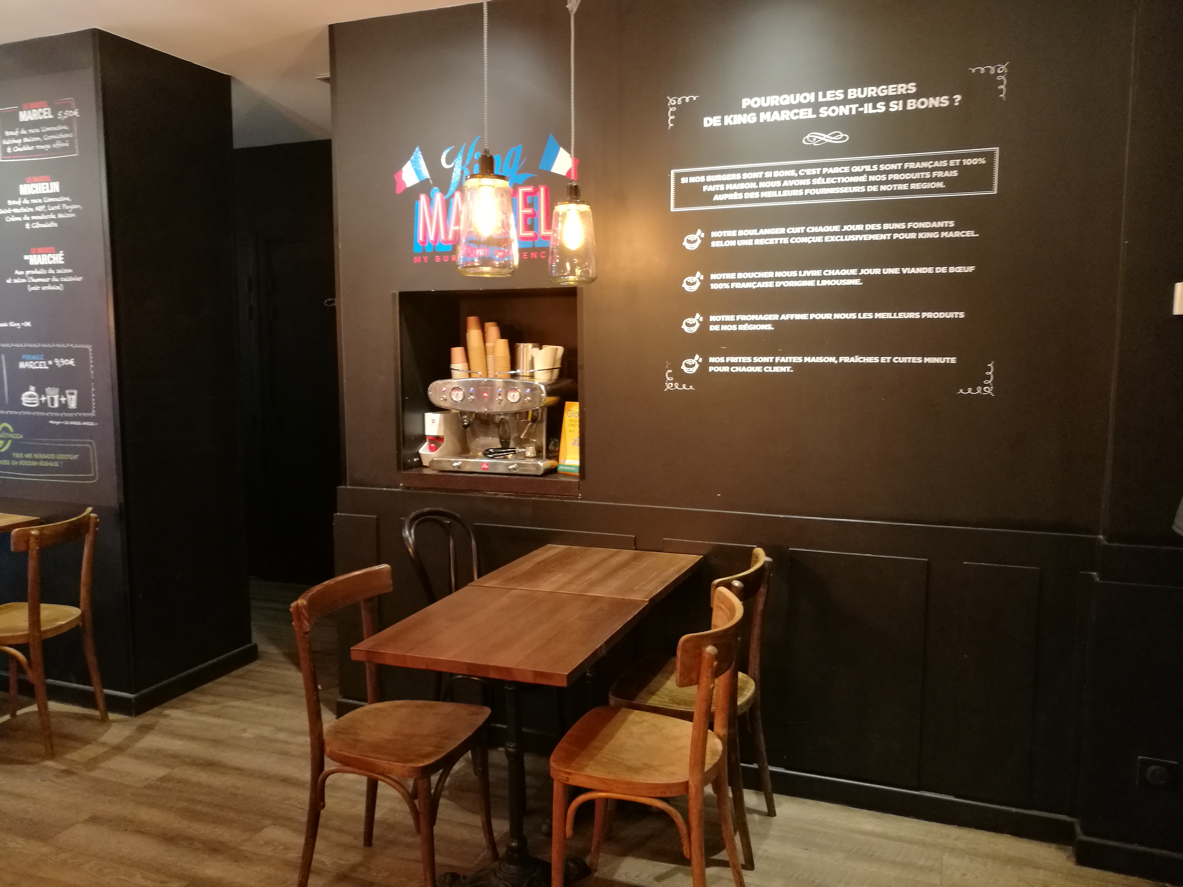 Cher Alexandre, Nous vous remercions de nous avoir posté un avis sur Google. Nous sommes en effet très attentif à la qualité des produits que nous proposons pour des burgers de qualité et 100% français. Nous avons aussi amélioré le décor de notre établissement pour que nos clients s'y sentent bien. Nous prenons bonne note de vos remarques et feront au mieux pour nous améliorer. À bientôt chez King Marcel, Marcel