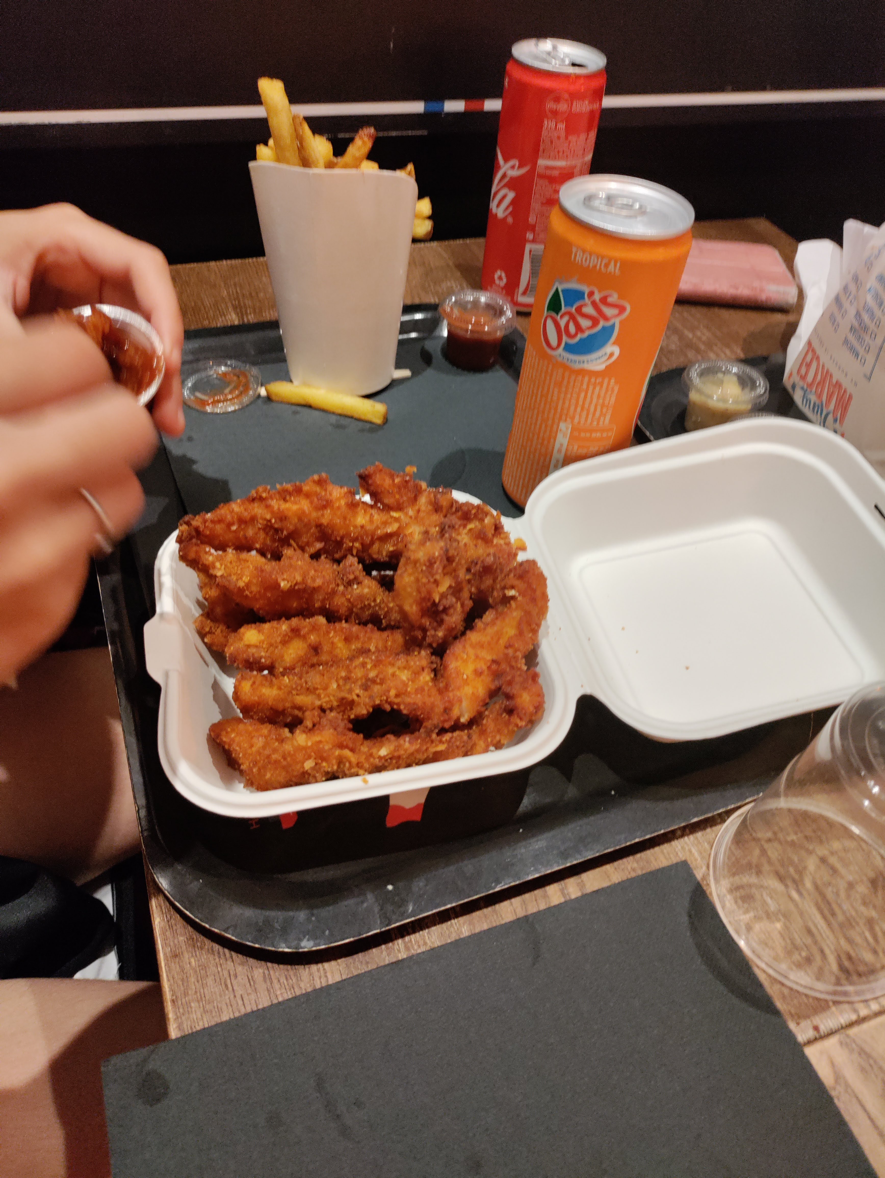 Rapport qualité prix très mauvais. Pas de vrai ketchups, pas de vrai fromage, poulet degueu et bœuf premier prix. Les frites sont trop cuites et trop grasses.