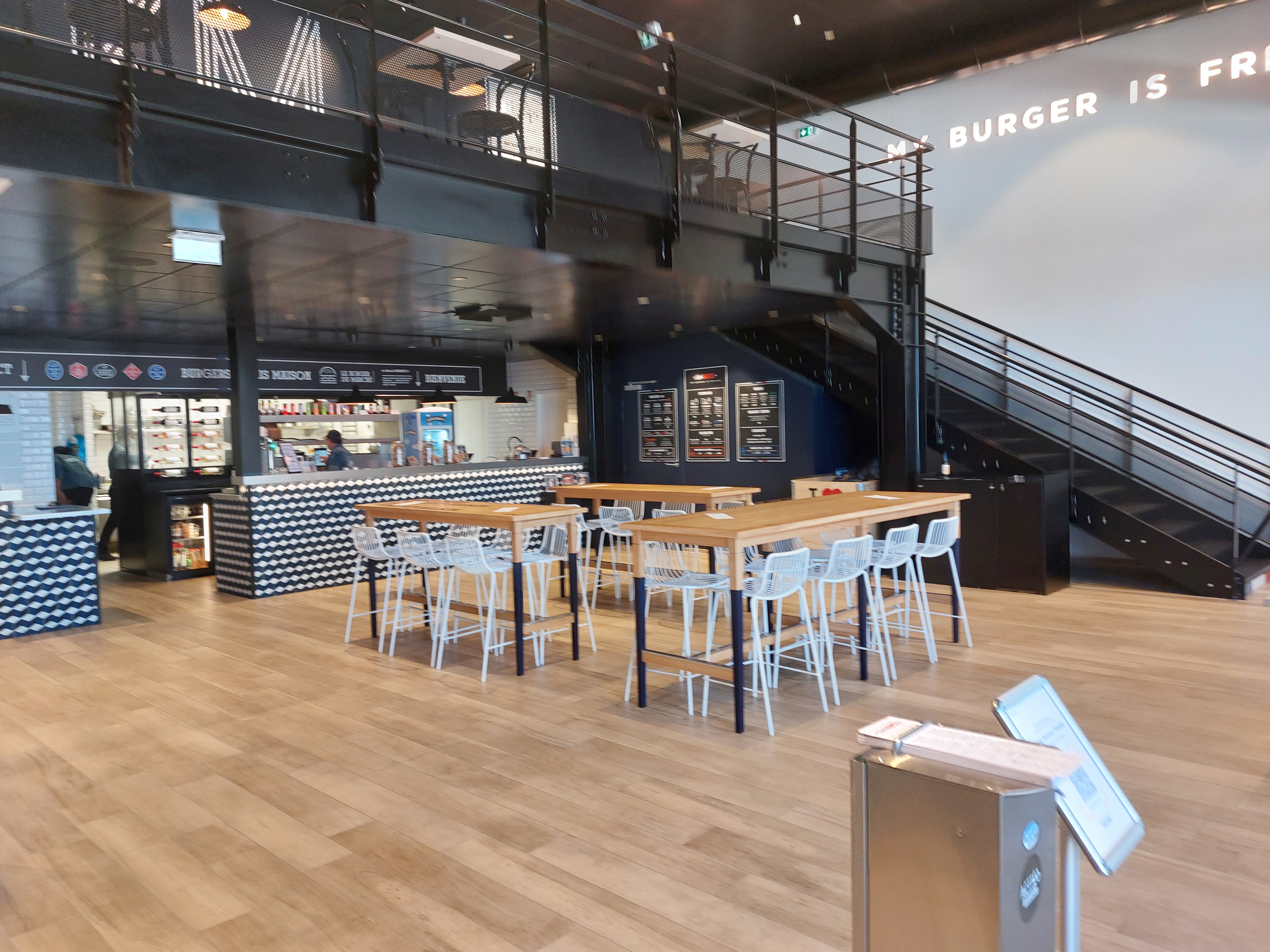 Un concept super... Le prix semble un peu élevé (10eur pour un enfant et 14 pour un adulte) mais finalement, un personnel ultra acceuillant et bienveillant, nous n'avons mangé que la moitié de nos repas ! Le menu enfant est composé d'une boisson, d'une portion de frite extra grosse... Et d'un burger avec un steak juste plus petit. Le pain et les éléments restants sont les mêmes ! Super pour un enfant !!! Les nuggets sont magique aussi ! Nous avons demandé un dogybag, accepté avec sourire ! Un concept super et innatendu dans une zone comme celle ci. Nous reviendrons !!!