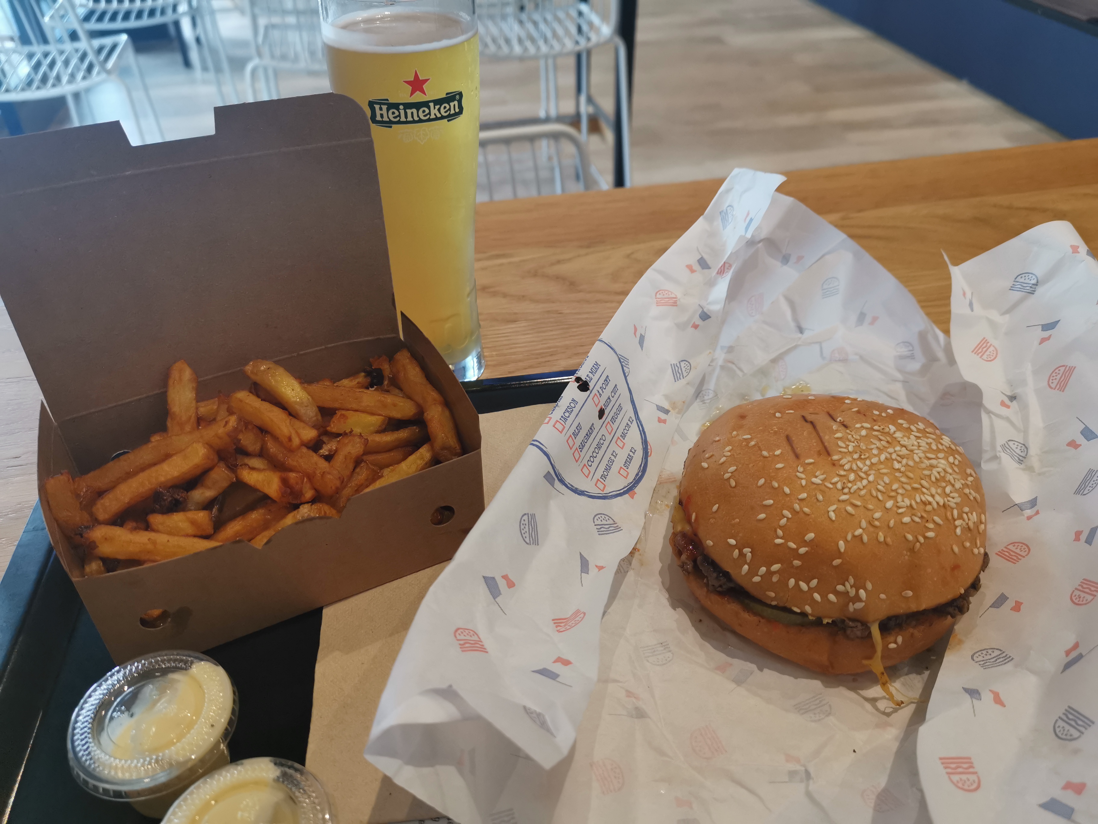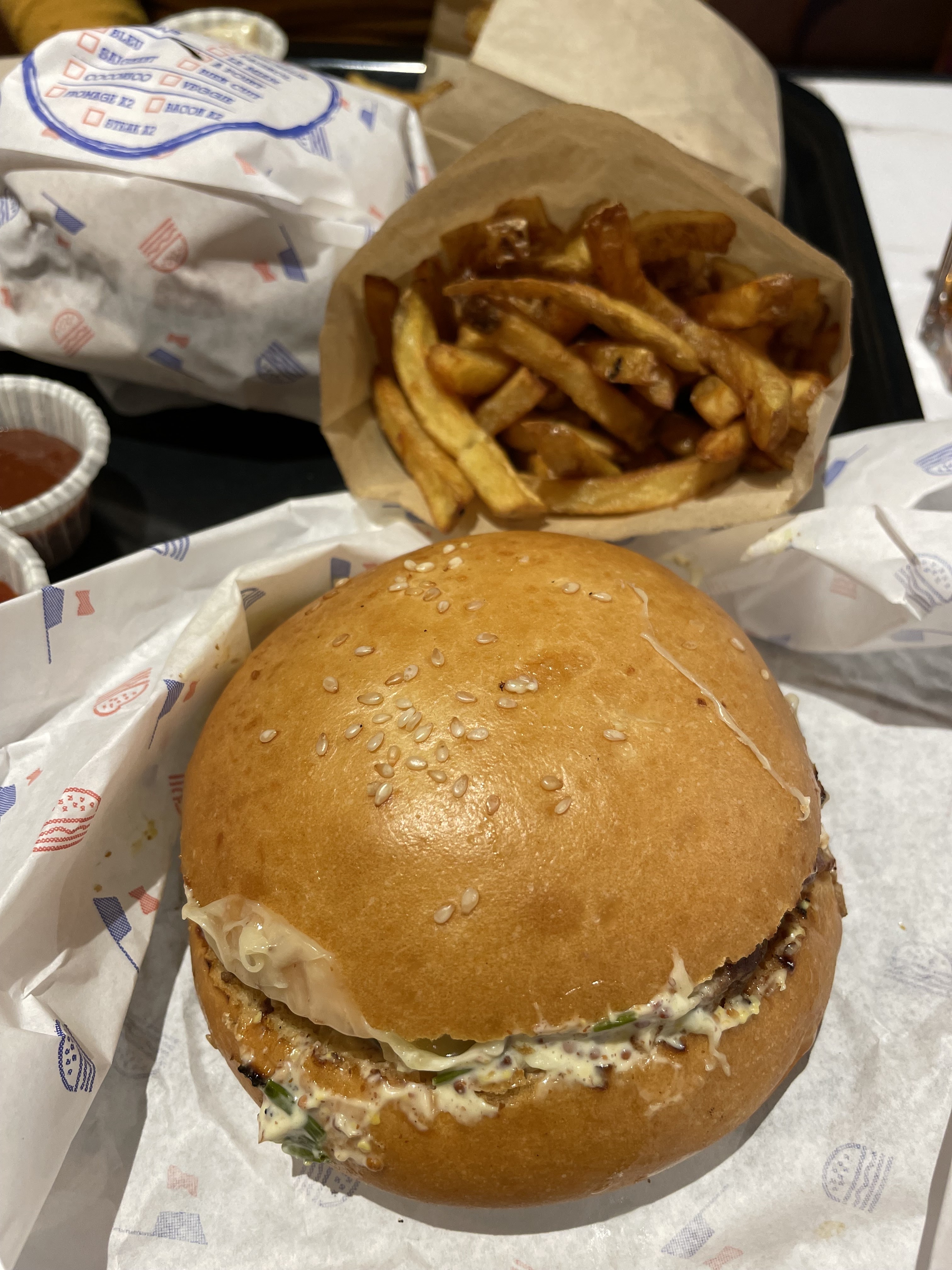 Burger - 4/10 Frites - 9/10 Sauces - 3/10 (le ketchup a + un goût de siracha que de ketchup)