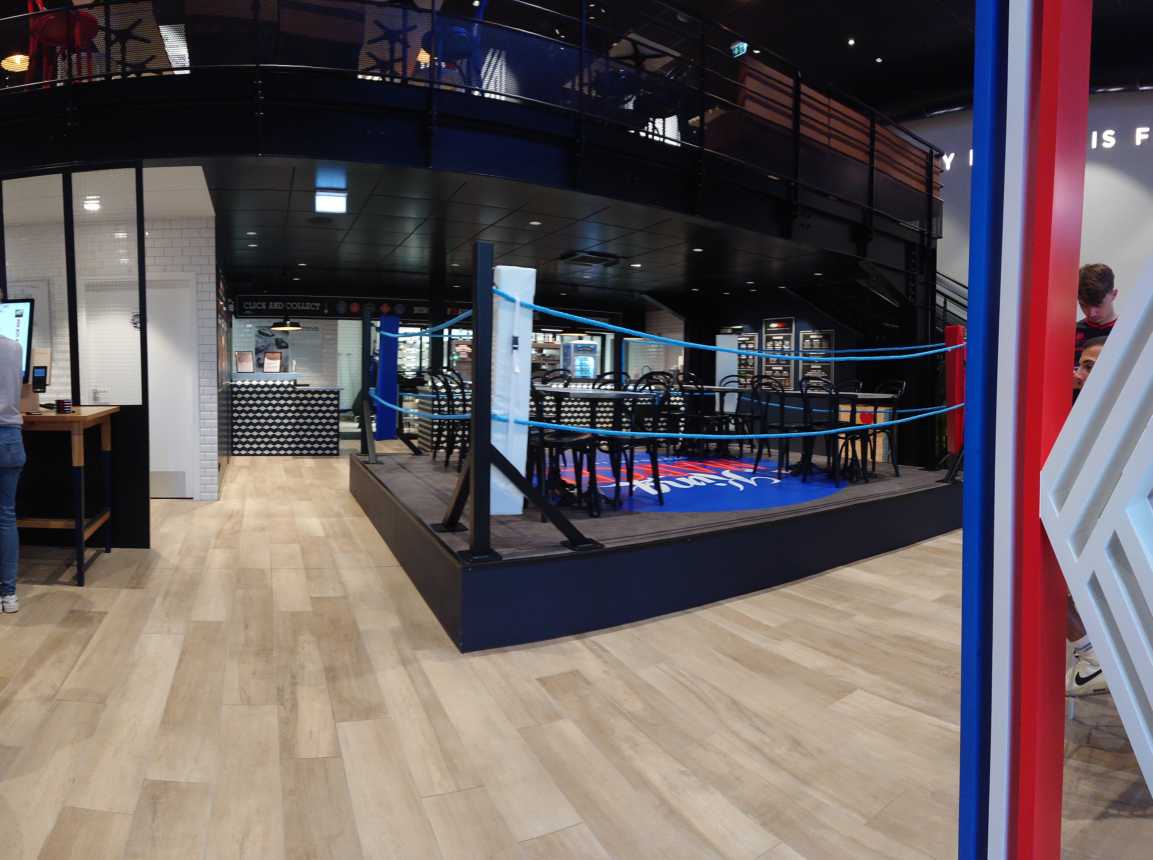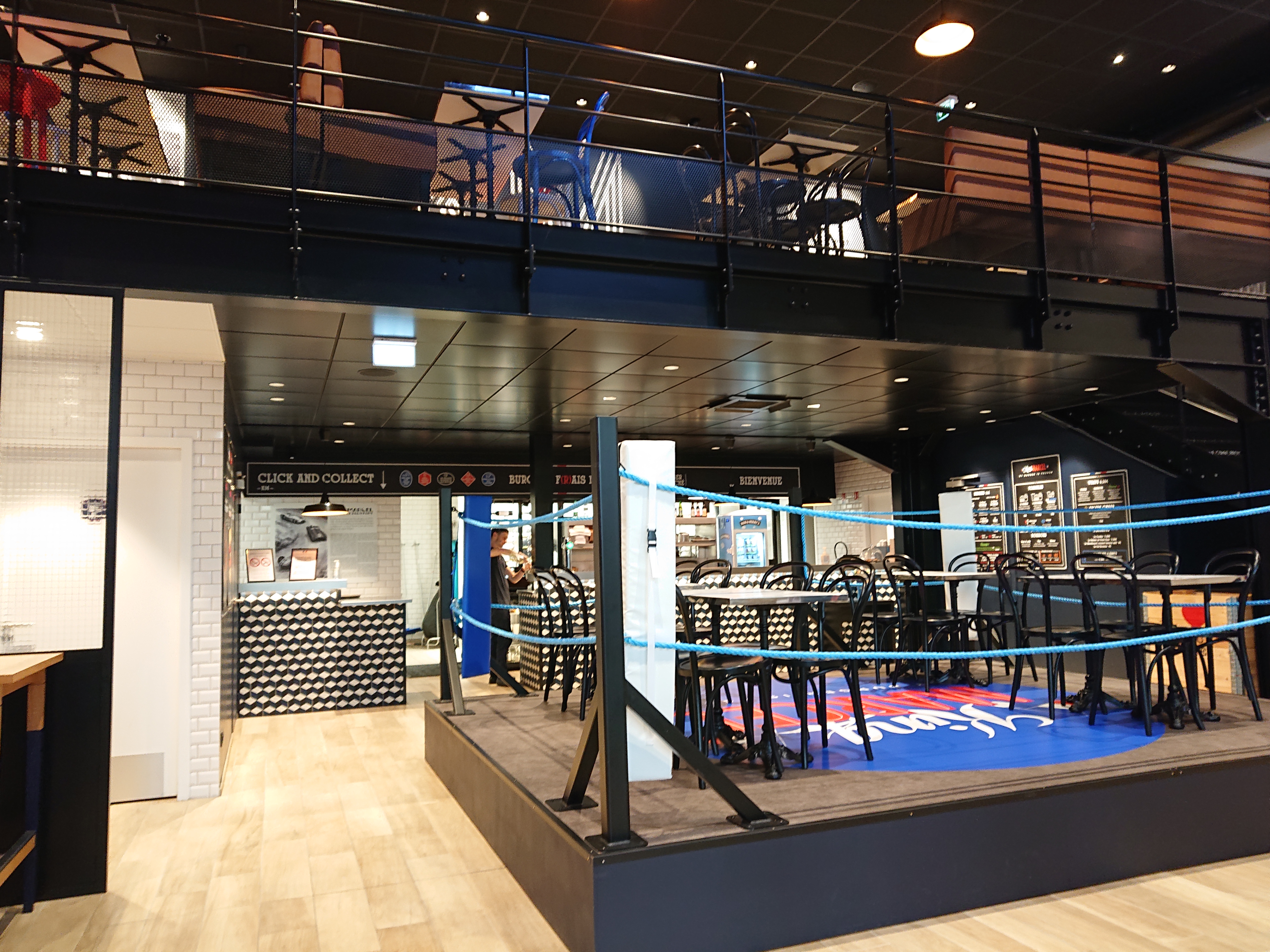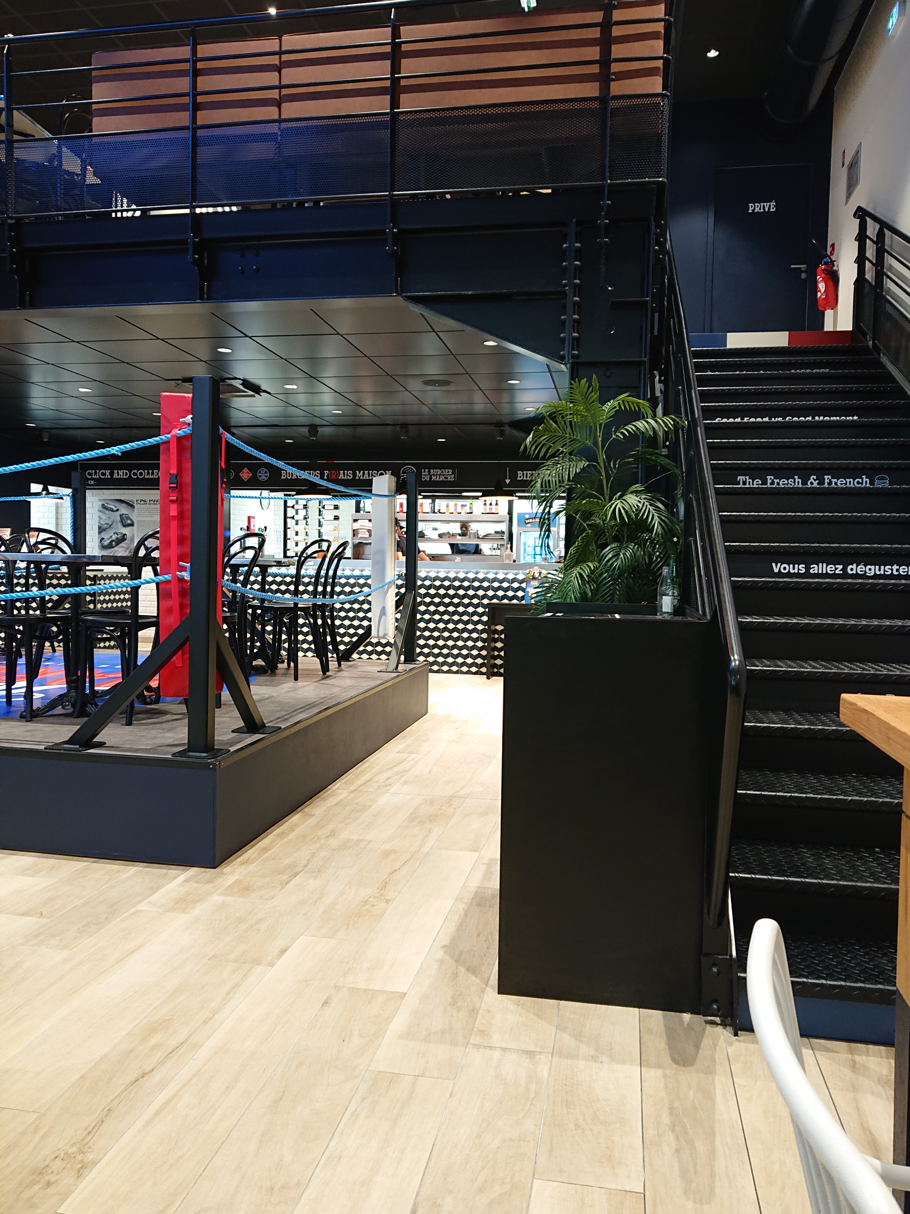 Très belle endroit. Très sympathique de manger sur un ring de boxe. Burger très bon ( le michelin). Frites maison excellente. Je conseille.