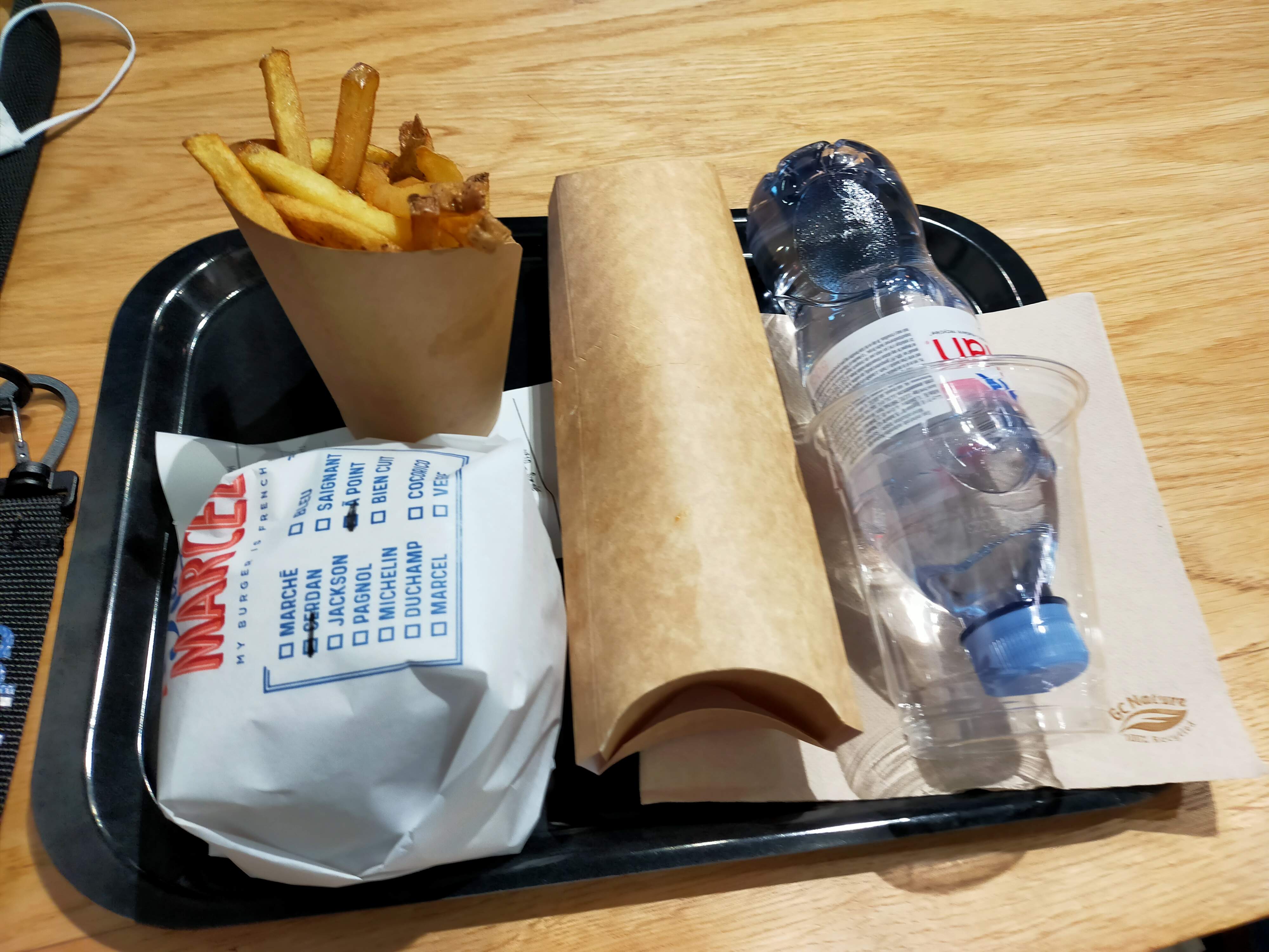 Très bien. Accueil et prise de commande impeccable par un jeune homme très courtois et qui donne envie de revenir. Dans un monde où tout le monde se fout de tout c’est important de préciser quand le personnel est souriant et attentionné. Le restaurant est neuf, c’est très beau et très propre. On était 4 avec 3 enfants, tt le monde s’est régalé. J’ai pris un double Marcel Michelin qui était simplement délicieux. Je ne peux pas dire que la cuisson demandée « bleue » était vraiment respectée mais je n’en tiendrais pas rigueur car c’était vraiment bon. C’est un détail mais le grand lavabo pour se laver les mains dans le resto et top et utile car les burgers sont juteux. Je reviendrais avec plaisir chez King Marcel en solo ou en famille.