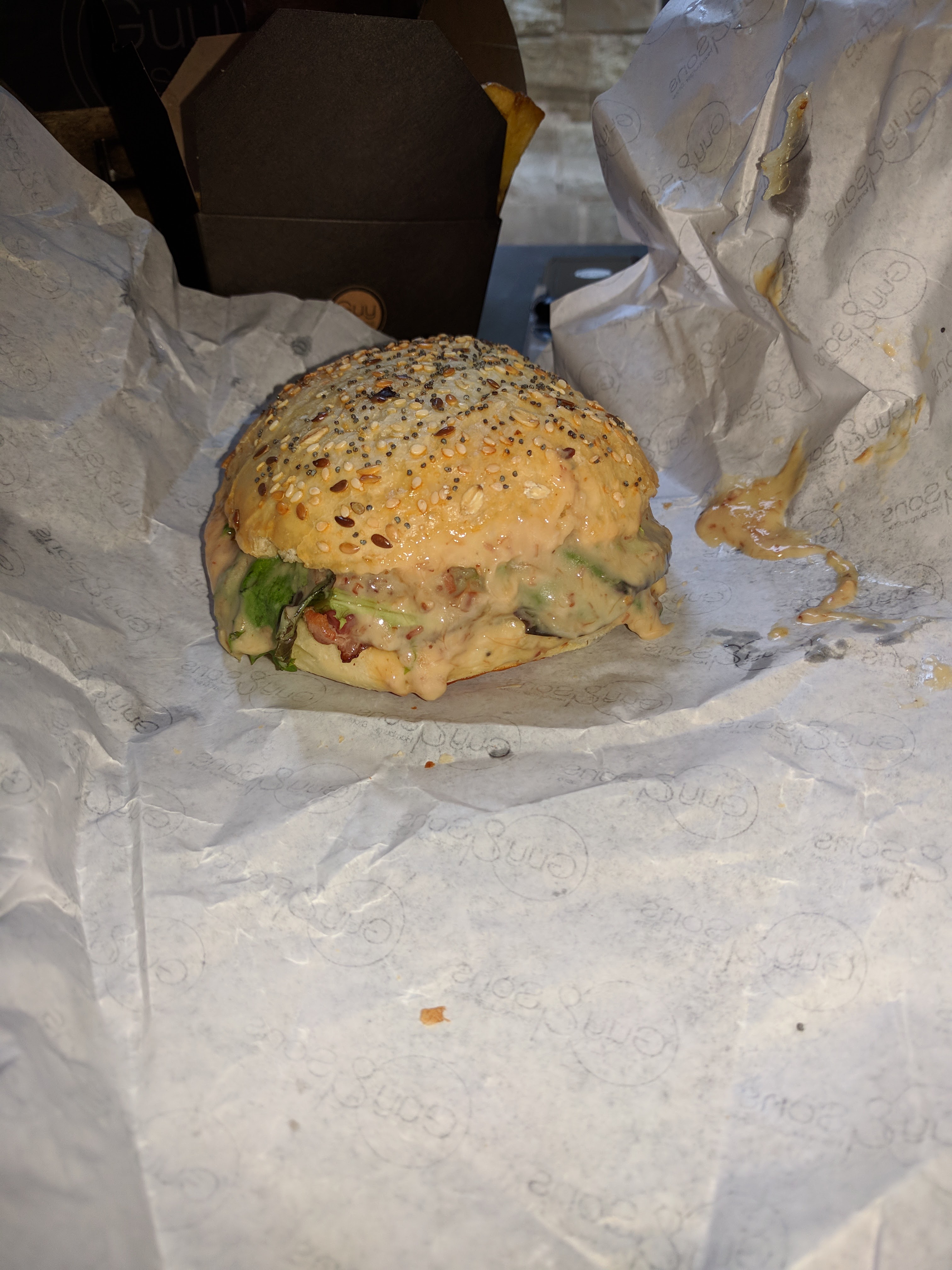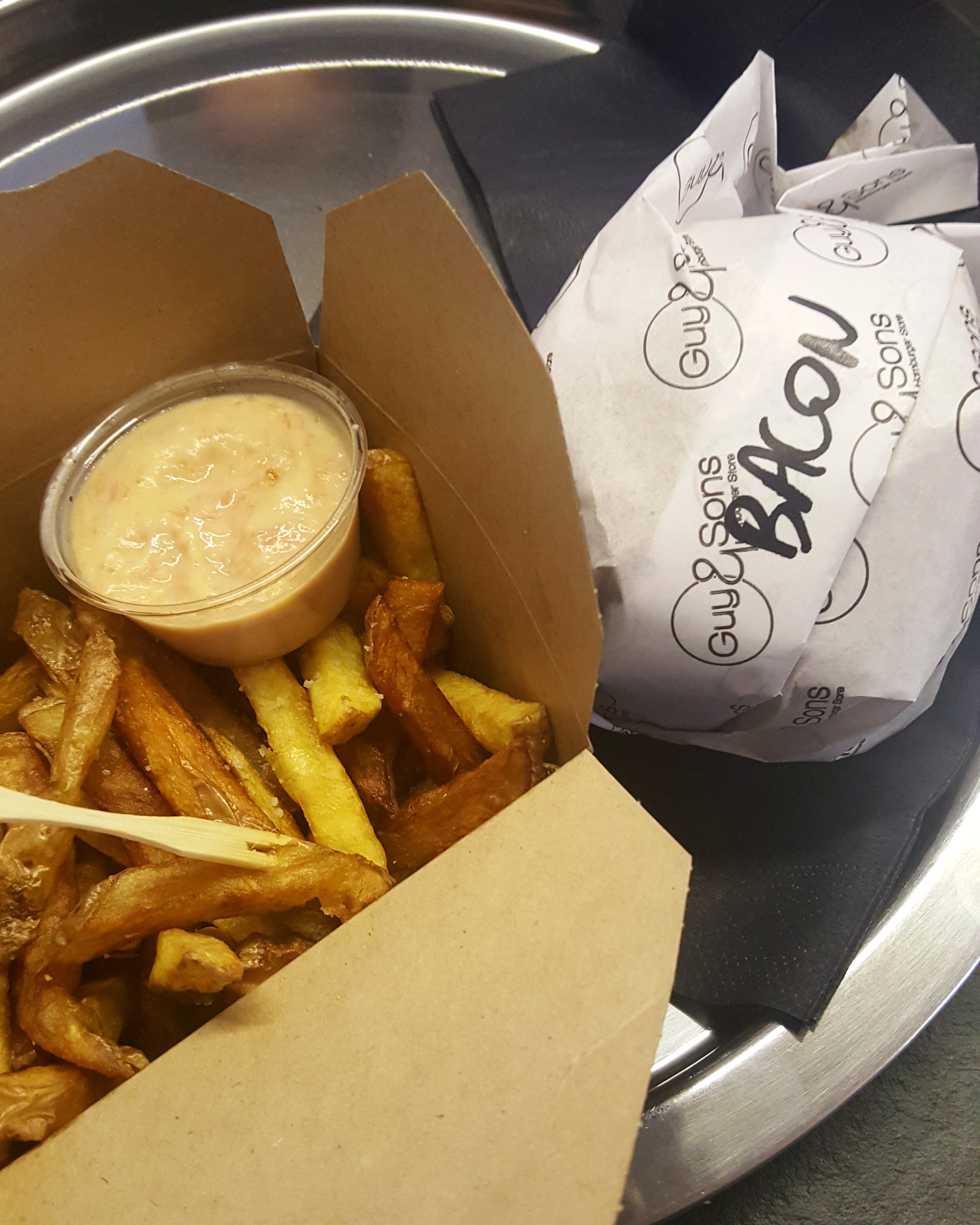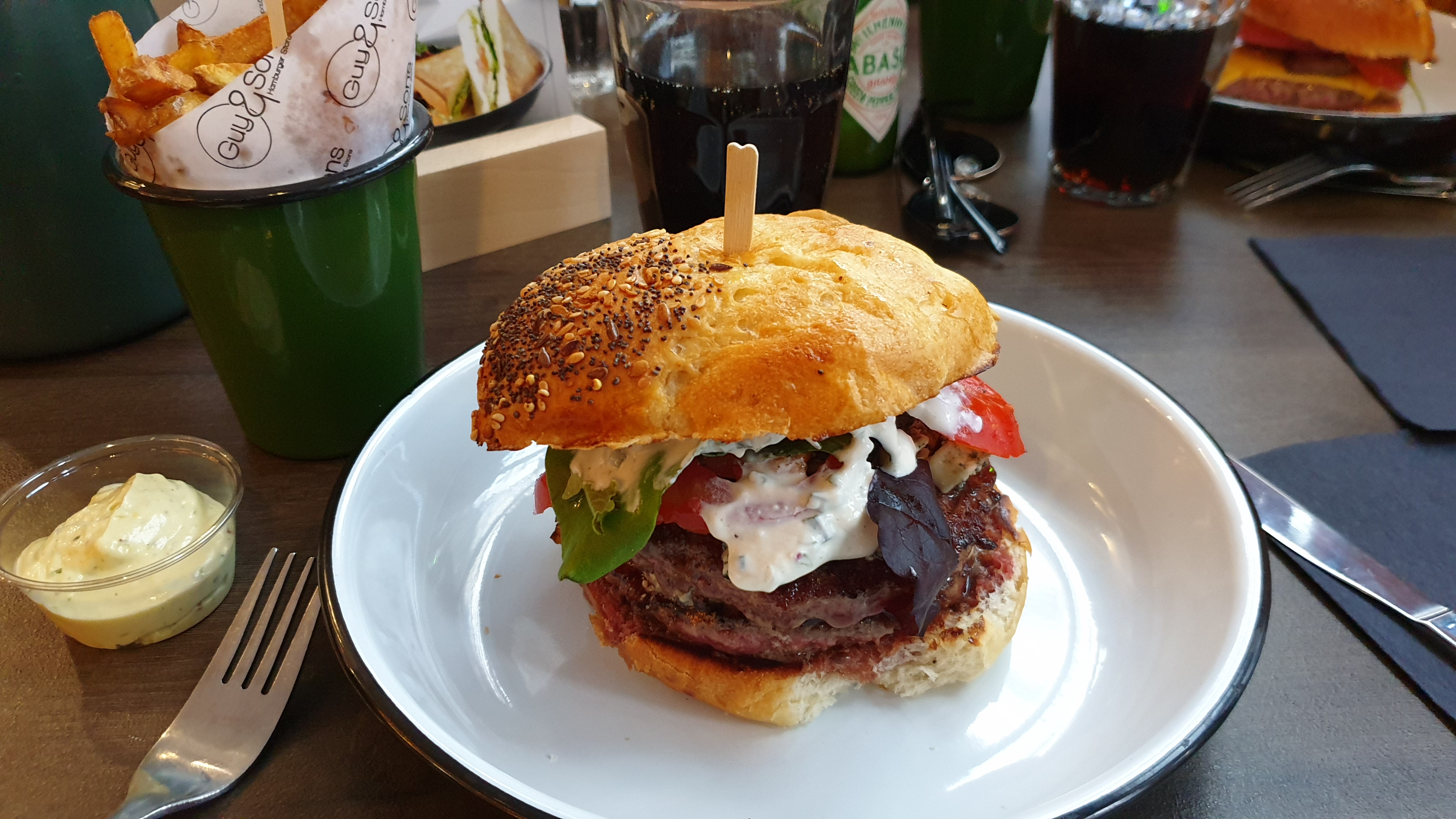Burger excellent, personnel très souriant, cela fait déjà plusieurs fois que je mange à Guy & Sons et je n'ai jamais été déçu. Les prix sont corrects, les burgers sont gros et goûteux tout comme les frites. Je recommande ! Merci à vous