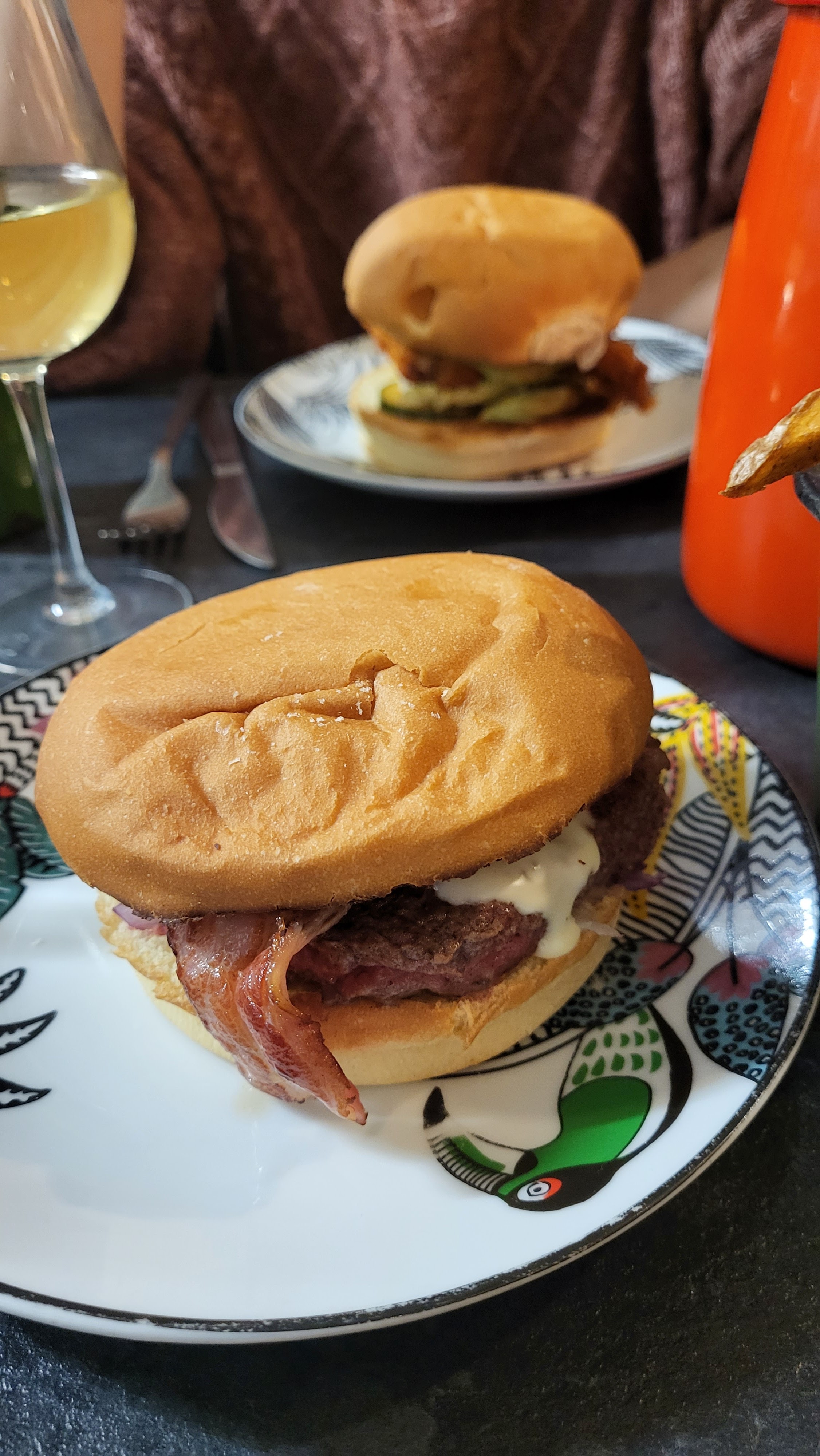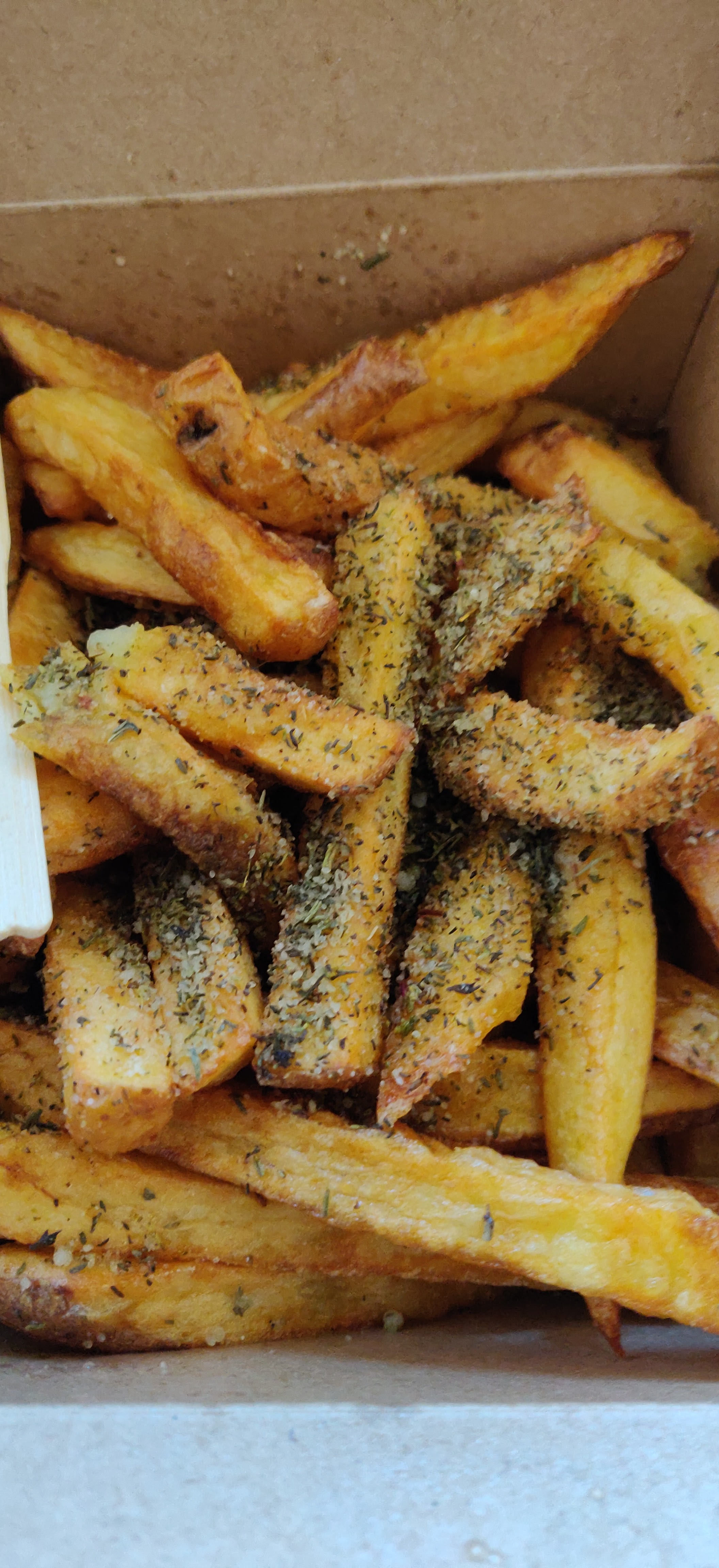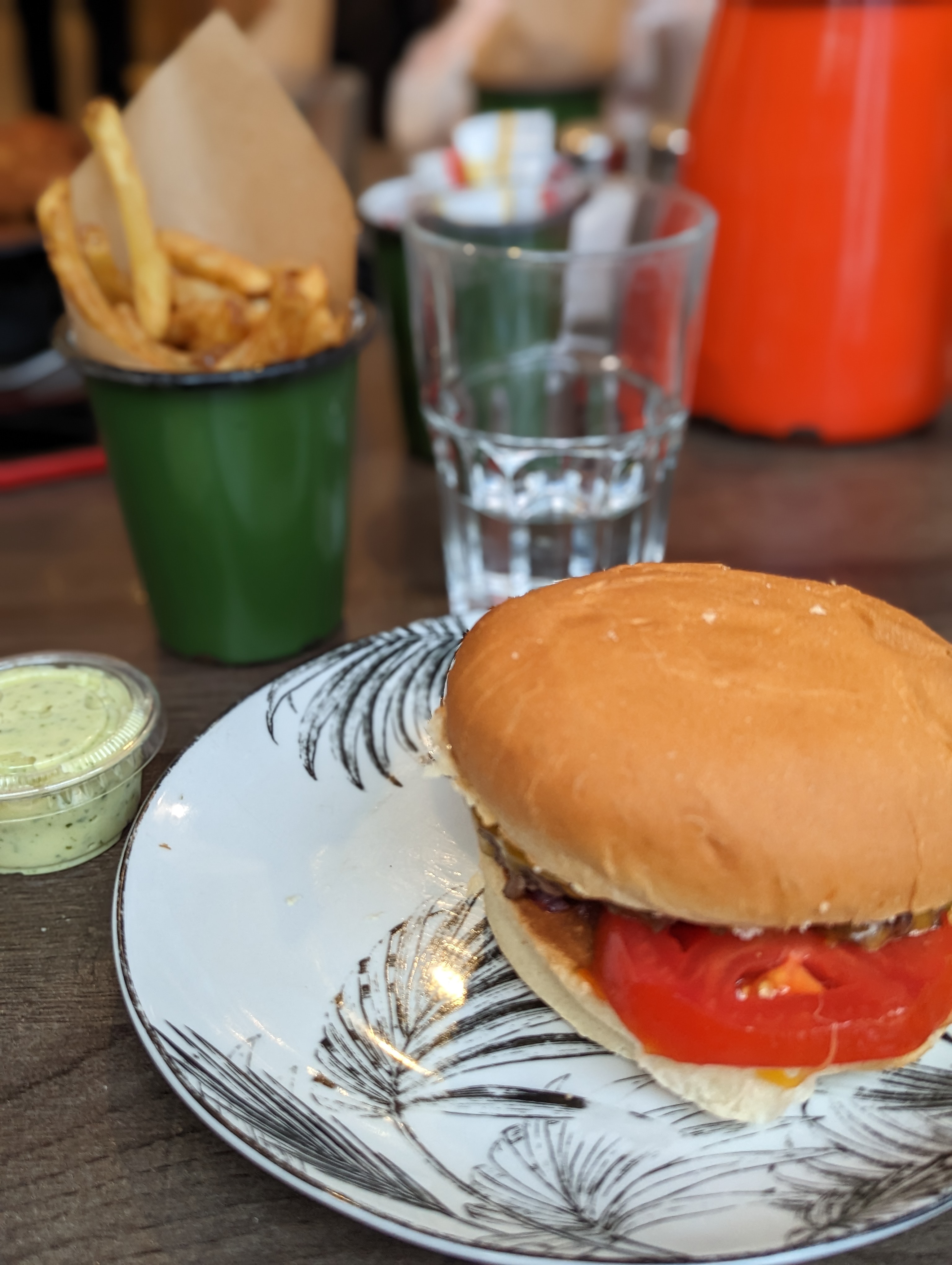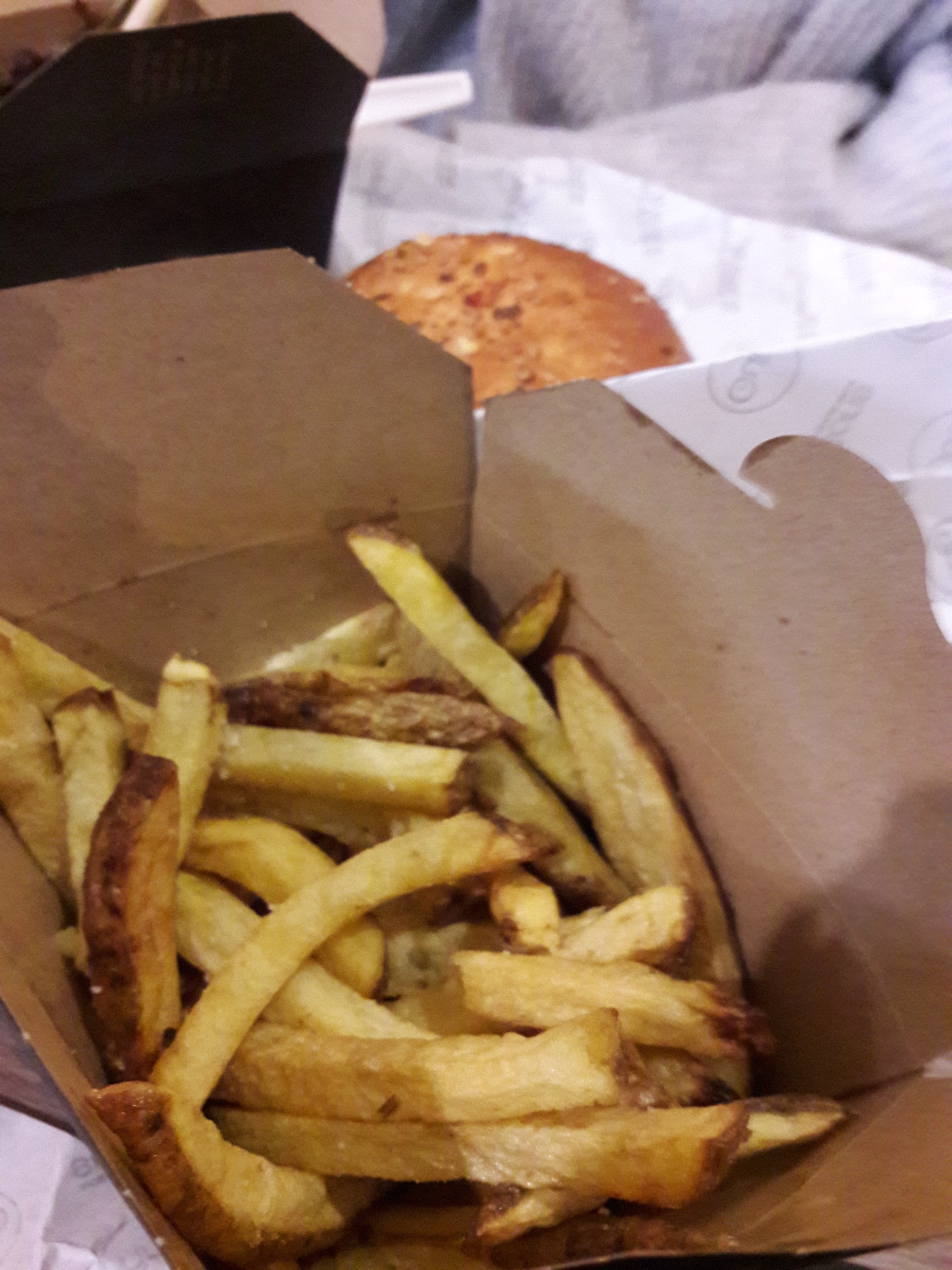 Nous avons commandé à emporter un burger bang bang et un brger veggie... Rien a dire. Les frites étaient très bonnes et il y en avait une bonne quantité. Les burger etaient super bon, le pain, le steak, et surtout la sauce ! Pour le burger veggie, c'est bien de proposer de fausses aiguillettes de poulet, et pas juste un steak de soja. Rien a dire, c'était parfait