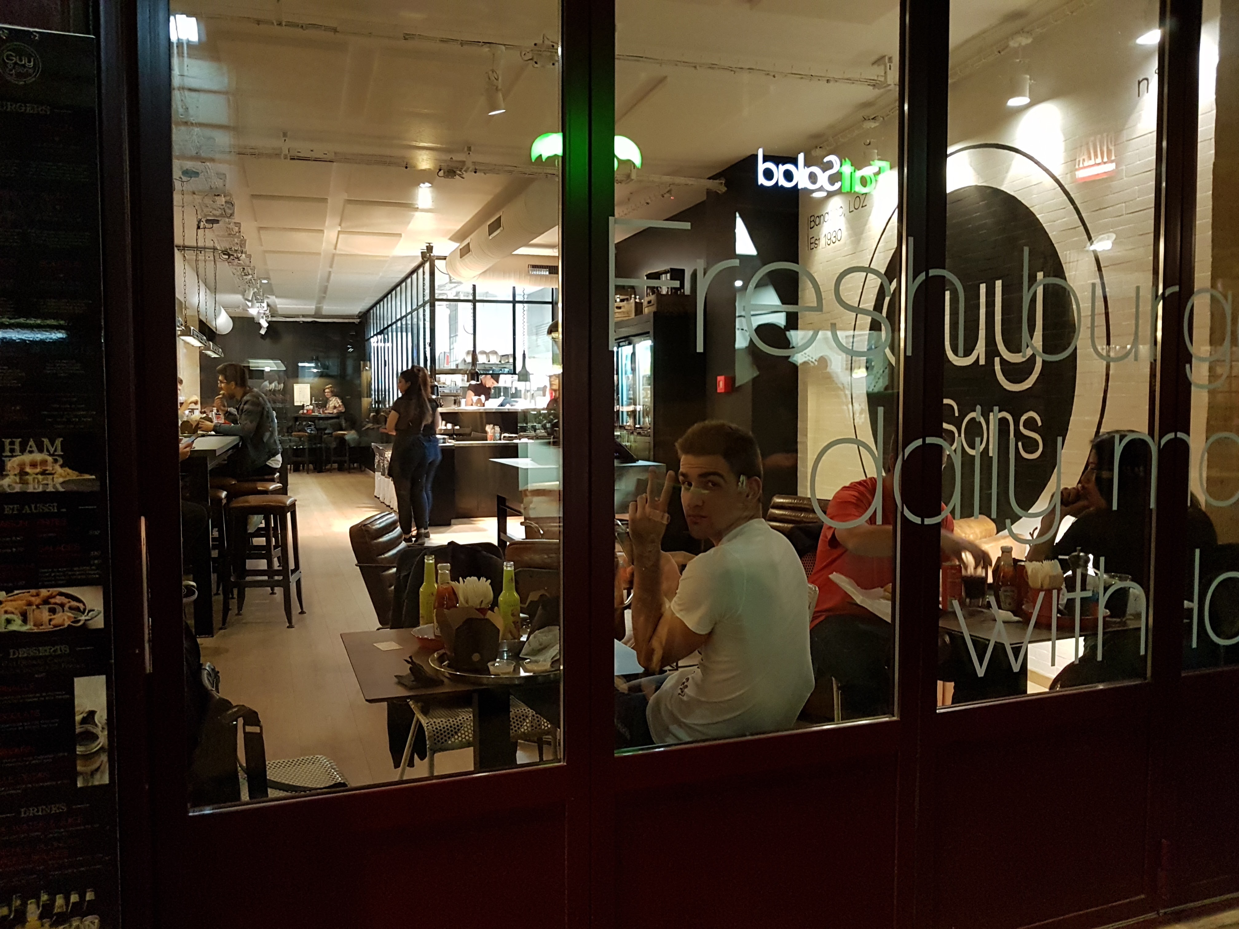 Le burger était plutôt bon (pas exceptionnel par rapport à la concurrence), dommage de ne pas demander la cuisson de la viande, et d’afficher « fresh » alors que l’on sert de la salade sachet et des tomates à cette époque. En revanche personnel sympathique et ambiance agréable.