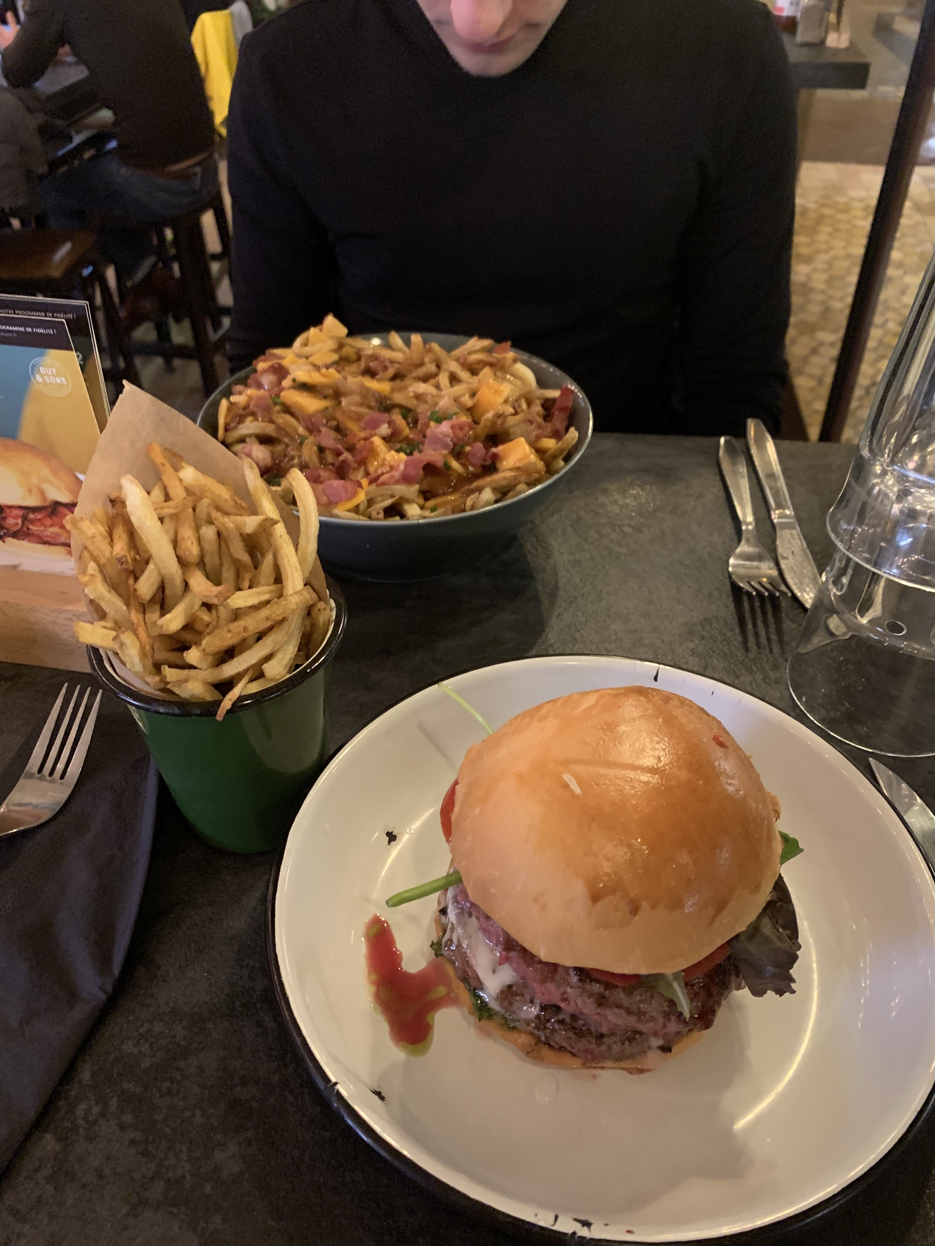 J’ai découvert ce restaurant par hasard sur Google. J’y suis allé avec mon fils et une de mes filles. L’accueil est très bien. Les plats sont excellents. Le cadre est stylé. Je suis au régime depuis 4 mois, je m’accorde une pause tout les 15 jours. J’avais envie d’un bon Burger artisanal. J’ai été comblé. Si je devais juste soulever un point d’amélioration c’est le manque de choix en dessert. Mais ça n’a pas gâché mon plaisir. Une dernière chose très importante, le café est bon, il y a beaucoup trop de restaurants aujourd’hui qui font des économies sur la qualité du café. Bravo Guy&Sons. Je reviendrai et je conseille