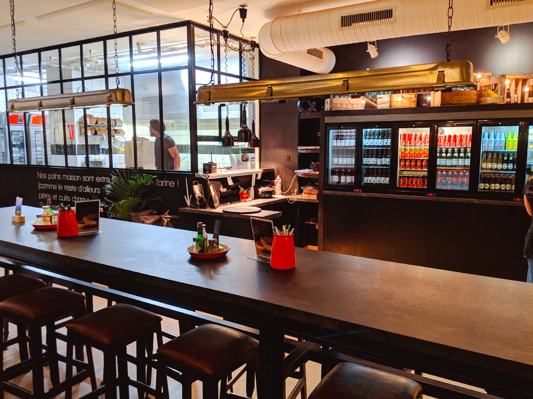 Bonjour Jean François, je vous remercie d'avoir pris le temps de donner votre avis sur notre établissement. En effet, nous avons accordé un soin particulier à la décoration, merci de l'avoir remarqué ! Pour information, vous trouverez des tables "classiques" au fond du restaurant, juste à côté de la boulangerie. Vous pourrez notamment y voir nos équipiers préparer le pain tous les jours juste devant vous. Concernant votre retour sur notre cuisine, je m'occupe de remonter vos remarques au gérant du restaurant afin de vérifier que nos recettes sont bien appliquées correctement. En espérant vous revoir malgré tout chez nous, je vous souhaite une excellente journée.