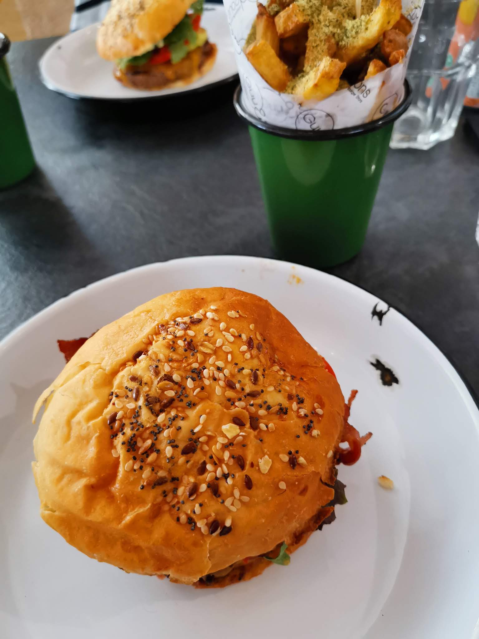 Lieu sympathique, personnel très agréable mais le repas manquait de chaleur, de saveur ... Burger à peine chauds, frites molles et tièdes, vinaigrette qui n'était qu'un trait d'huile... C'est dommage, le global était prometteur.