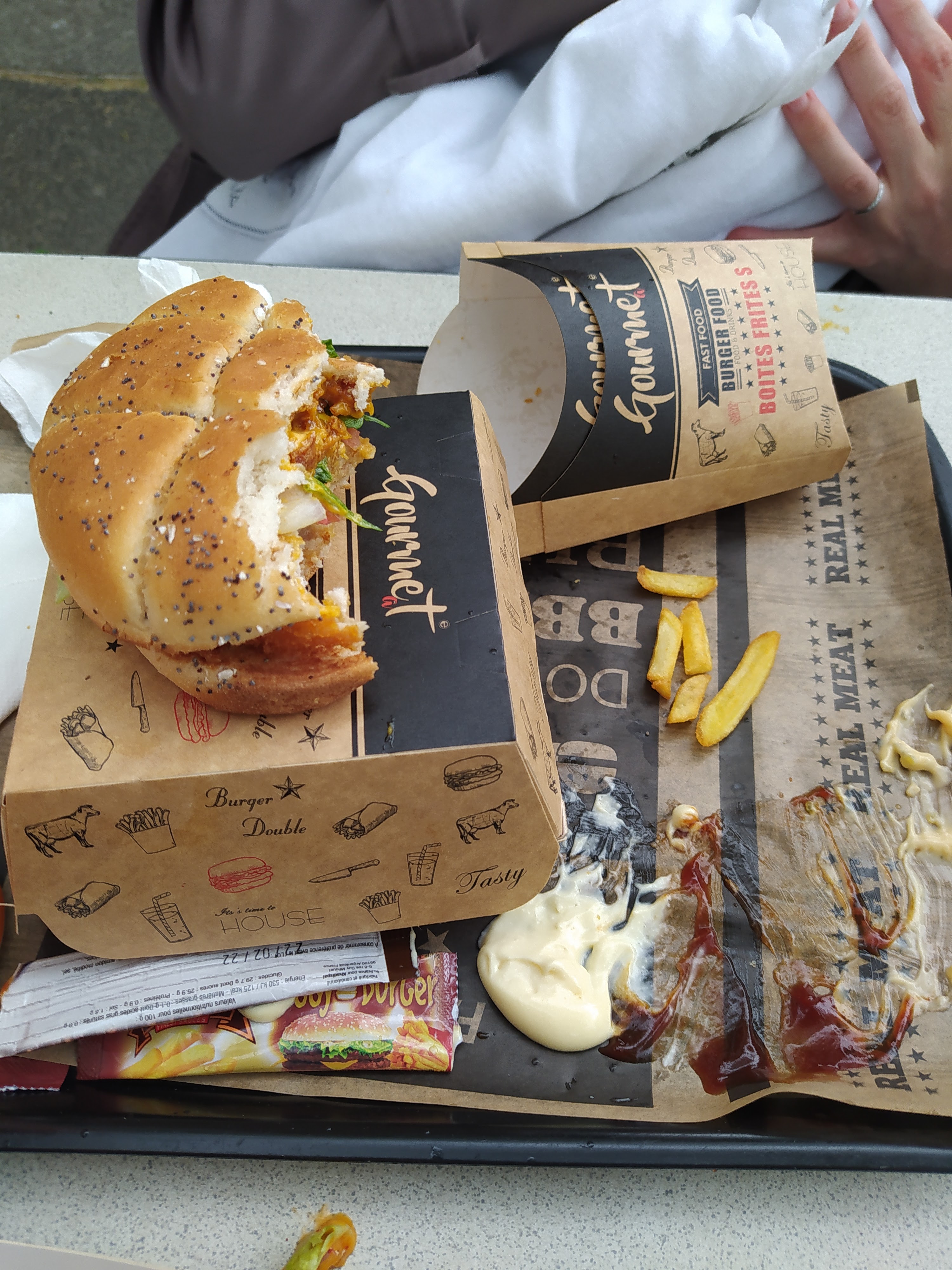 Ils ont changé des recettes (je crois) je venais rarement mais là je trouve ca vraiment bon et pas très cher contrairement à mcdo et c'est meilleure. Svp mettez du savon pour se laver les mains y'en a jamais quand j'y vais