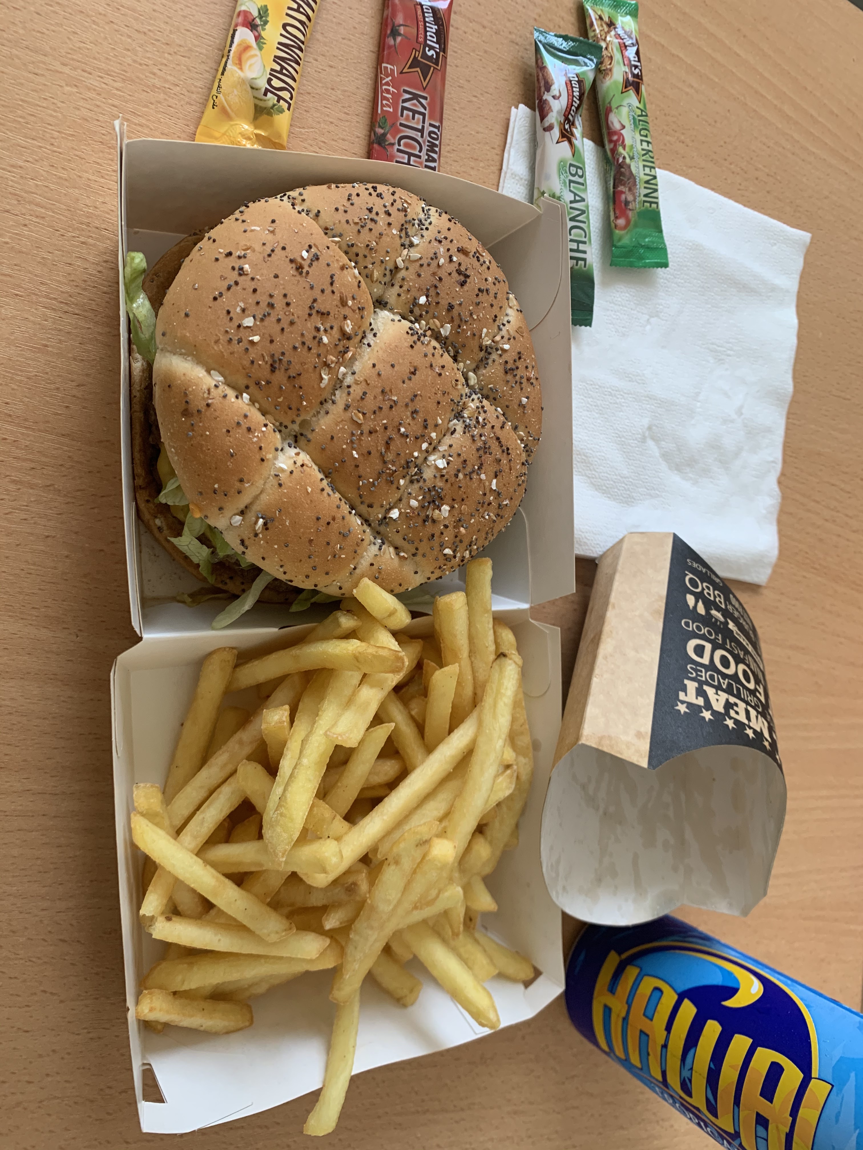 Je trouve que c'est bon mais c'est un peu cher 2€ la boisson mais en général ça va sans plus Pourquoi les steaks hachés sont si fin ? La photo donne plus en envie qu'en vrai