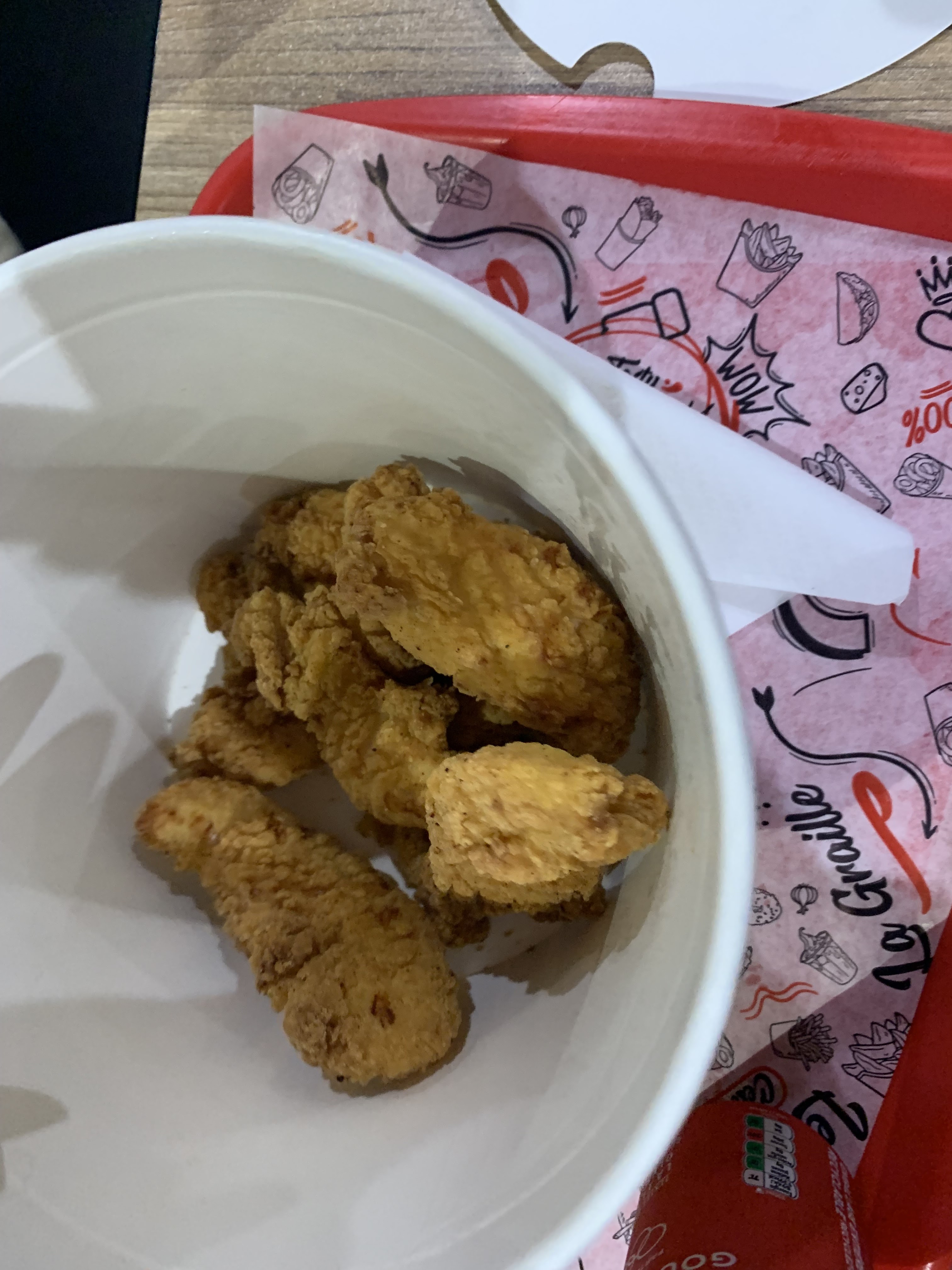 Bon et bien, je suis passé acheter du poulet frit en bucket, je demande gentillement que le poulet soit frais car je viens rarement, et les 3 premiers sur 10 le sont, les autres date de je ne sais pas quand. Merci sincèrement... Ma femme est enceinte et est dégouté. Grand merci.