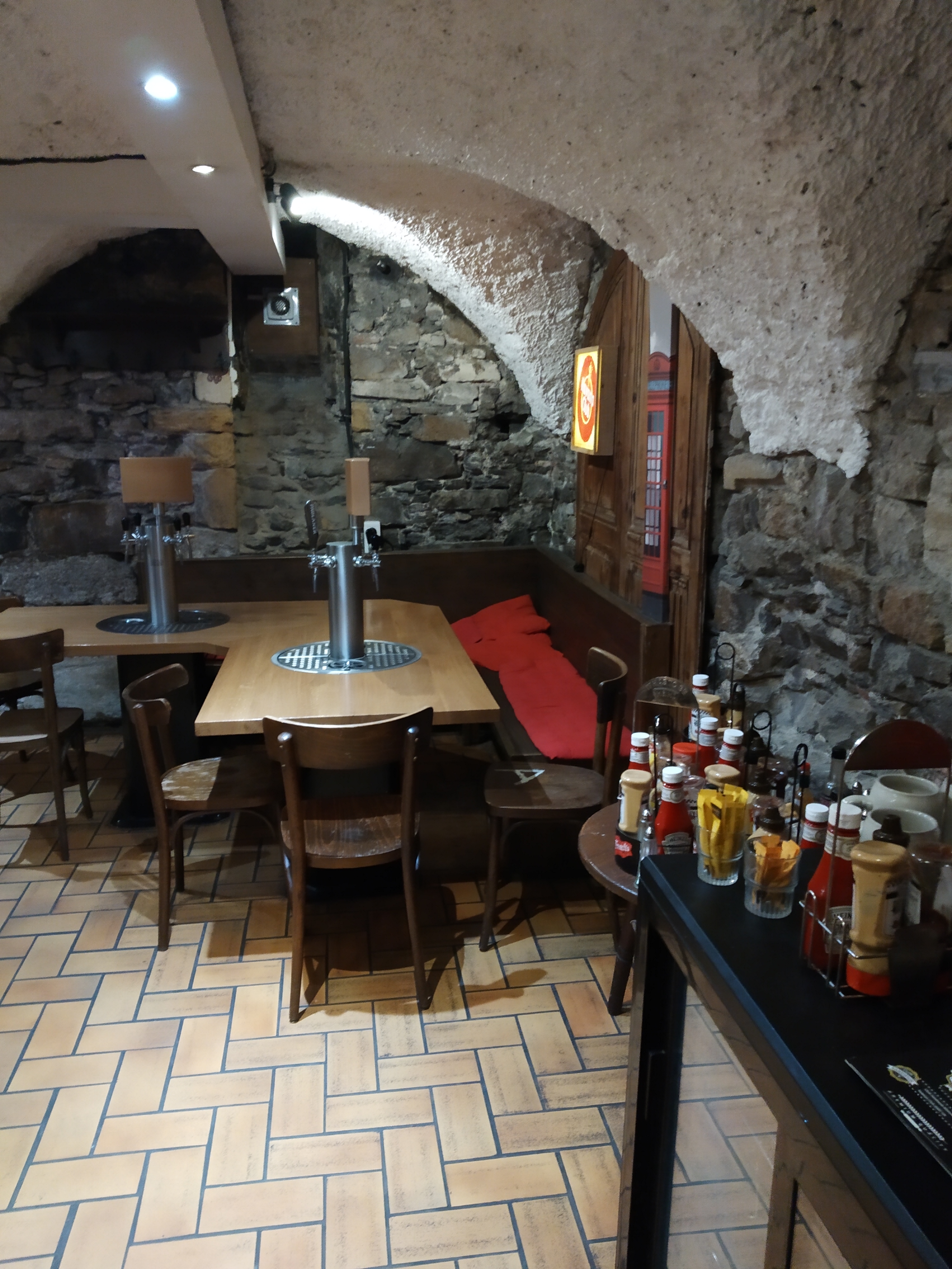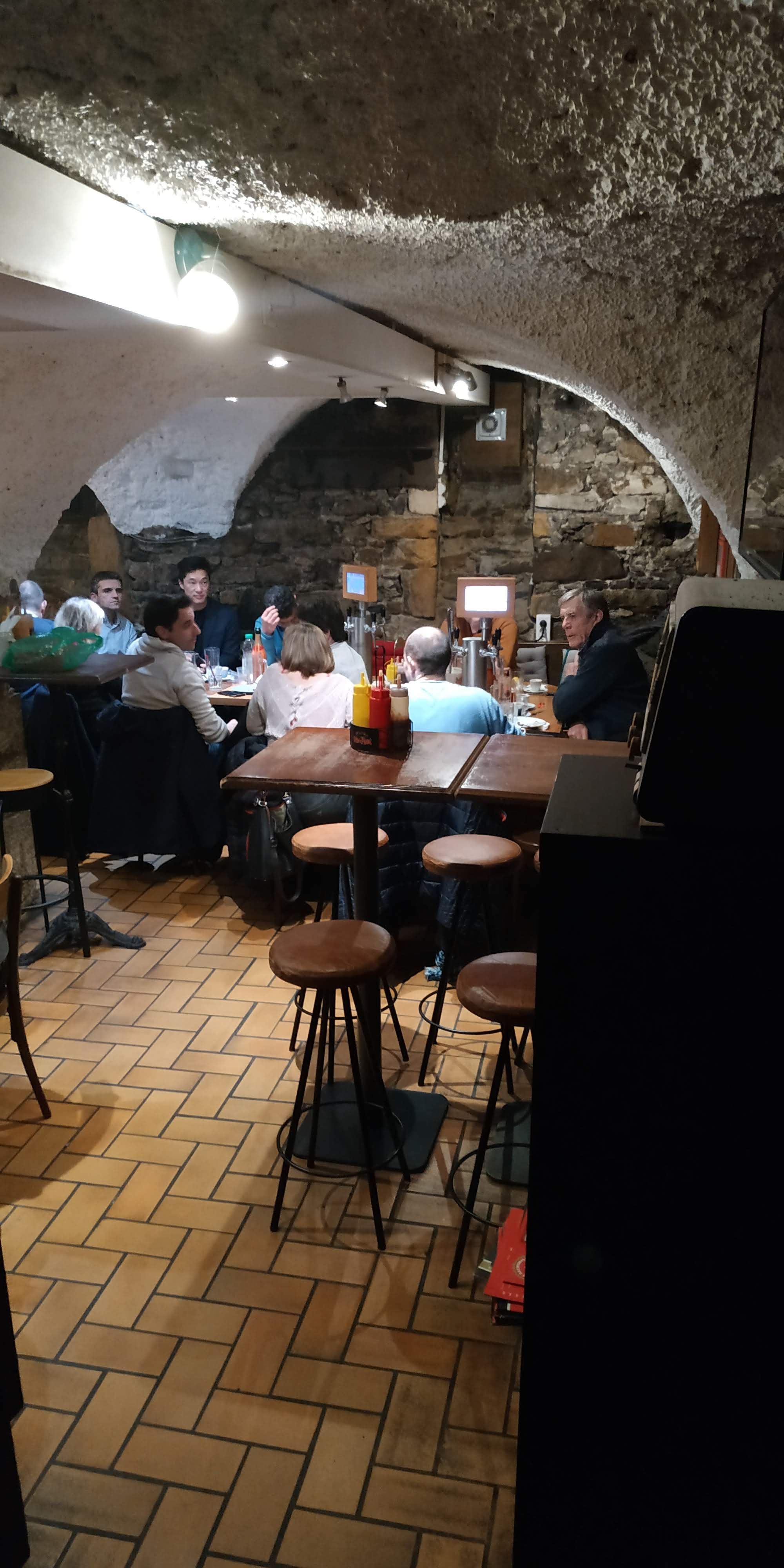 Ca ne paraît pas de mine quand on y rentre, ça fait tout petit ! Pourtant, prenez la peine de descendre les escaliers, vous arriverez dans 2 superbes petites salles en pierre. Idéal pour petits groupes ou tout simplement en couples. Le bière est bonne, l'équipe très sympa. Vous pourrez y manger des planches ou de bon burgers. Petite mention pour les frites garnies que j'ai adorées. Essayez ! Visite du 24 octobre 2021