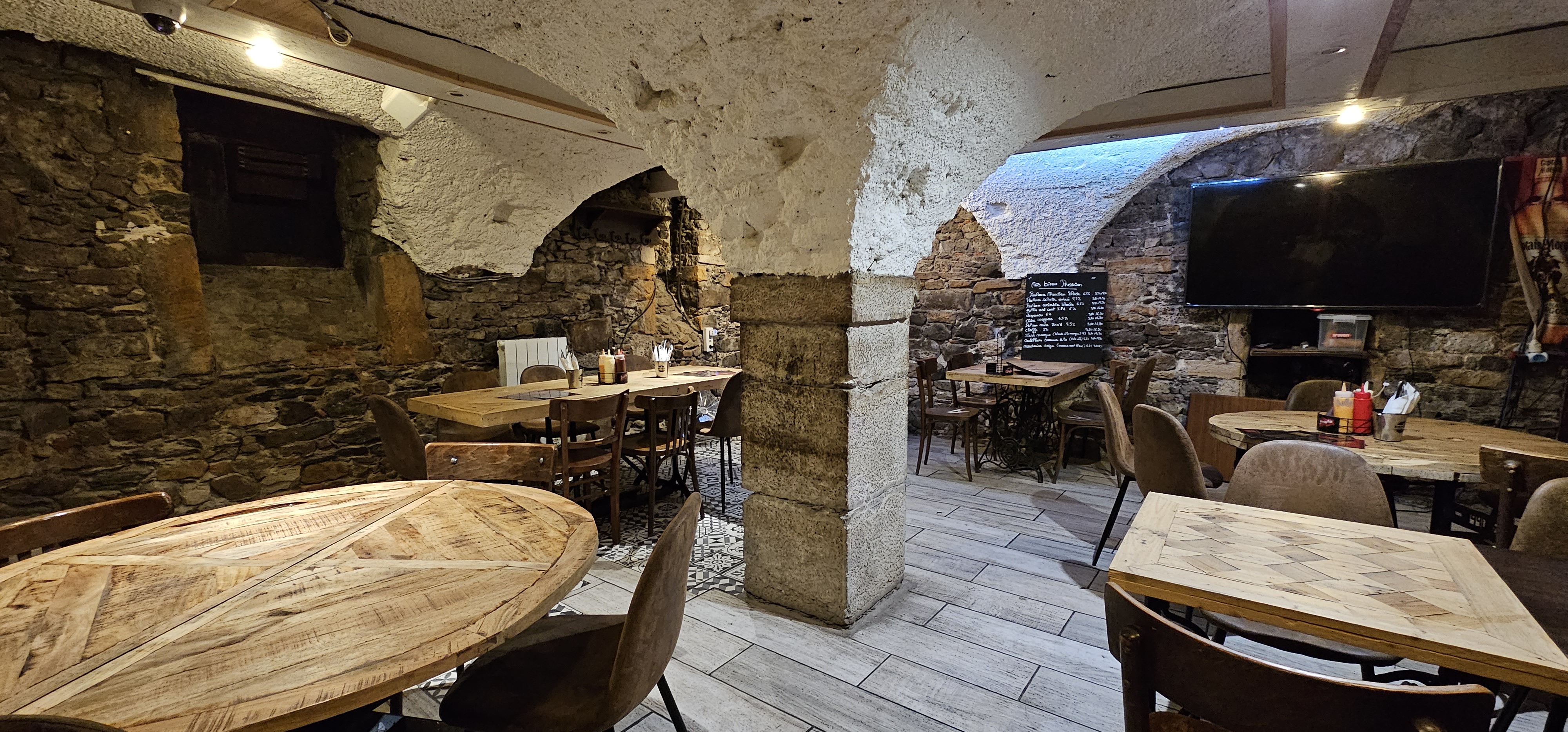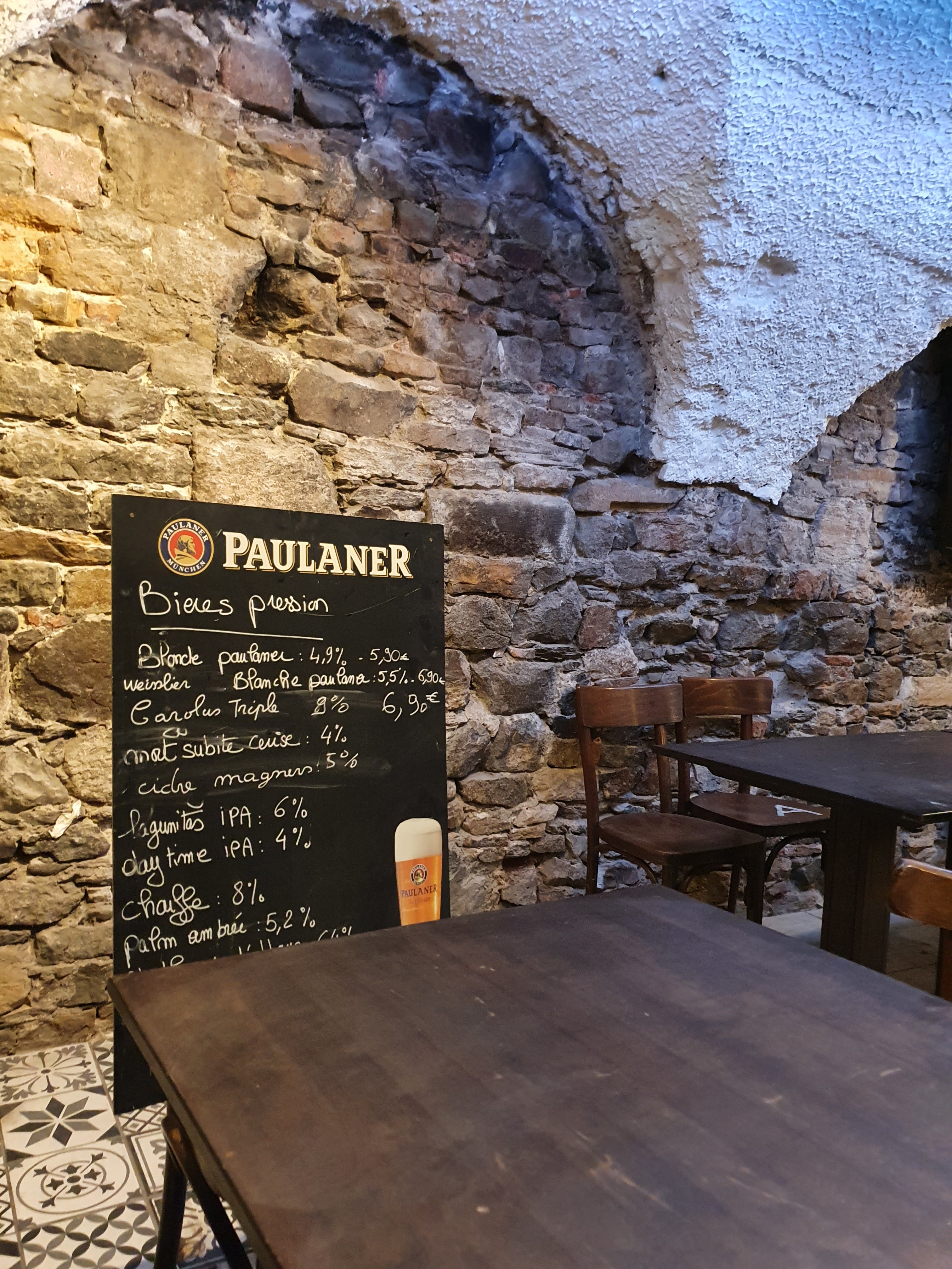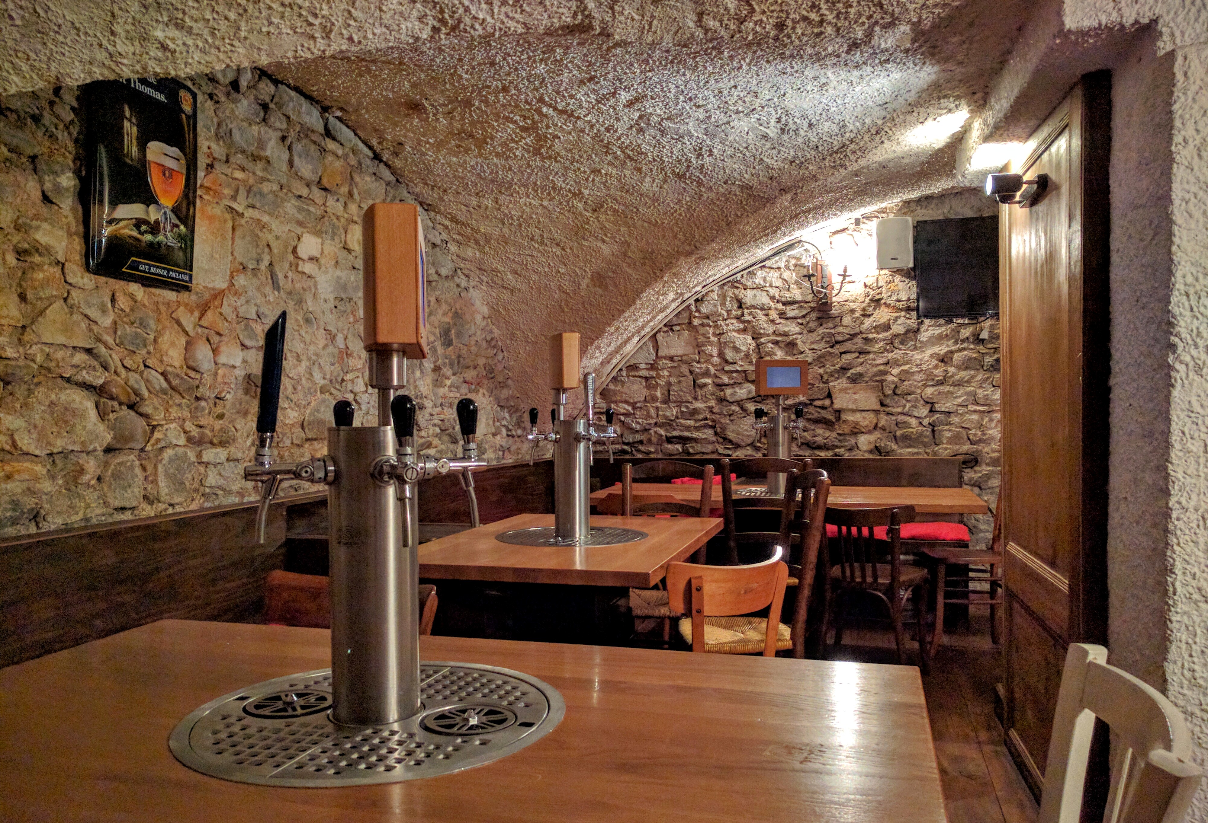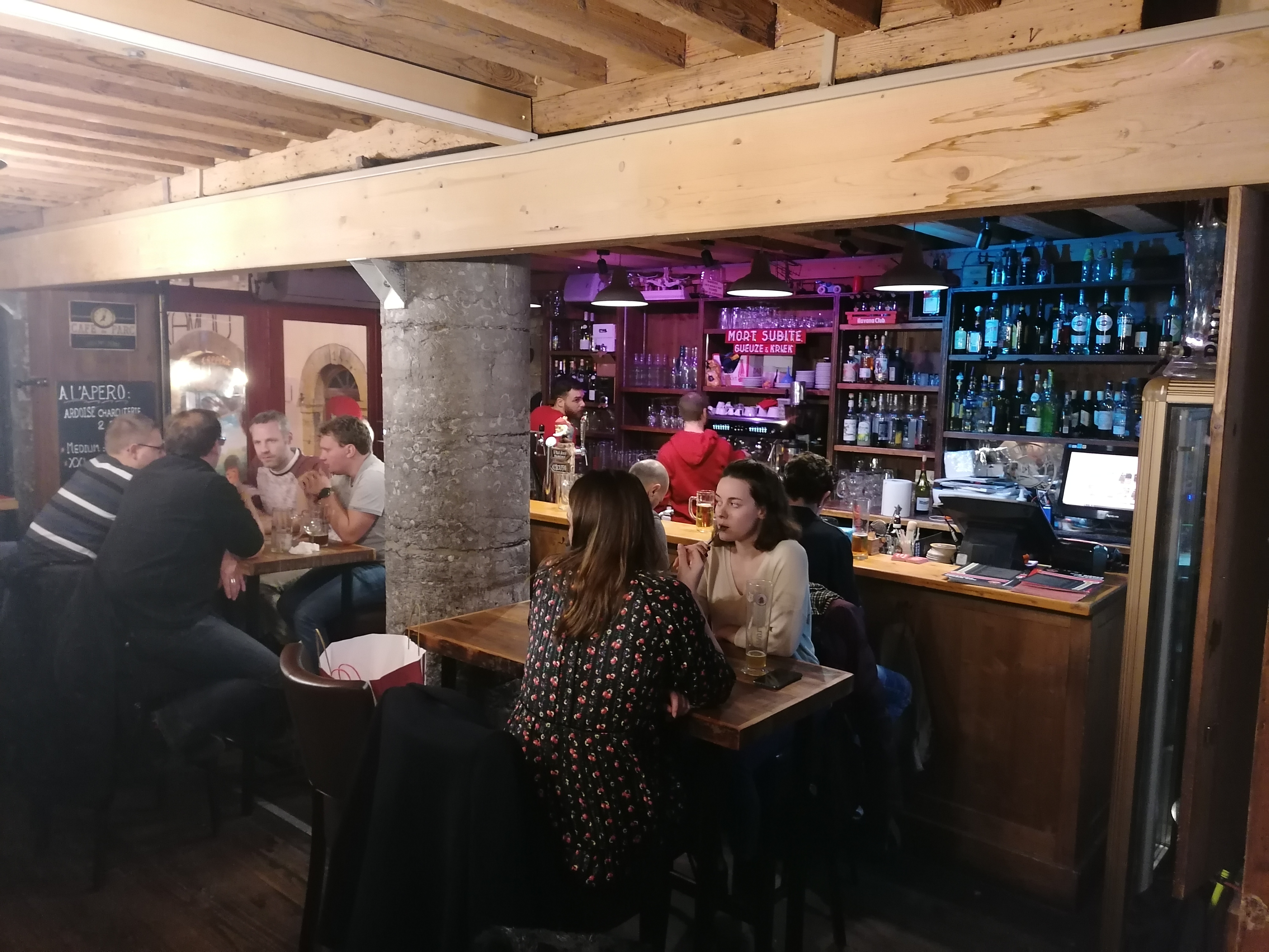 L'ambiance est cool, il y a un grand choix de bières la terrasse et la salle du rez de chaussée sont très agréables. Et leurs frites🤤. Par contre les deux salles du bas sont trop résonantes et exiguës (normal c'est des antiennes caves).