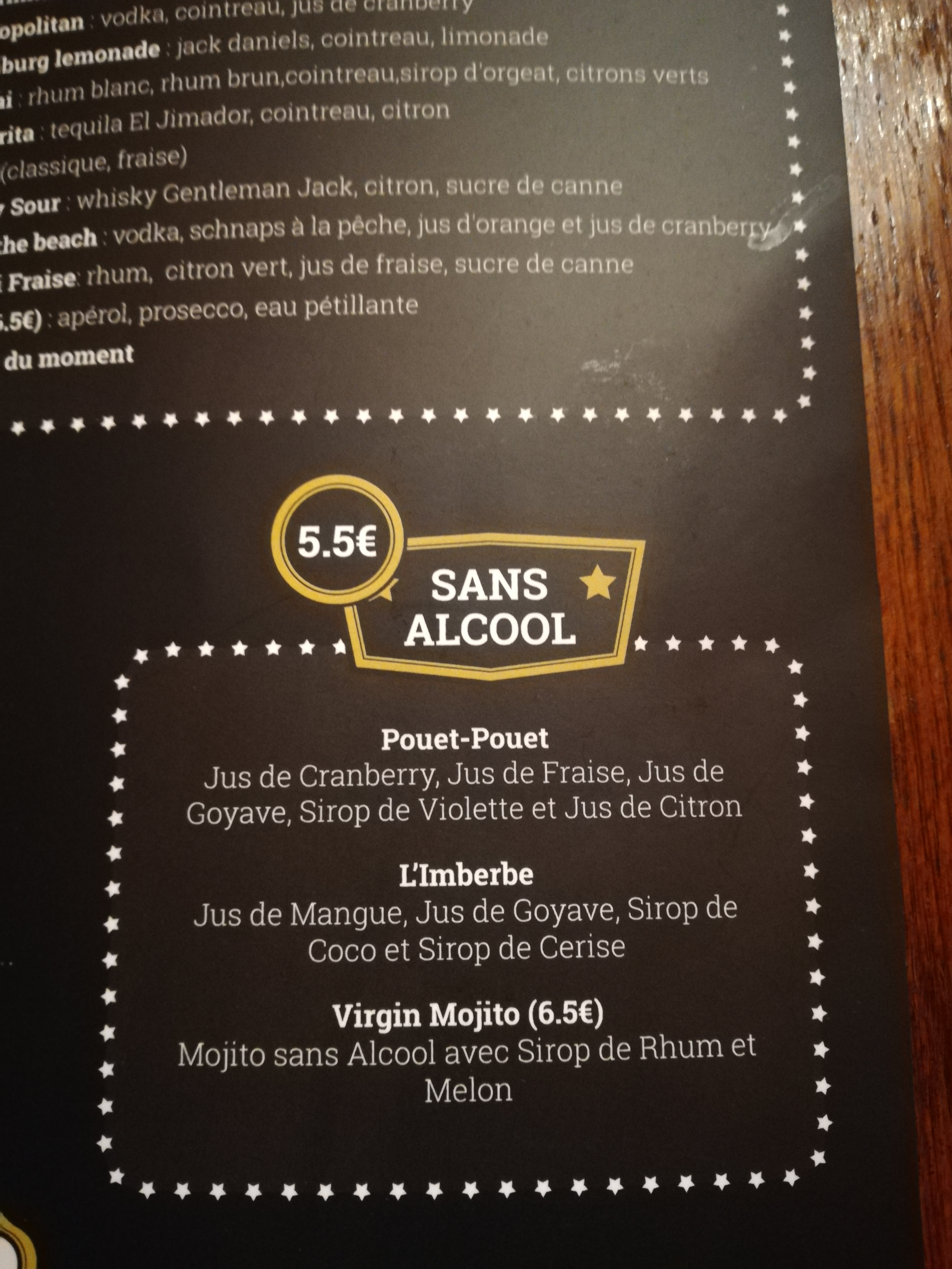 Rapport qualité prix excellent Pour les plats, préférez les burgers, qui sont juste parfaits. Frites maison succulentes Salade et sa vinaigrette bien meilleures que les autres restaurants Le cocktail pouet pouet fut pour moi une très belle découverte Le service est rapide Tous ce qui faut pour faire de moi un nouveau client régulier !