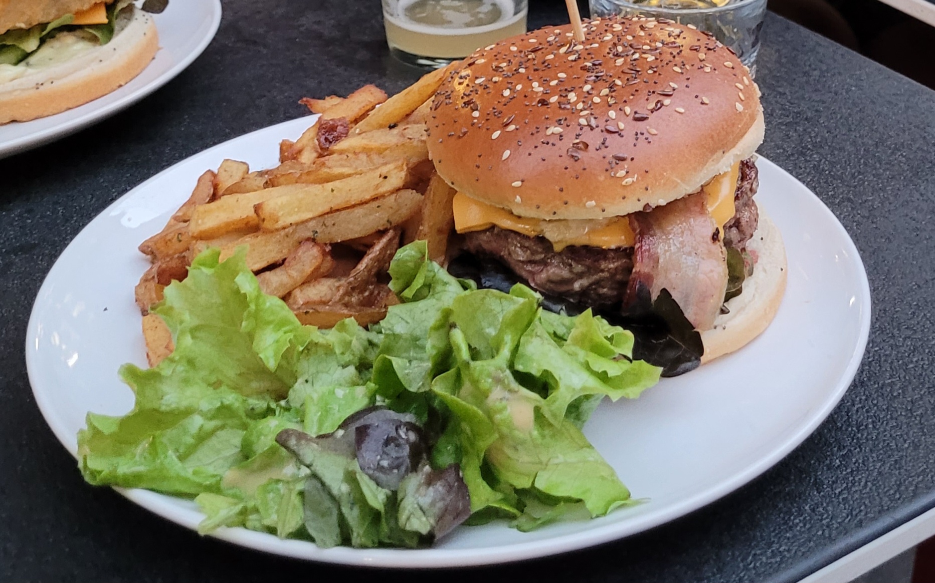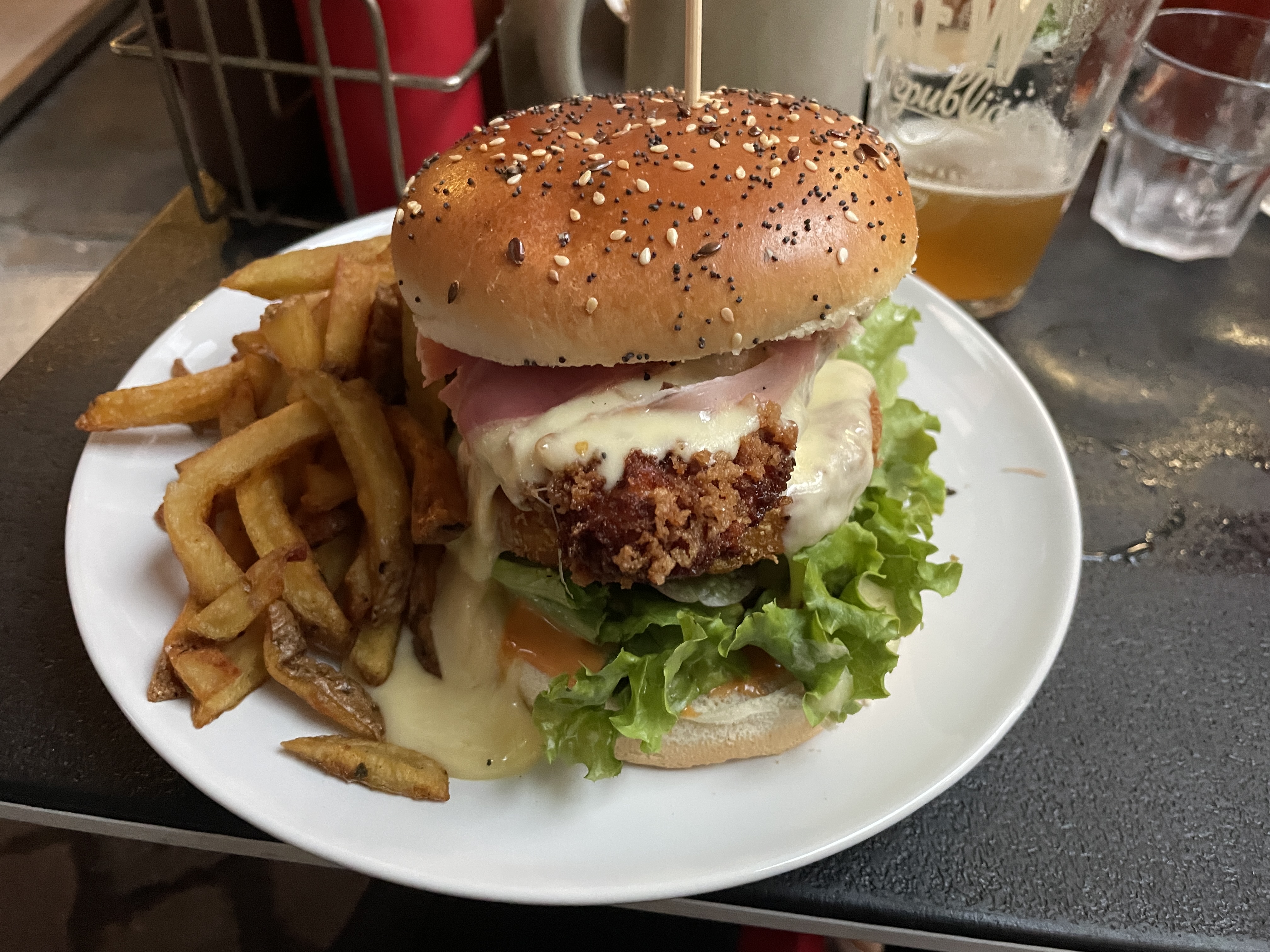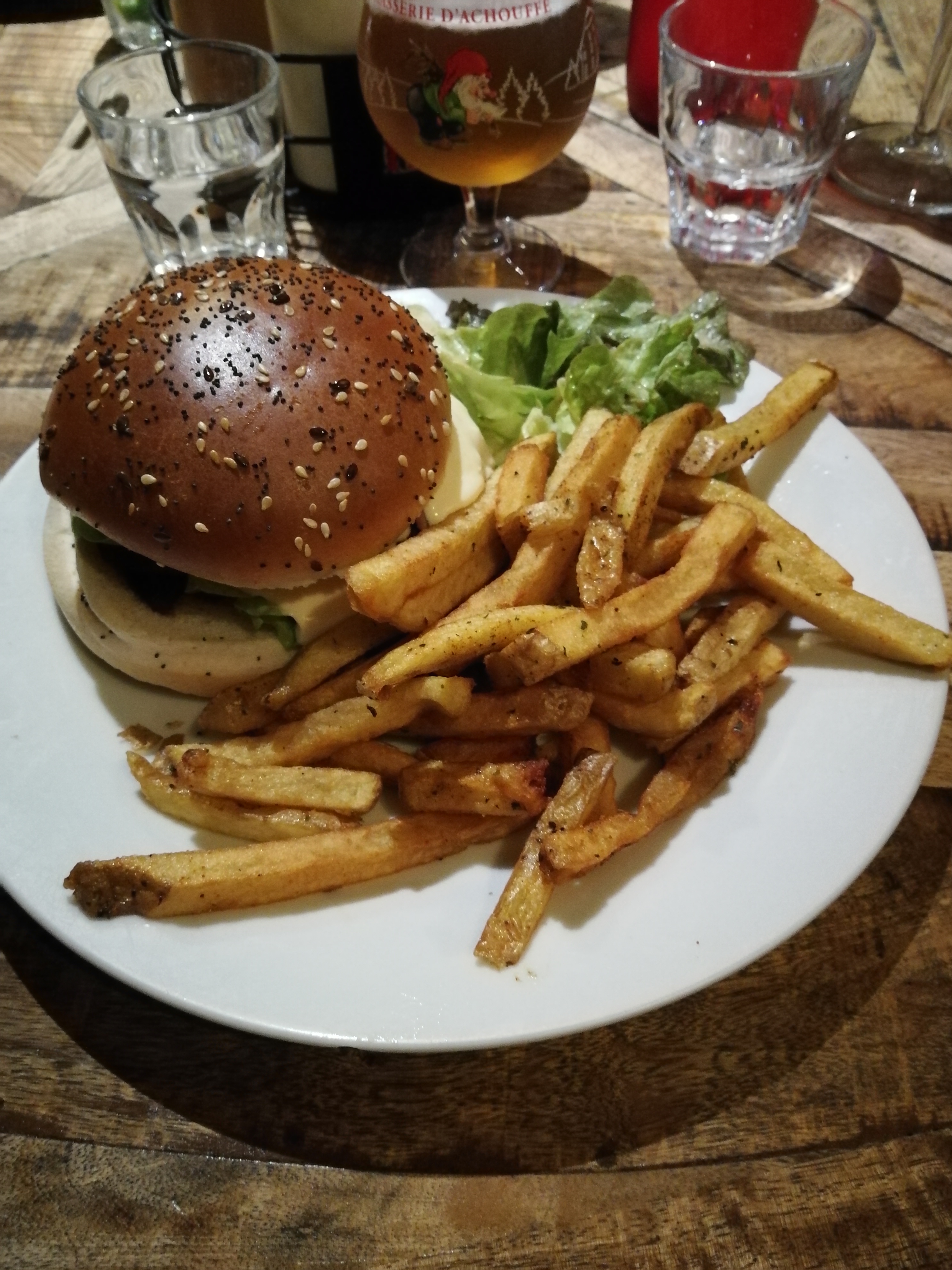 C'était vraiment très bon. Le serveur était très agréable. Il nous a conseillé les bières en fonction de nos goûts et la sélection de burgers est vraiment complète. Ils donnent tous l'eau à la bouche. Le mexicain un peu pimenté et le burger du moment au morbier étaient vraiment très bons. Servi avec les frites et la salade bien assaisonnée, rapport qualité prix est très bon.