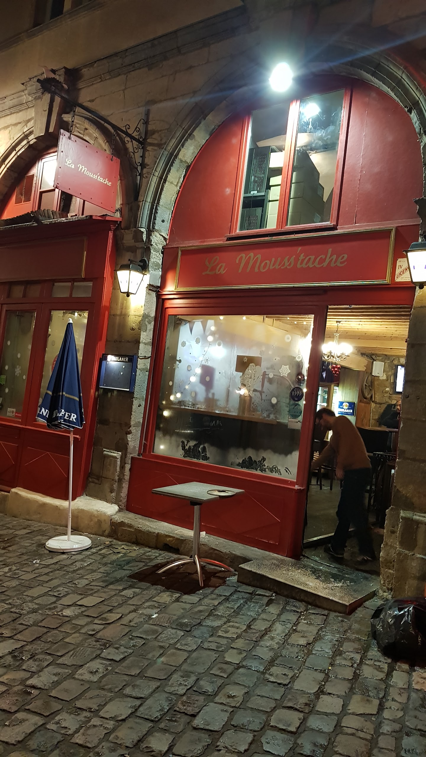 Nous étions dans cet établissement pour la fête des lumières. Bien sûr pour pouvoir rentré en cette période il fallait mangé sur place, aucun problème, nous étions 4. Nous avons consommé aussi de la bière beaucoup de bière tout en discutant, fut un moment ou on nous a demandé de quitté les lieux car il allait fermer. Ok mais d'abord nous finissons notre verre, non vous partez maintenant et il nous amène un verre en plastic pour que nous puissions déguerpir. J'insiste nous finissons notre verre et nous partons. Il m'a pris le verre des mains pour le basculer dans un verre enplastic. Finalement il m'a gonflé et je l'ai mis dans l'évier. Nous sommes allés payer et il est tellement commerçant que malgré qu'on lui est laisser 110 € de bières il nous fou dehors. Je vous laisse faire votre opinion pour passé une soirée entre pot dans cet établissement.