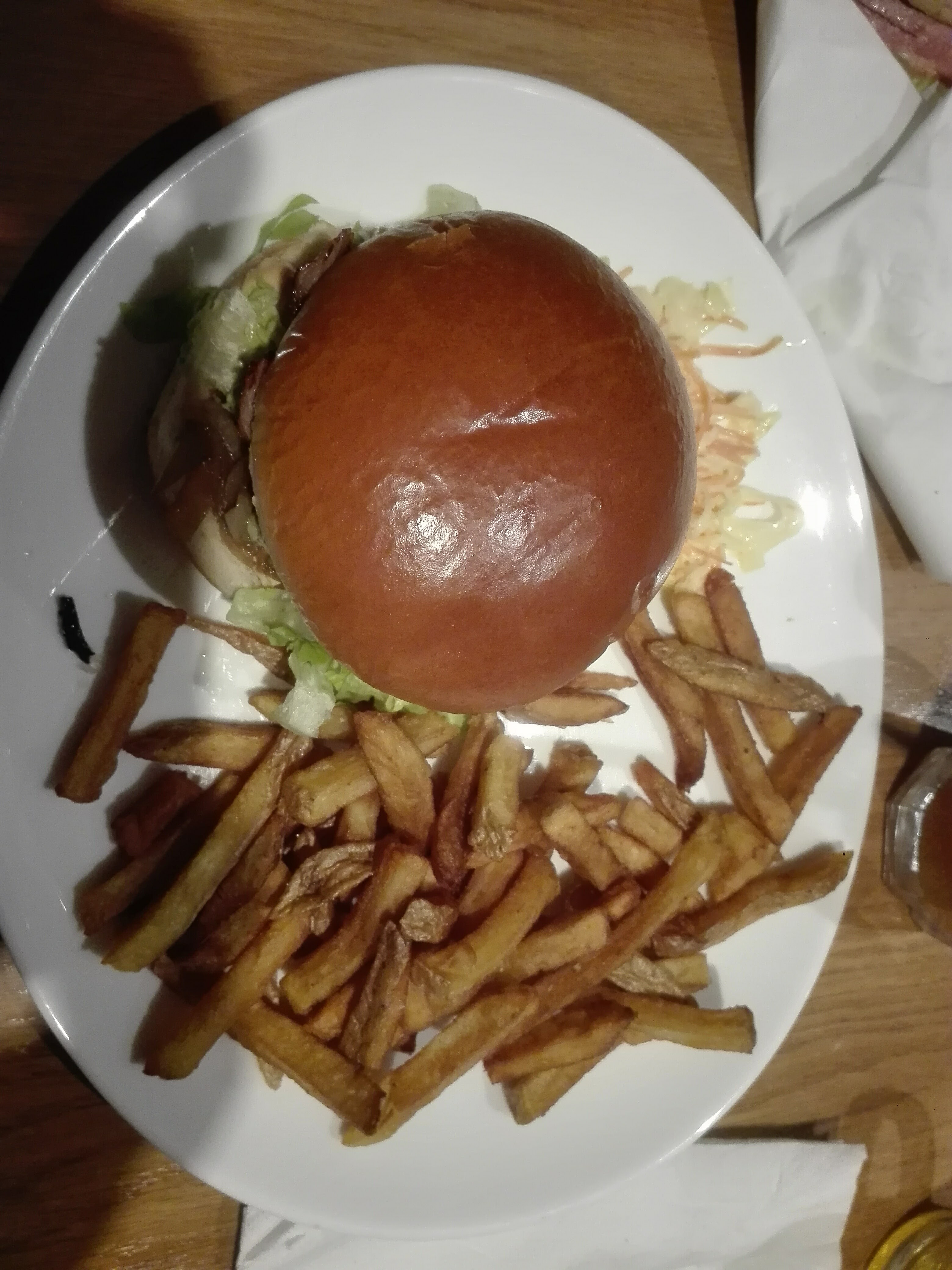 Des burgers et frites excellents, un cadre bien sympa, des bonnes bières en pression et le tout pour un prix raisonnable. J'y retournerai avec grand plaisir :)