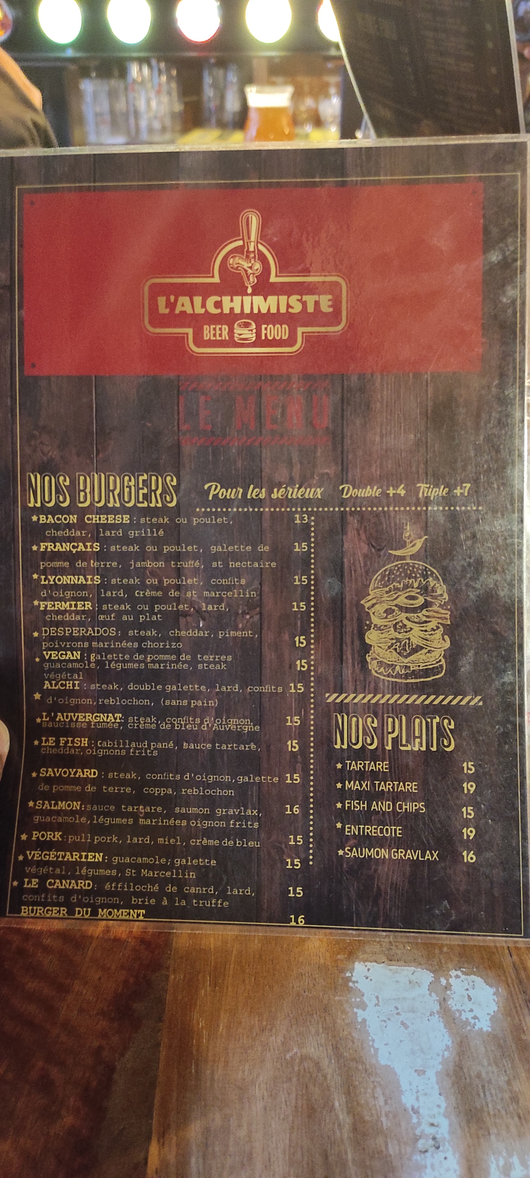 Super soirée à l’alchimiste! Des burgers très quali et très gourmands, une équipe super et l’ambiance qui va avec! Je recommande vivement