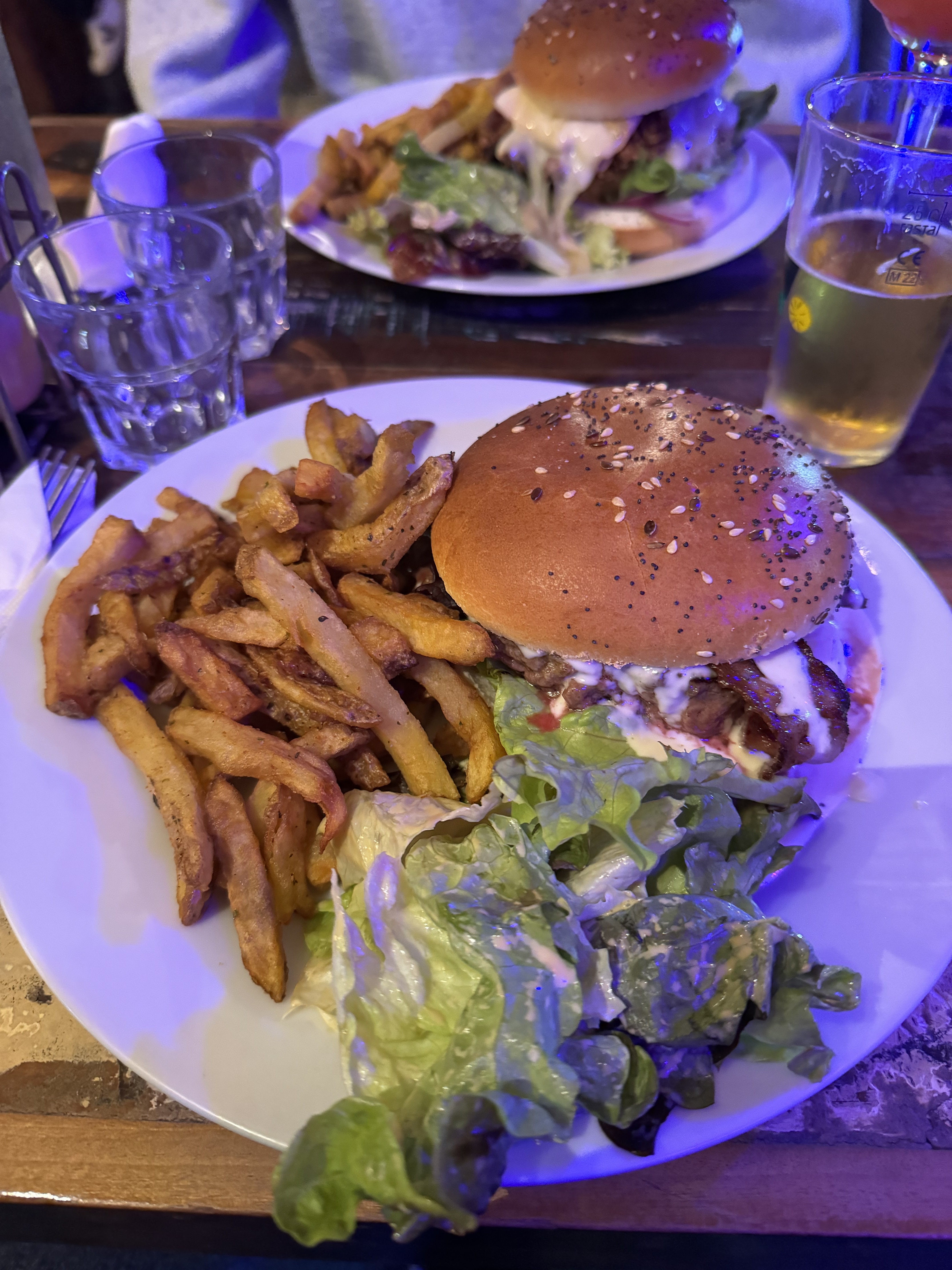 Nous sommes venue manger vendredi soir. Très bonne bière pression et très bon cocktail cosmo ! Nous avions pris deux burger, un classique savoyard très bon, ainsi qu’un burger du moment ! Les frittes étaient très bonne, et maison. Très bon dessert également Ambiance décontracté, une très bonne soirée dans cet endroit Personnel très agréable Le seul petit bémol, c’est qu’il indique dans leur burgers qu’il y a du confit d’oignon mais en réalité ce sont des pickles, mais rien de dramatique, on aimes ou on n’aime pas comme nous, nous les avons retirer mais rien de dramatique !