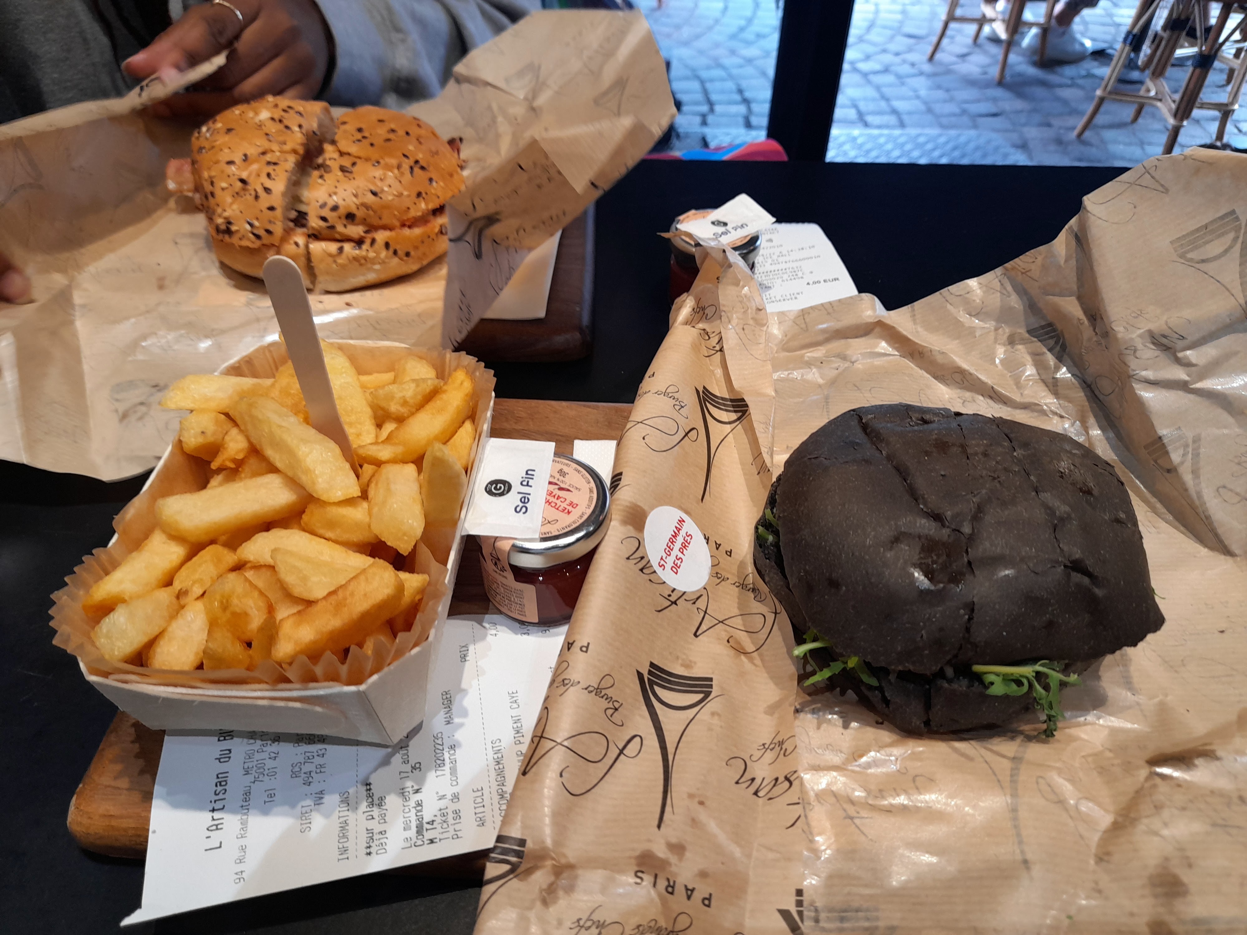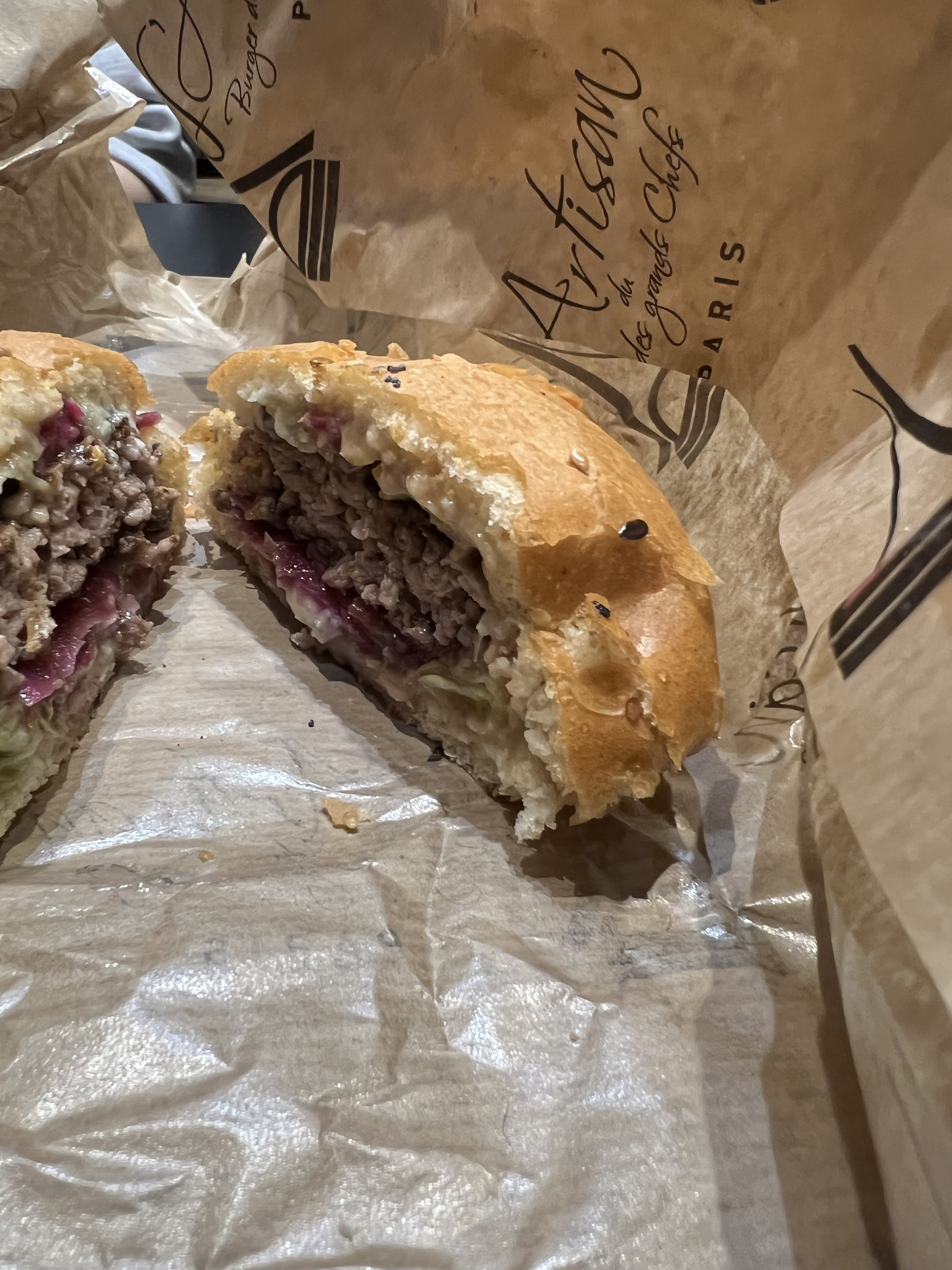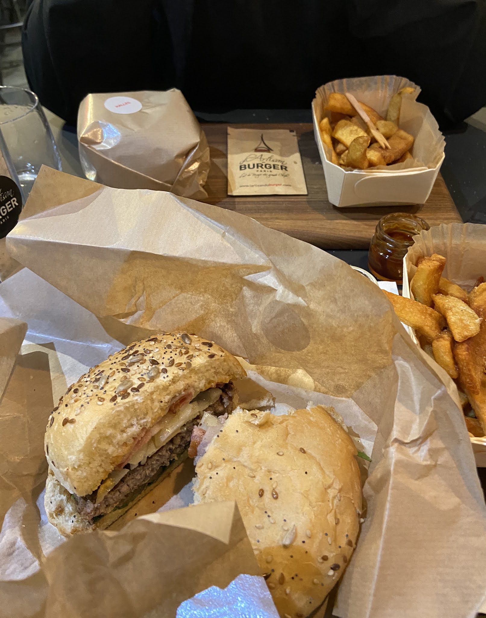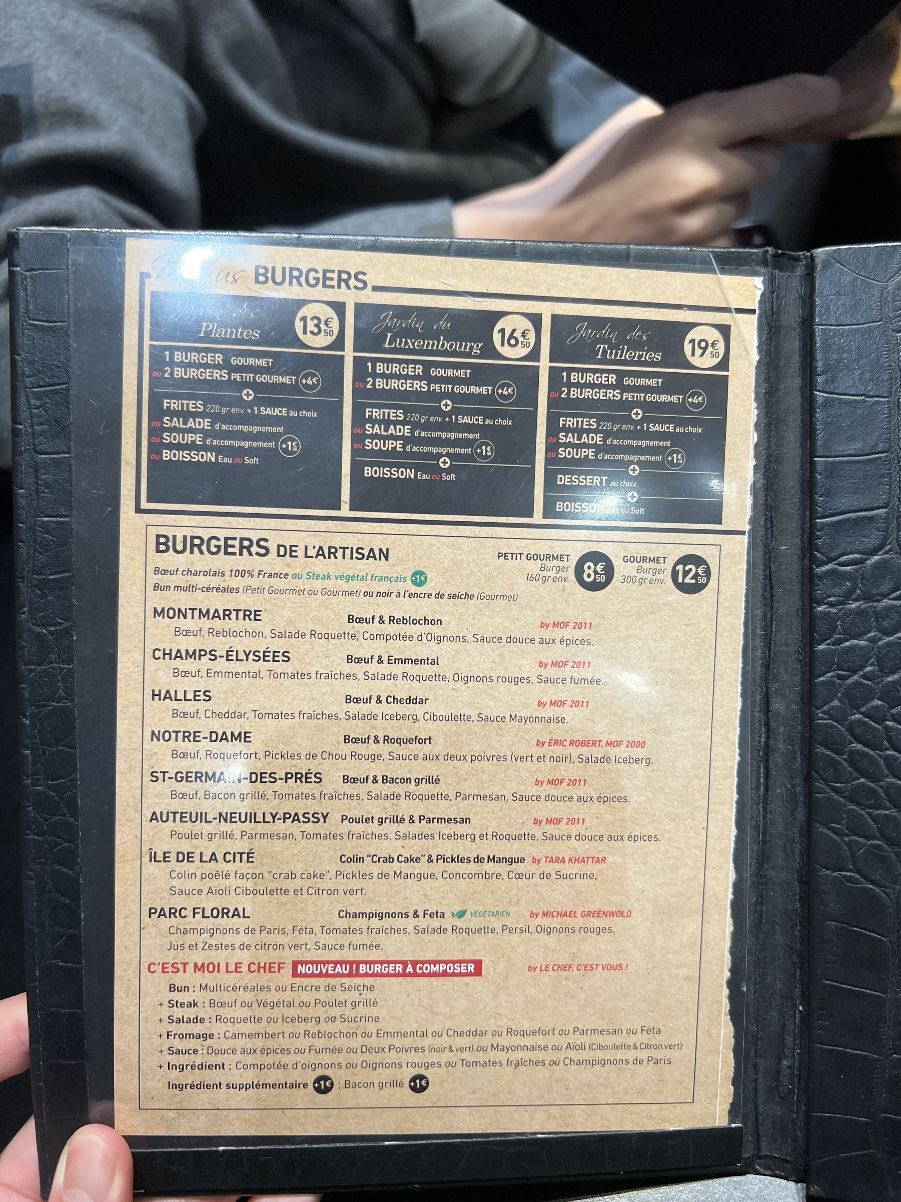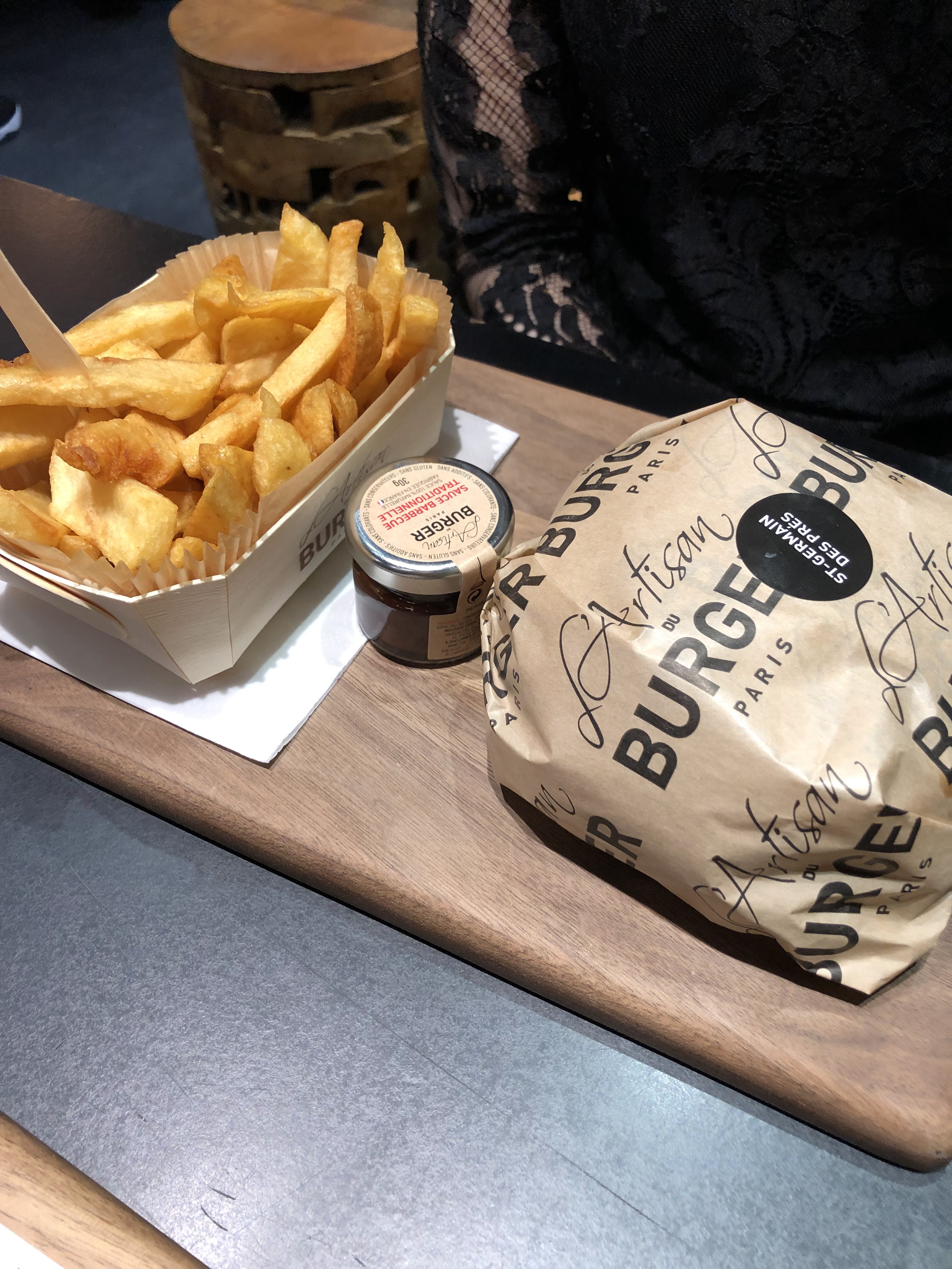 J’ai bien aimé le Montmartre (reblochon) pain Normal ( confits d’oignons un peu sucré mais délicieux !) J’ai moins apprécié le Champs-Élysées avec le pain charbon ( ça manque d’harmonie dans la bouche : on a le goût des ingrédients séparés pain + viande + reste ) mais pas le concept Burger 🍔 Serveuse avec grande boucle à l’oreille, lunettes, pas très grande 😅 elle est adorable, professionnelle et à l’écoute ! Prix / qualité = Bien +