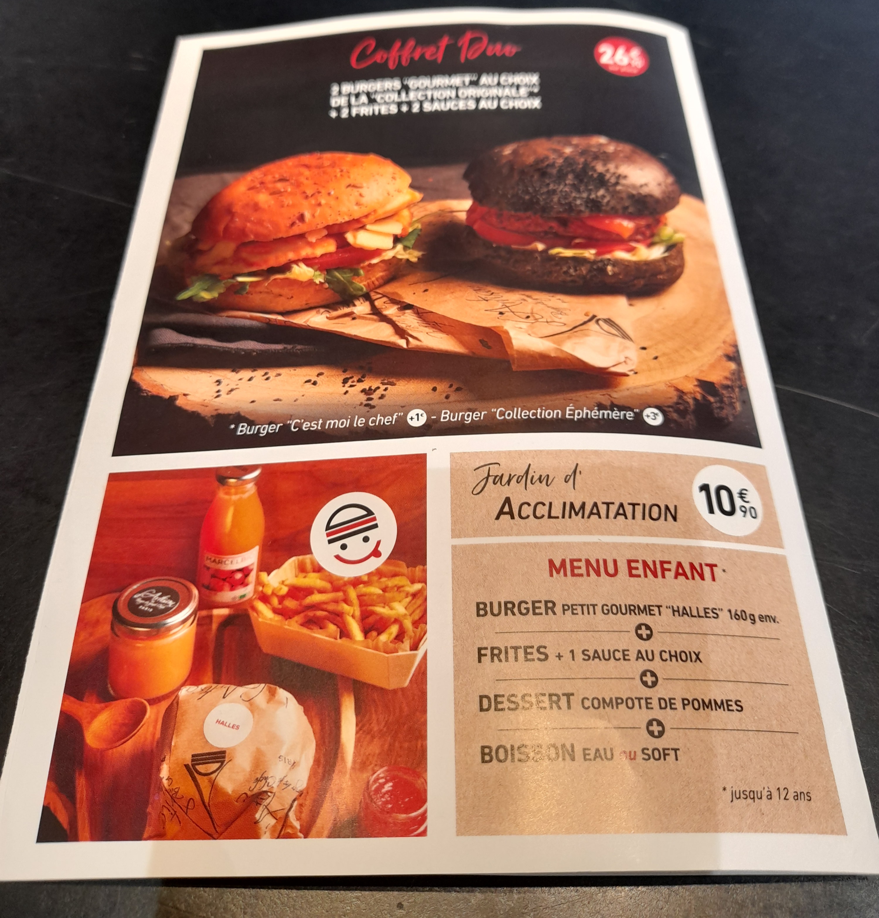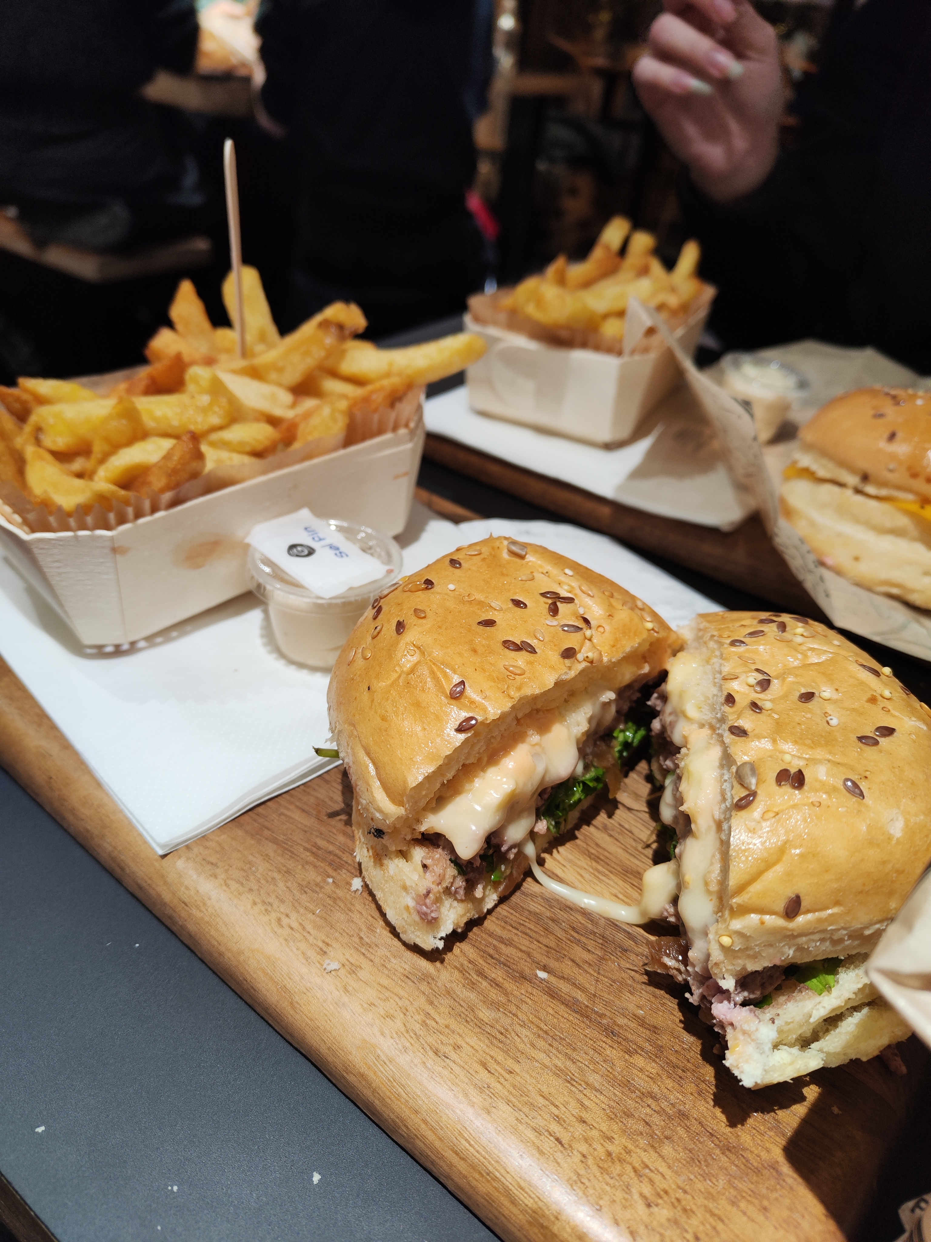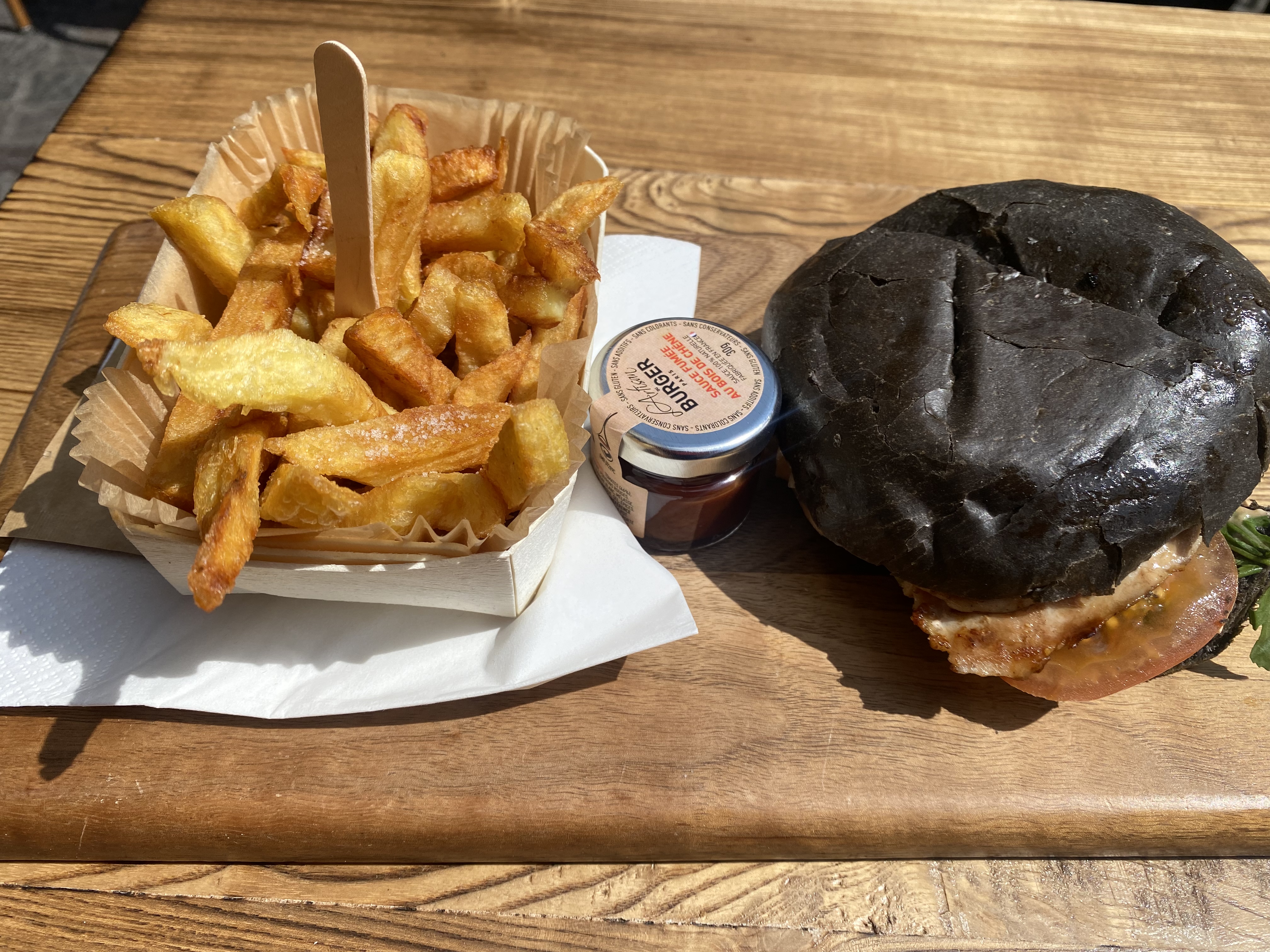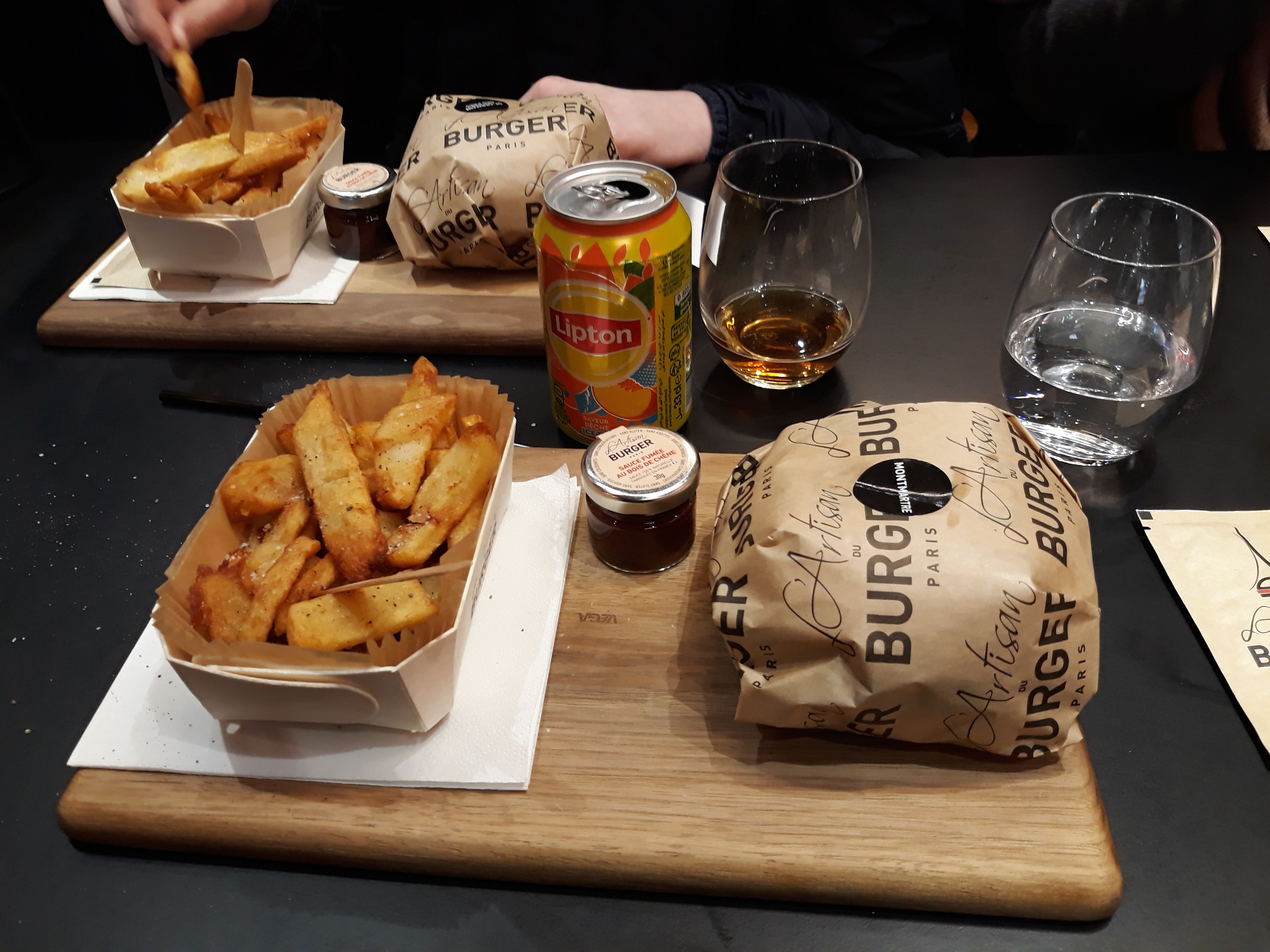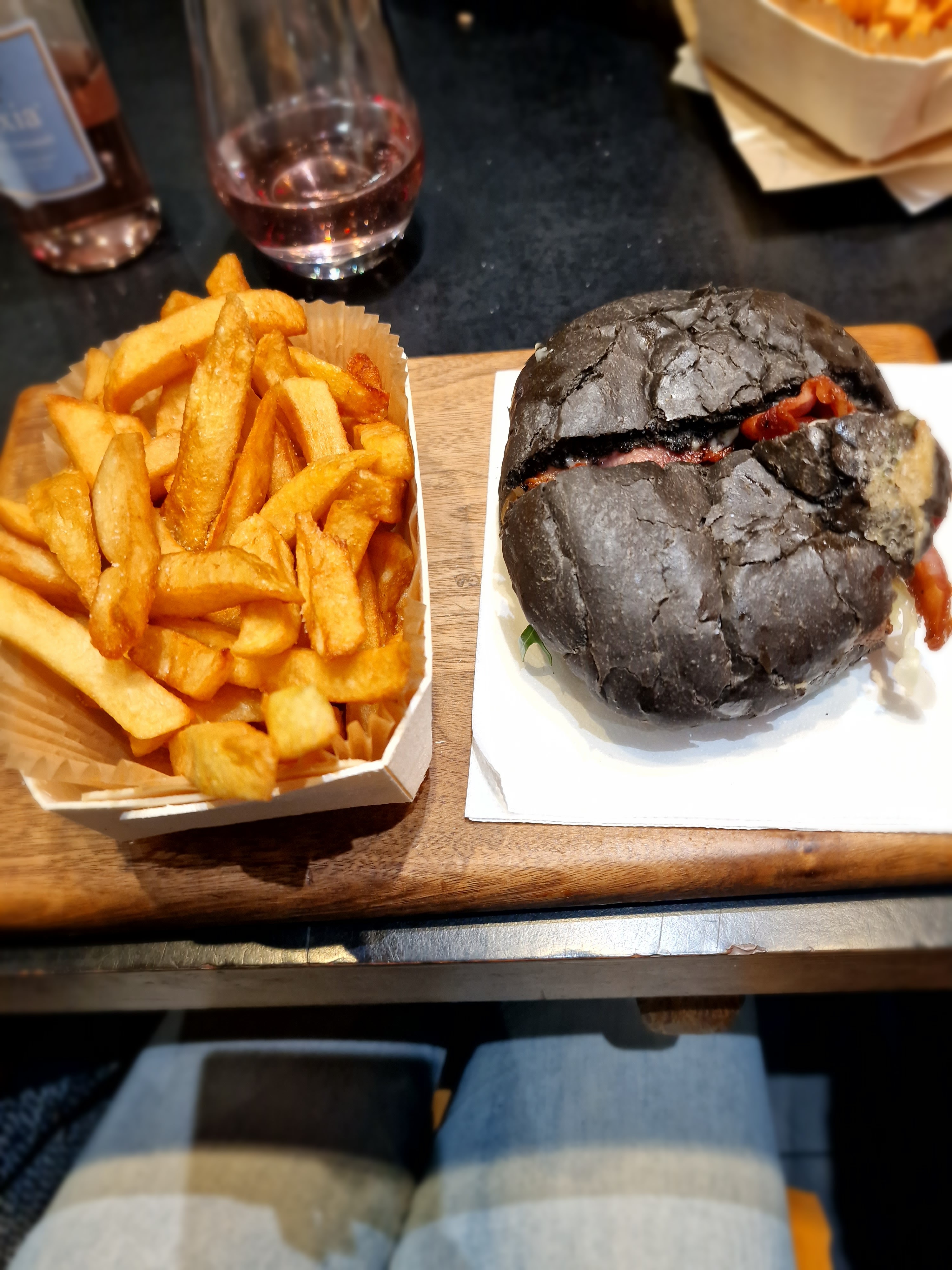 J’ai bien aimé le Montmartre (reblochon) pain Normal ( confits d’oignons un peu sucré mais délicieux !) J’ai moins apprécié le Champs-Élysées avec le pain charbon ( ça manque d’harmonie dans la bouche : on a le goût des ingrédients séparés pain + viande + reste ) mais pas le concept Burger 🍔 Serveuse avec grande boucle à l’oreille, lunettes, pas très grande 😅 elle est adorable, professionnelle et à l’écoute ! Prix / qualité = Bien +