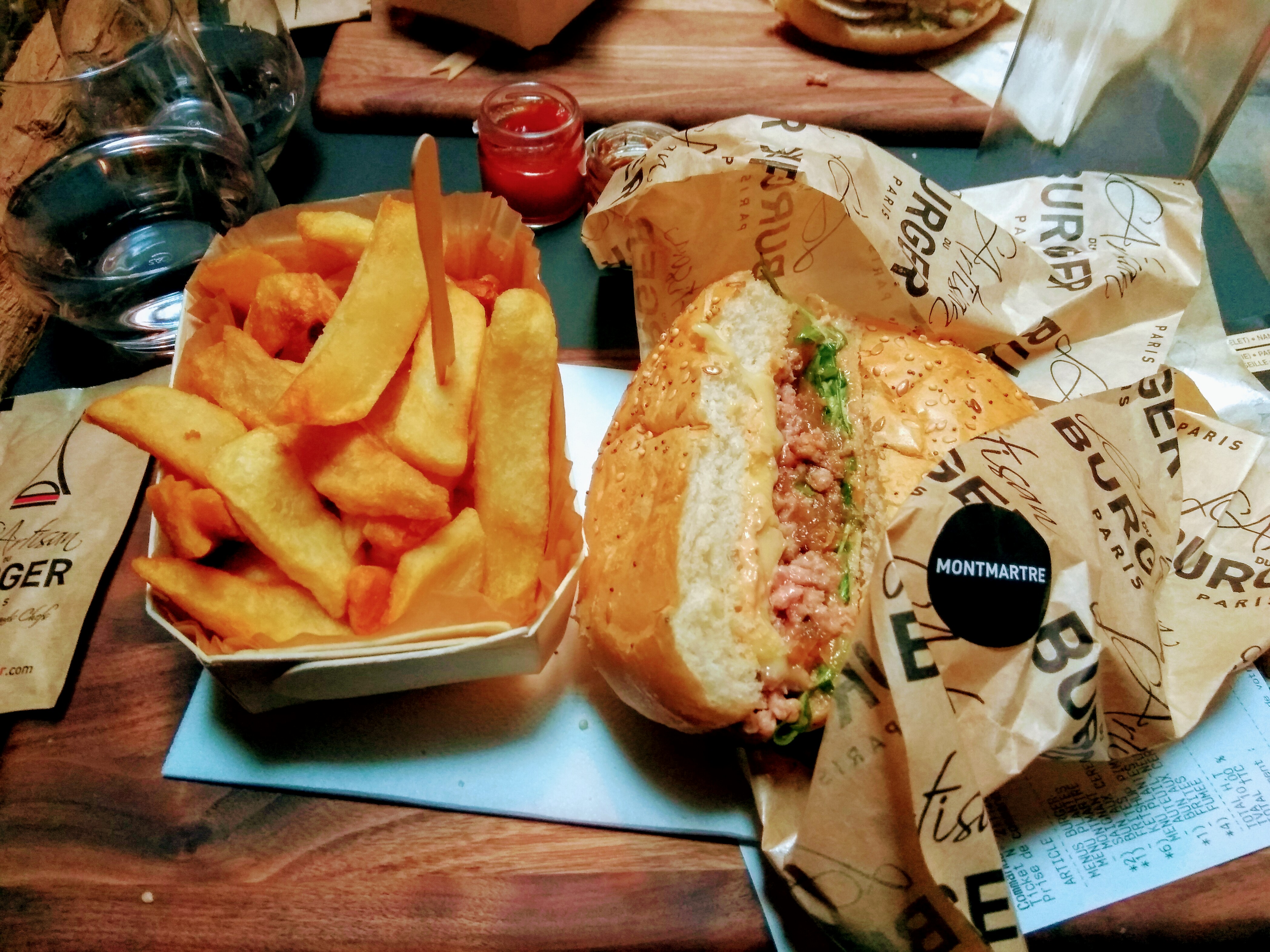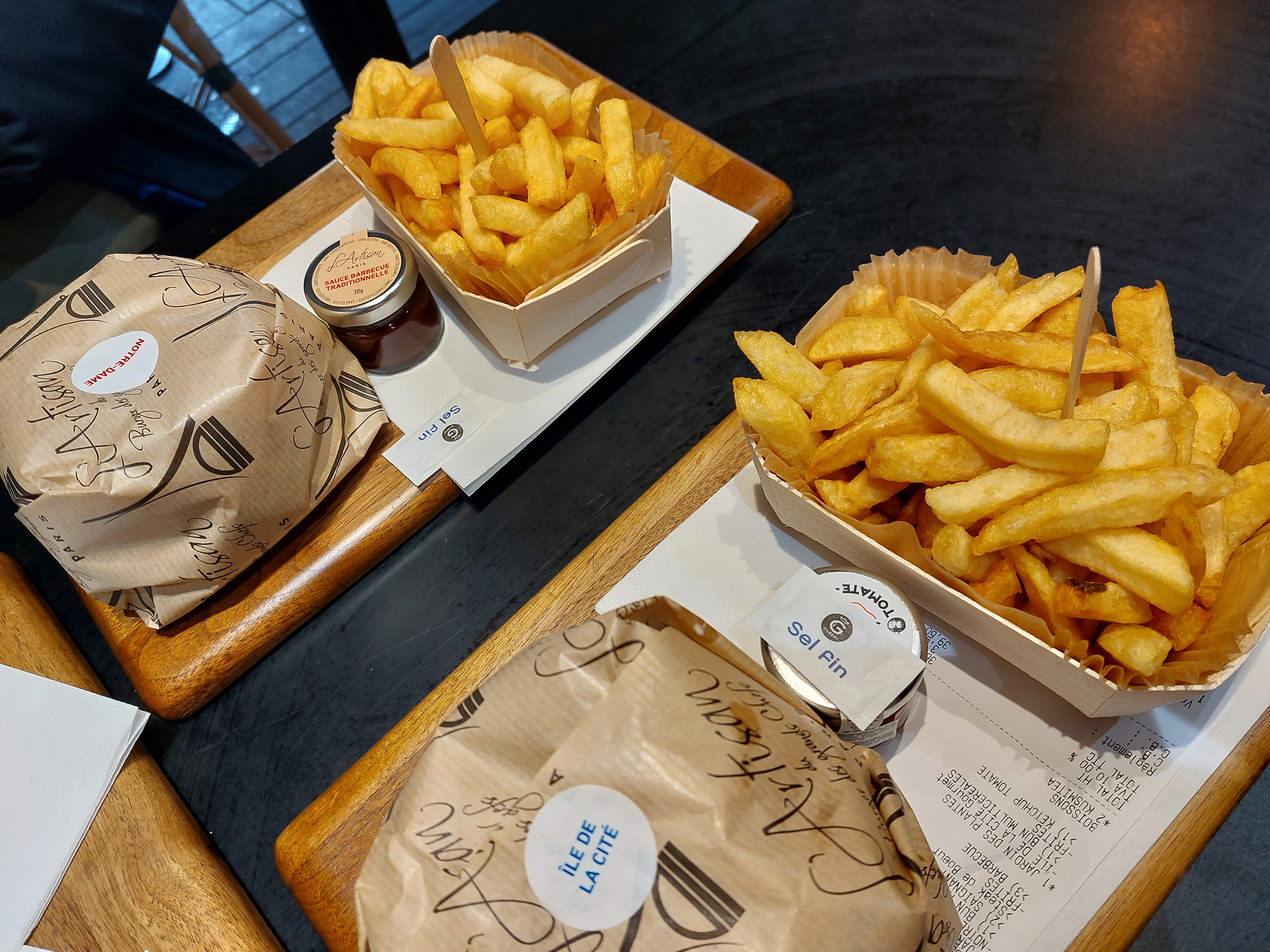 Les Burgers sont bons sans être renversants, Montmartre & Notre Dame pour mon amie et moi, pains à burgers un peu trop... Aériens, cuissons respectées mais nos deux burgers sont arrivés tièdes, c'est fâcheux non !? frites excellentes, la dessus rien à dire.