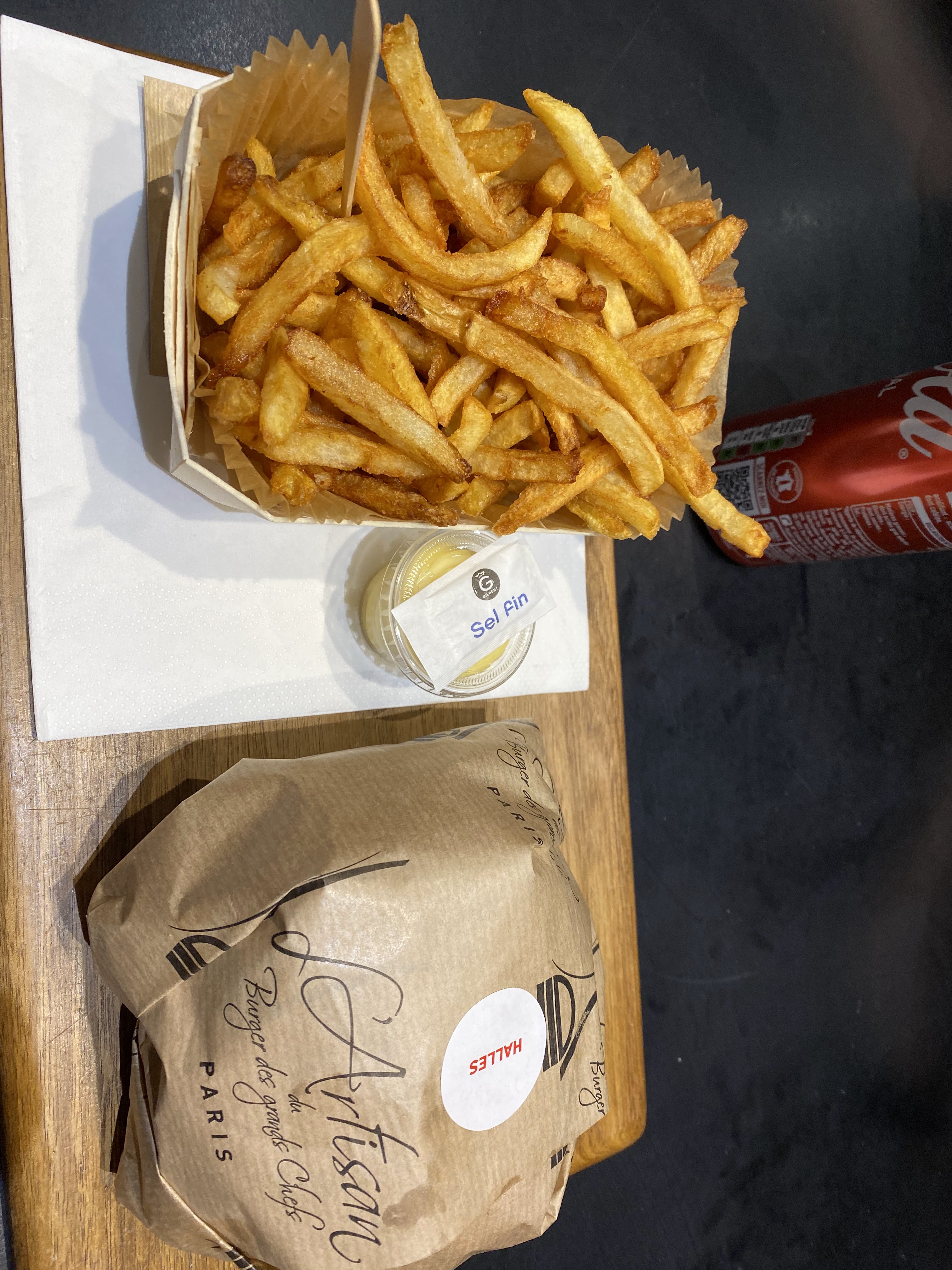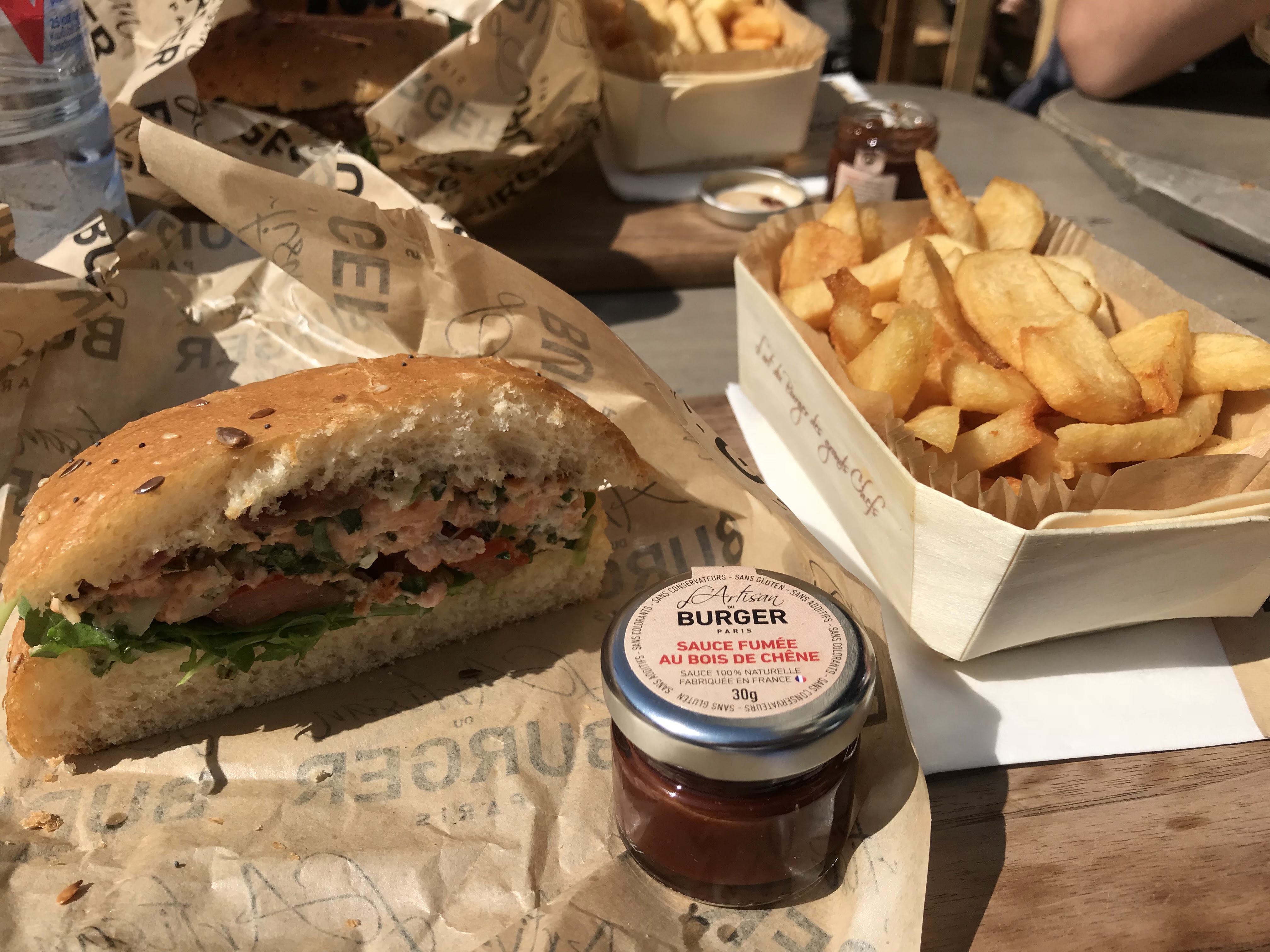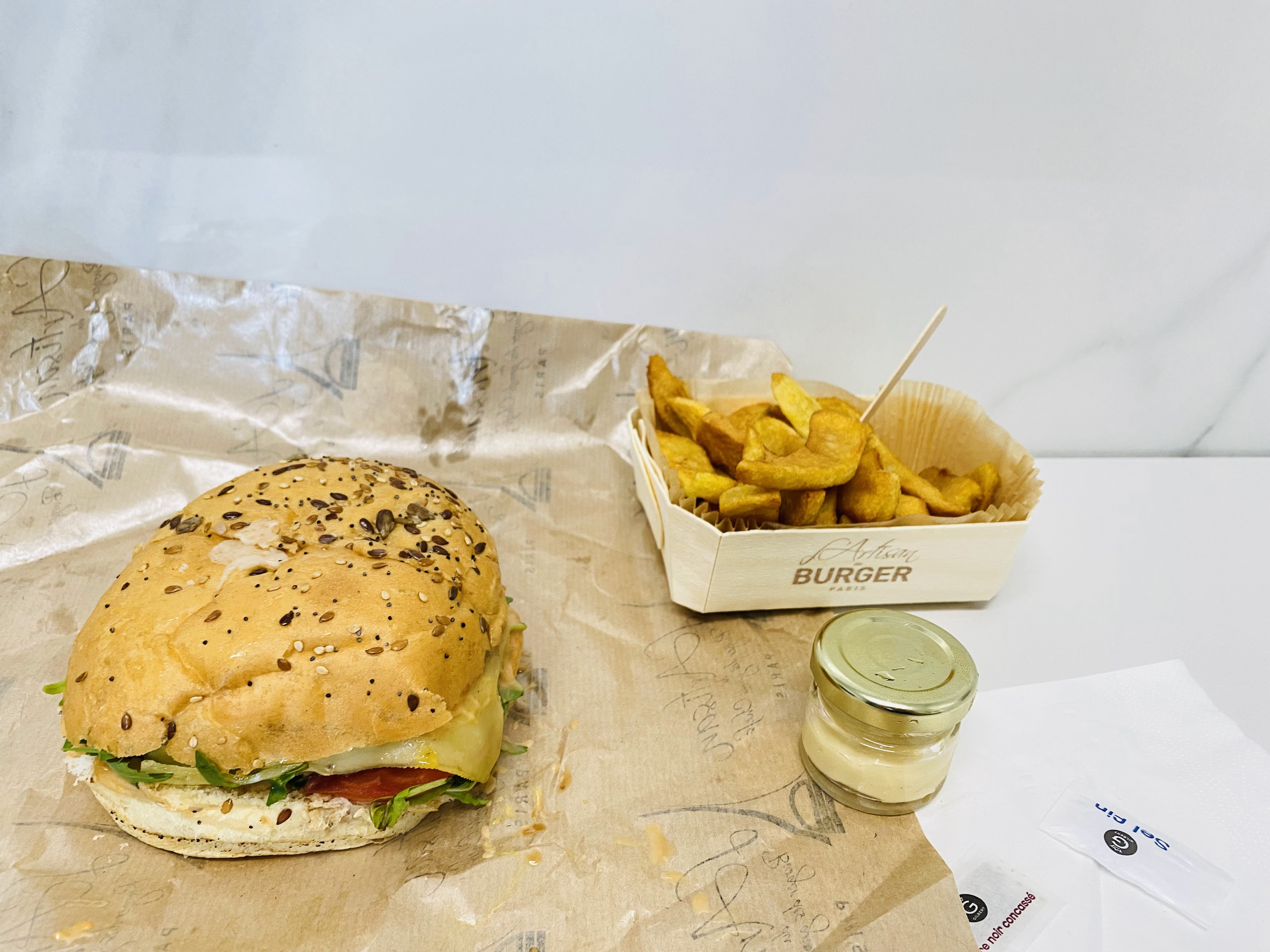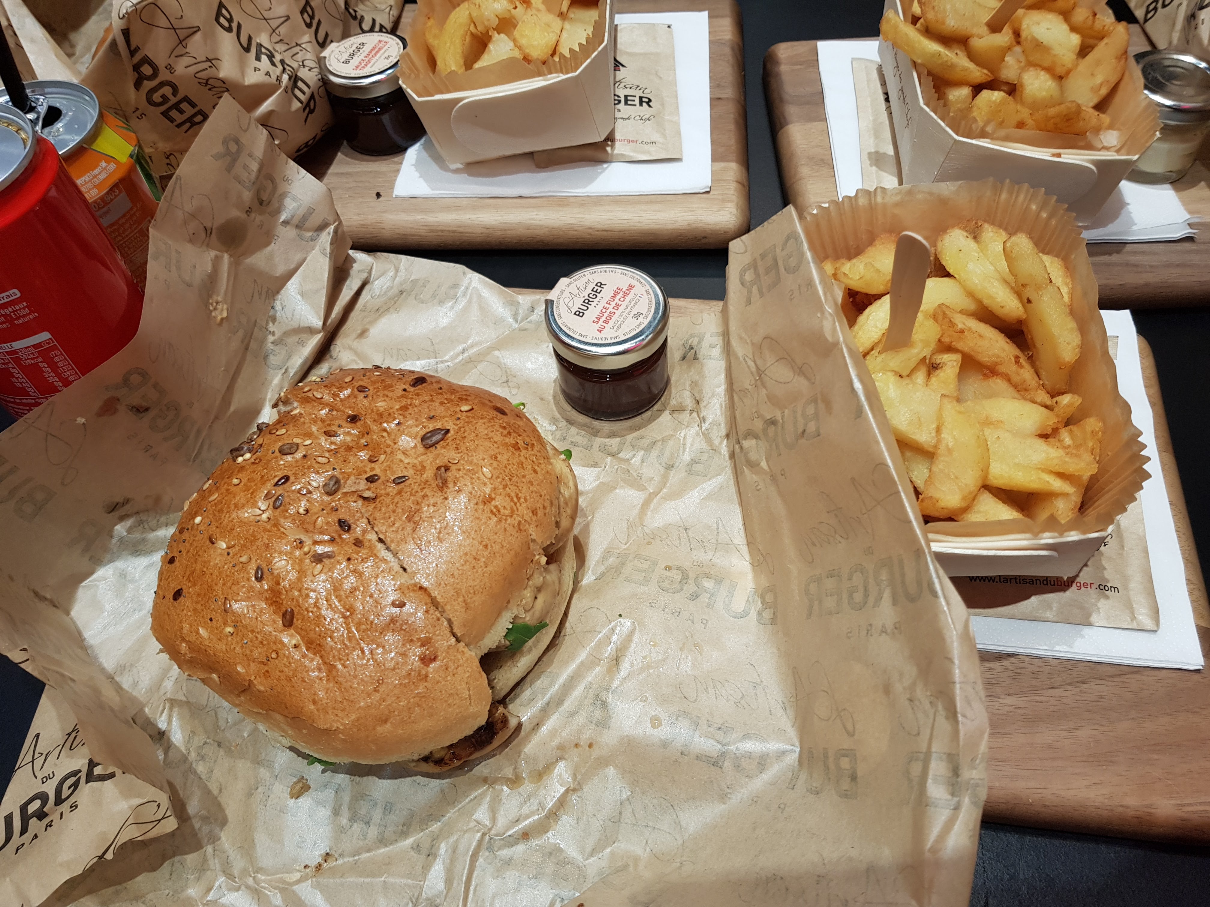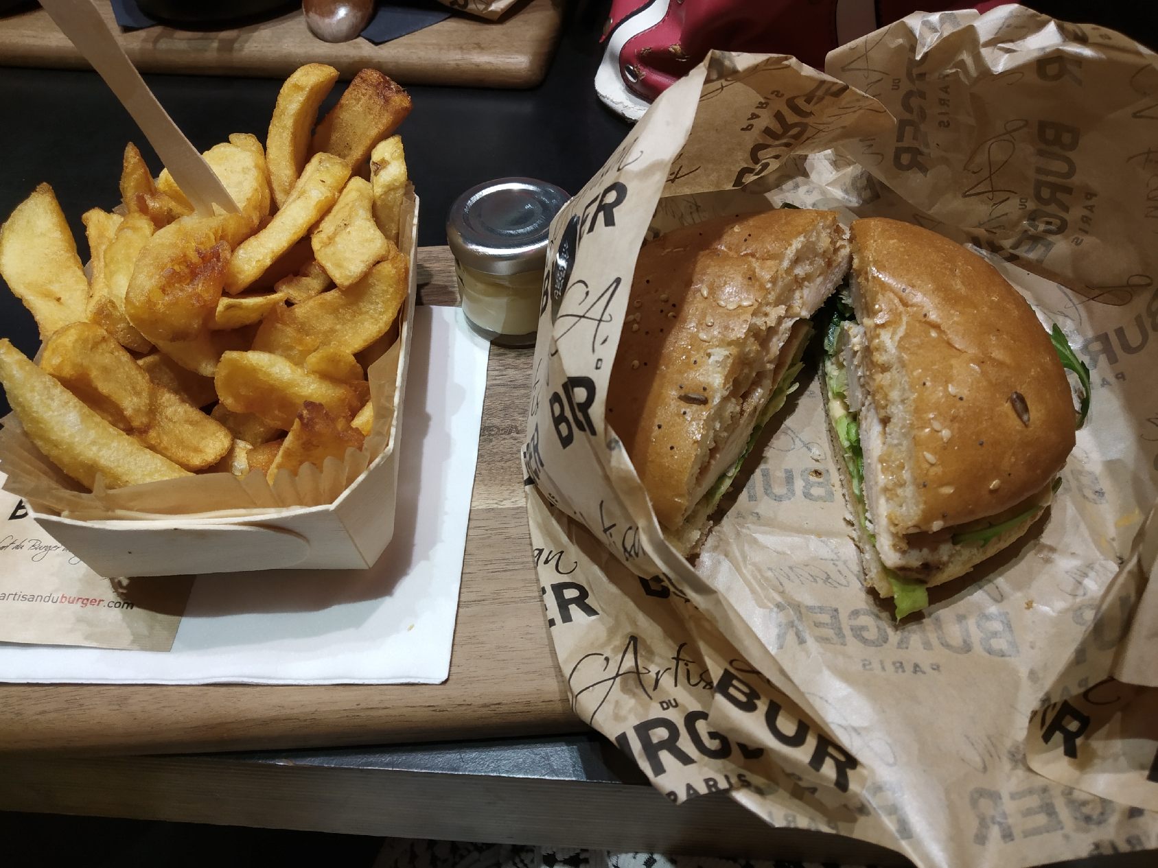 Frite et hamburger trop bon. Leur mayonnaise est faite maison c'est pas de l'industriel. Je vous conseille celui au saumon pour ce qui aime le saumon. Je suis retourné le lendemain et j'ai pris un autre hamburger cette fois à la viande c'était trop bon. Si vous voulez manger un excellent hamburger aller chez l'artisan du burger vous le regretterez pas. De temps en temps il y a des nouveautés comme hamburgers.