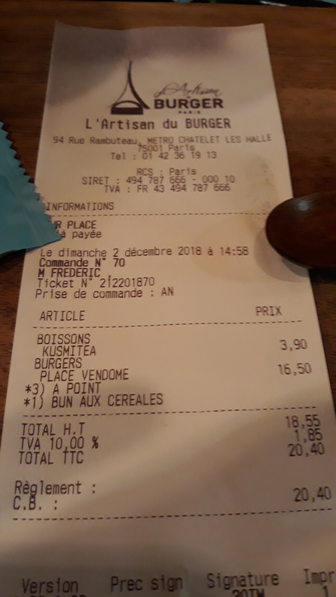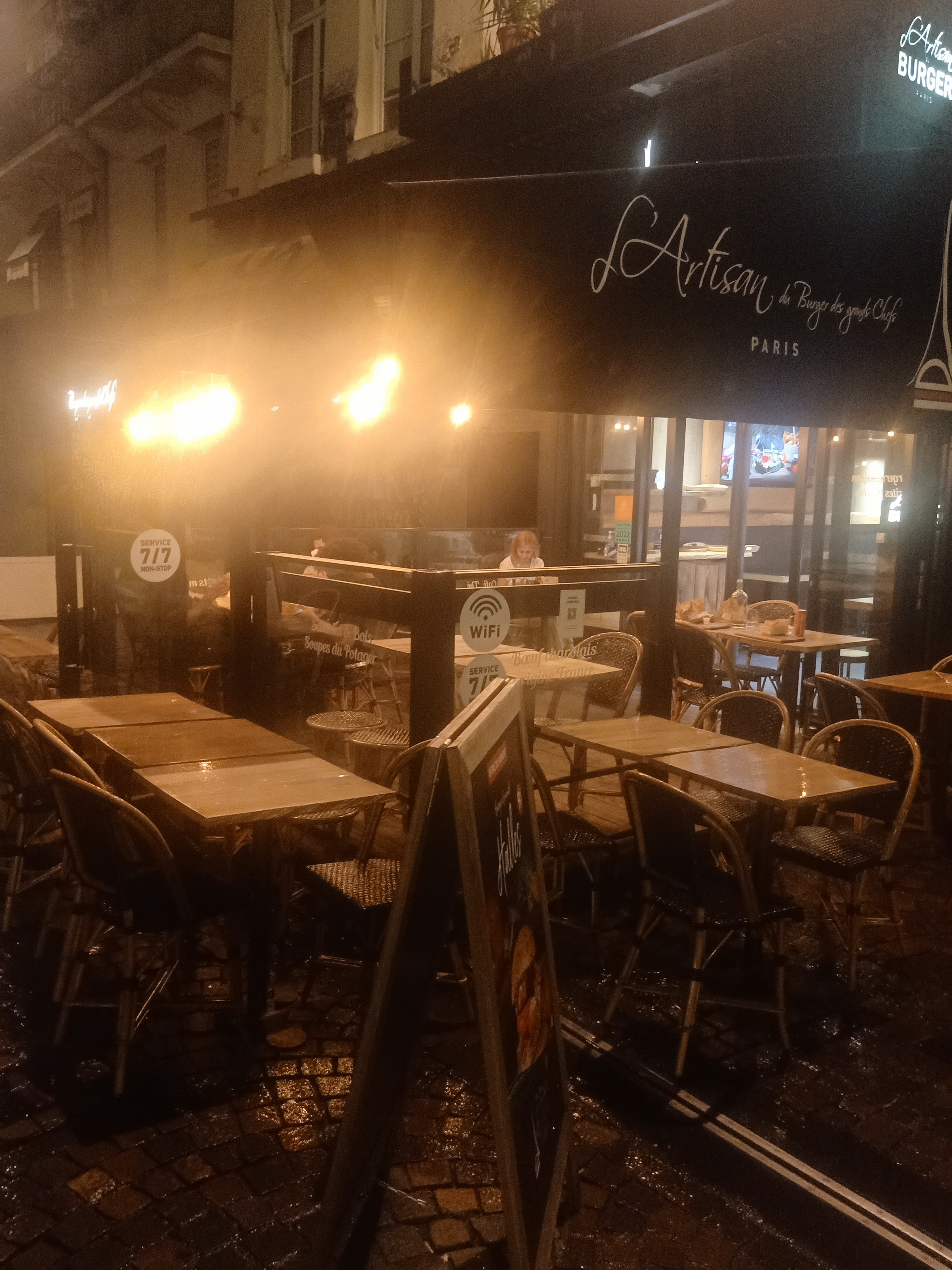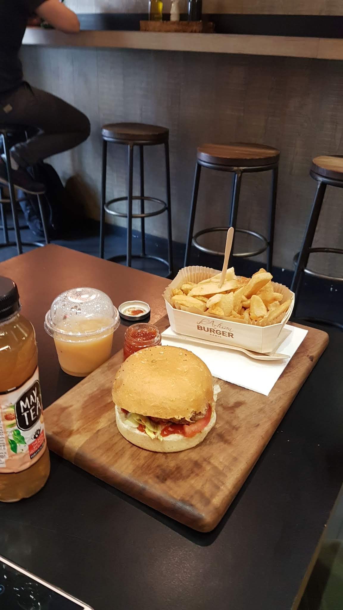 Temps pluvieux, temps heureux ou malheureux ???!! J’ai tenté d’aller chez five guys burger … il y avait un tsunami d’affamé … qui semble adorer mangé au fond d’un sac … je me suis donc dirigé vers Burger King et la c’était pire … du coup je continue mon chemin et fini chez l’artisan du burger …. Ah quel bonheur … fond musique classique au piano … aucun bruit … les gens mange , que dis je , déguste sans stress ….leur burger … j’ai donc été servit par la ravissante et très accueillante CÉLIA …. Et je vous assure je ne la connais absolument pas. Je me suis donc tenter pour le burgers Notre-Dame, on te propose le choix du pain et la cuisson de la viande … j’ai accompagné cela d’une bonne limonade artisanale, certes les prix sont un peu élevé, mais franchement ça vaut le détour.je suis défenseur du bon et surtout bien manger … ici le contrat est remplit …. Merci 🙏
