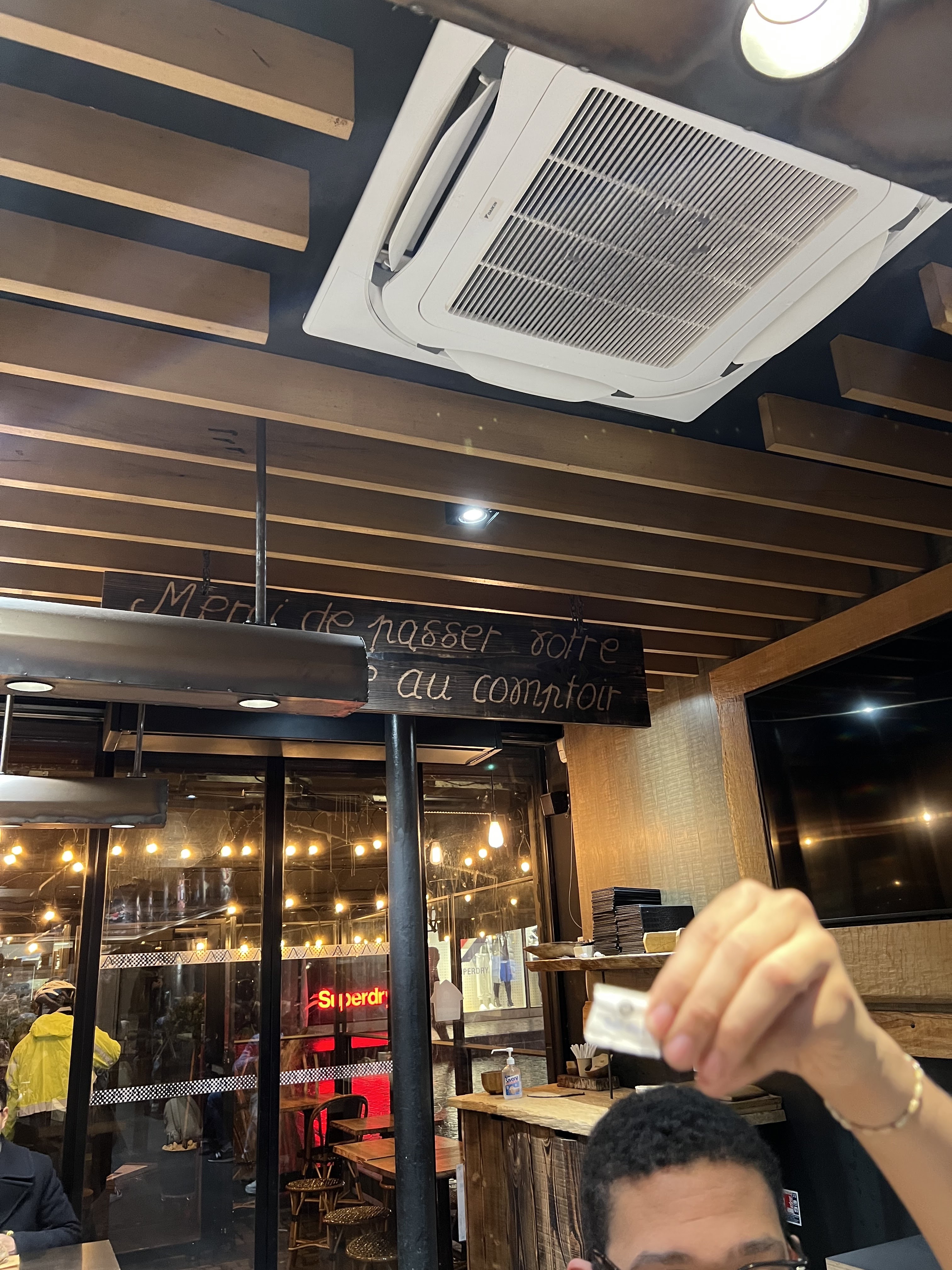 J’ai tous simplement pas mangé quand j’ai vu l’état de propreté dès tables, de la sauce sur les chaises, le sol très très sales aucune viande n’est casher ou halal on est a paris… bref y’a que les toilettes qui sont beau… l’hygiène est primordial