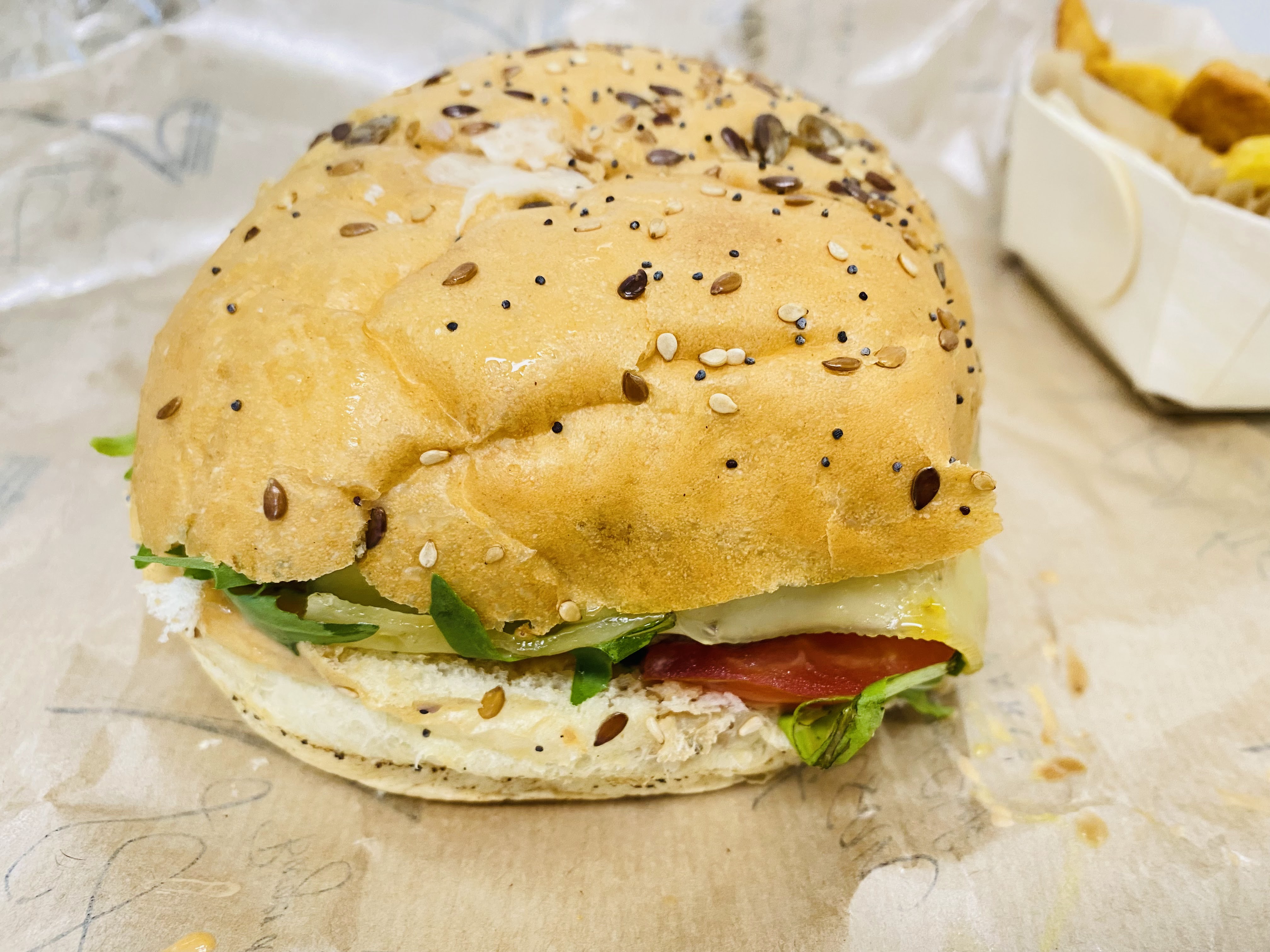 Portion correcte, malheureusement avec trop d‘huile, trop de gras. Les produits sont d‘une bonne qualité. Je n‘ai pas pris de burger car j‘ai trouvé la taille disproportionnée par rapport au prix d‘autant plus que les frites ne somt pas inclus dans le prix du burger. Il y a peu de places assises et dès que la porte s‘ouvre il fait super froid :/