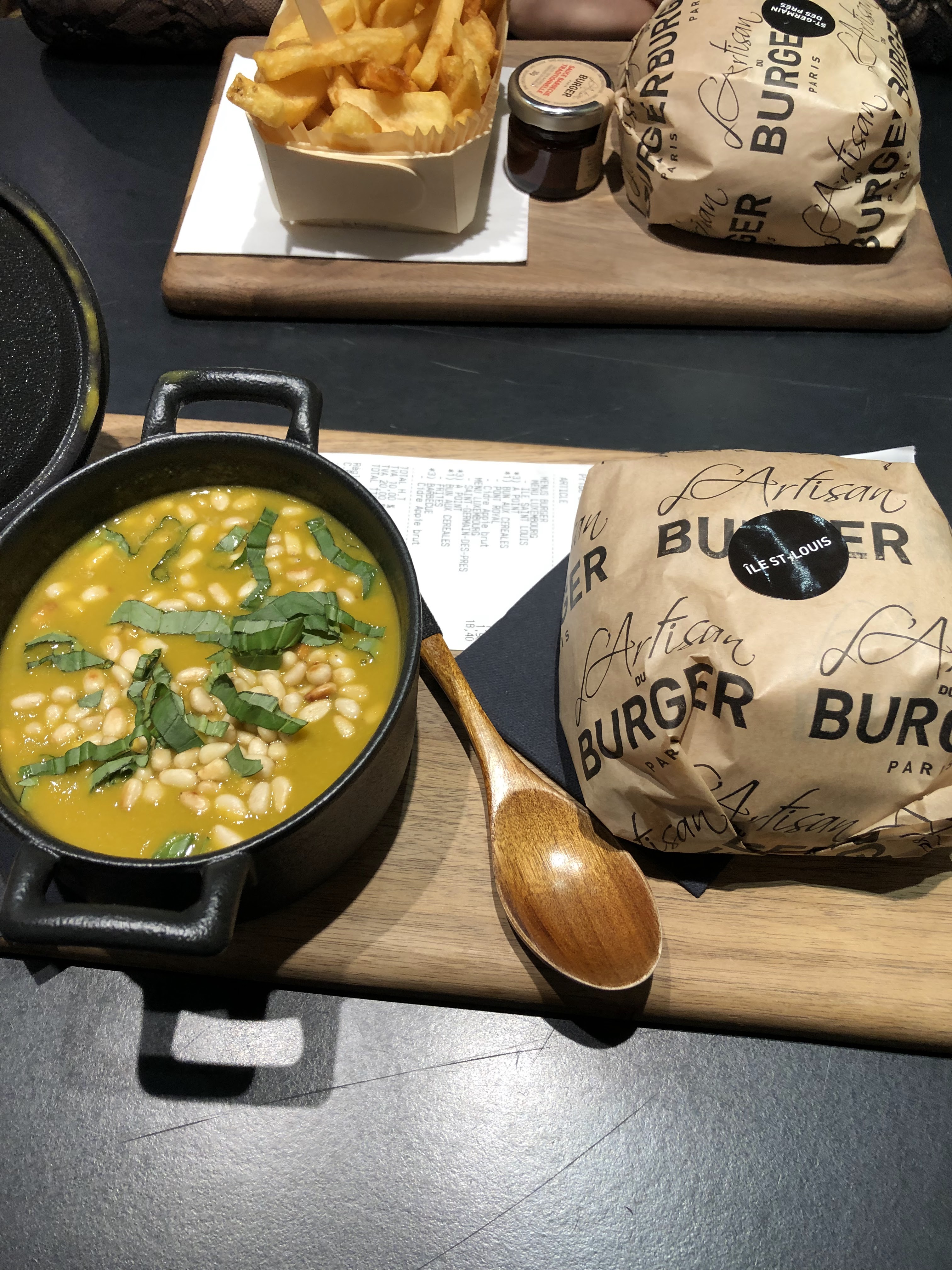 Experience clairement décevante… Je suis un habitué des resto à burgers sur Paris et cette fois ci, avec mes amis on a décidé de tester l’artisan burger. J’ai payé 20€ pour 2 petits burgers, 1 frite et 1 boisson. Ce n’est pas donné mais ce n’est pas grave. Ce qui est très décevant, c’est que j’ai décidé de payé 4euros de plus dans le menu pour choisir 2 petits burgers plutôt qu’un gros burger. Sachez que les 2 petits cumulés, font la même taille qu’un gros ! Sauf que pour le coup, vous avez payé 4 euros, que vous avez des trucs, on a l’impression que ce sont des apéritifs, et j’ai même pas pu choisir mon pain. La soupe, super bonne, mais rien à voir avec ce qui est proposé sur la photo 😅 Bref, je note pas la soupe, mais mes burgers et ça valait 2 étoiles pour le rapport qualité / prix