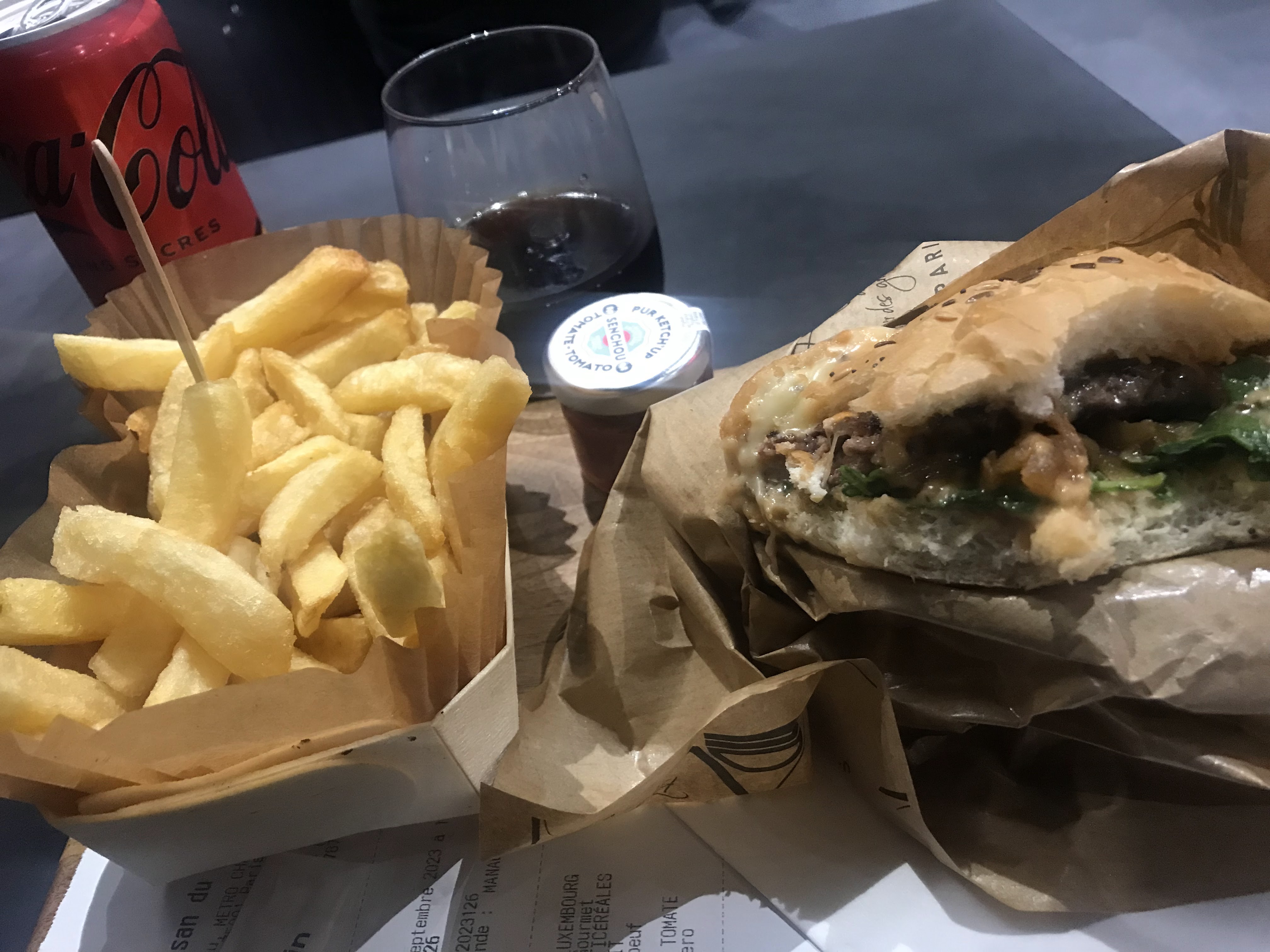 C'était très bon, bien mangé, le burger était délicieux mais la taille de la portion de frite était un peu décevante..