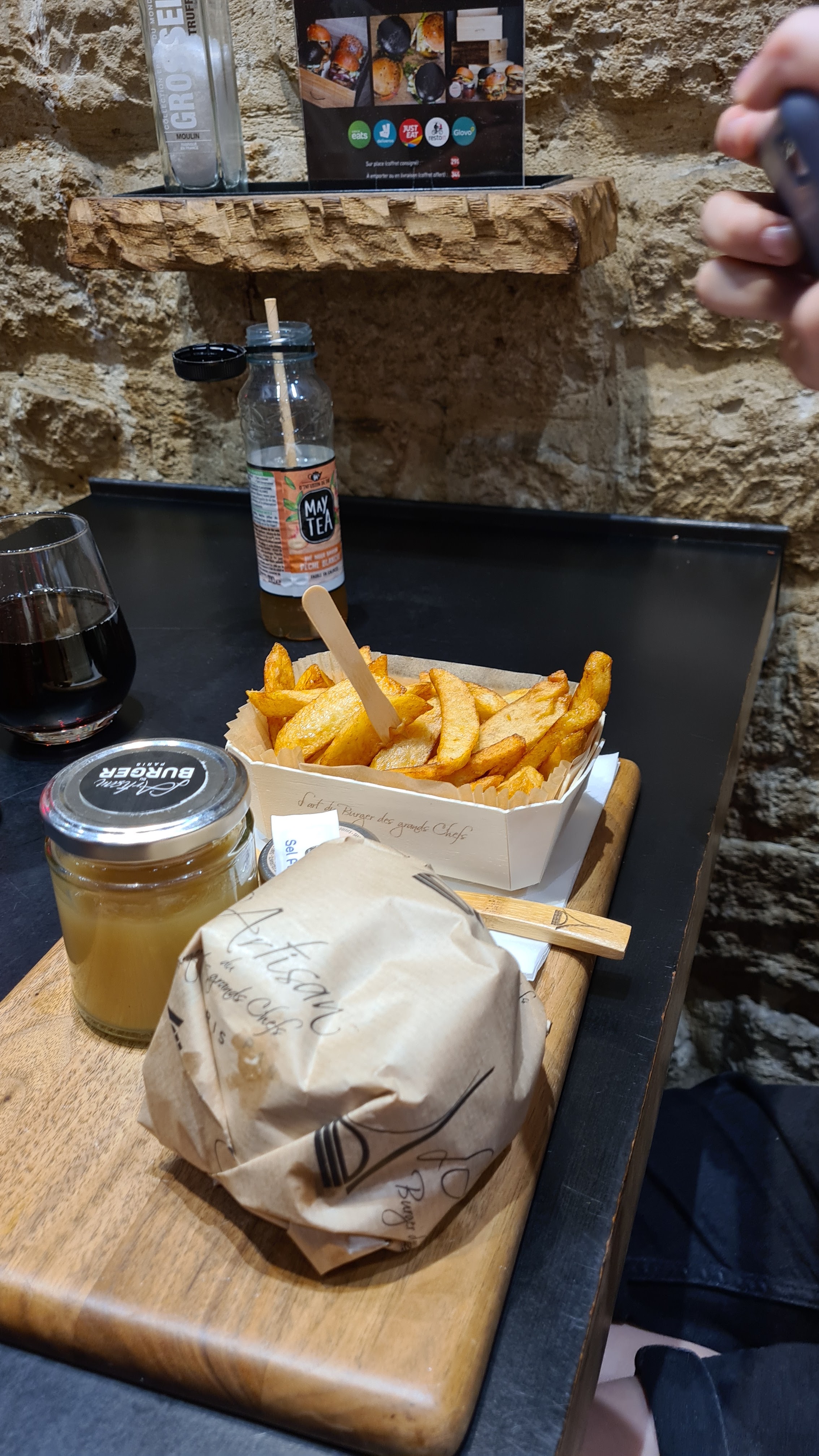 Je sais pas ce que ça vaut sur place mais vu la tête de ma commande reçue chez moi, je déconseille vivement !!!! Des prix excessifs et non justifiés. Burger franchement degueulasses. Frites froides, pomme de terre pas cuite et de mauvais goût, burger sec et avec des produits non frais, prix élevé, c’est plutôt les Artisans de l’arnaque. Voyez par vous même en photo. Never again
