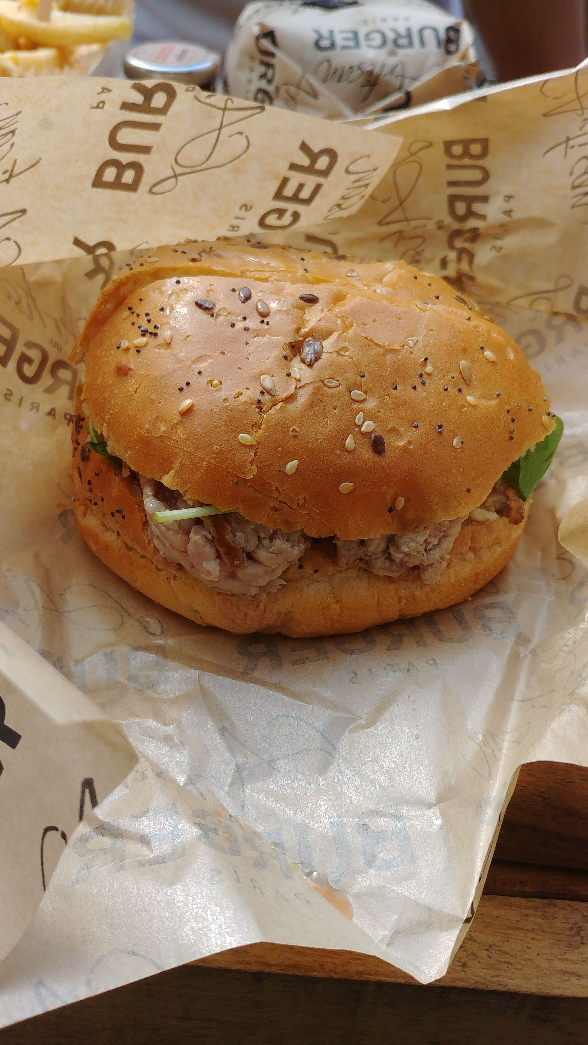 Le burger était bon et original quoiqu un peu petit. Les frites sont trop sèches, c est dommage...