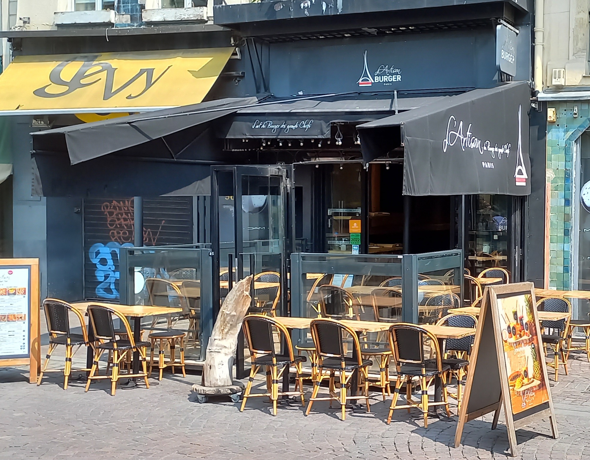 Je fréquente ce restaurant depuis plusieurs années, en mangeant sur place, mais depuis hier soir, c’est terminé. L’entrée est bloquée par un vélo de livreur. La remarque est faite au serveur qui répond « ah mais on a l’habitude… » ! Les livreurs entrent comme dans un moulin sans masque et sans respect des normes sanitaires, sans que le personnel s’en émeuve le moins du monde. Le passe sanitaire n’est pas controlé et là encore, le serveur a une réponse toute prête : « on s’en fout ! » Enfin, le burger, qui est heureusement bon, est servi tiède. Rapport qualité/prix/sécurité voisin de zéro : adieu !