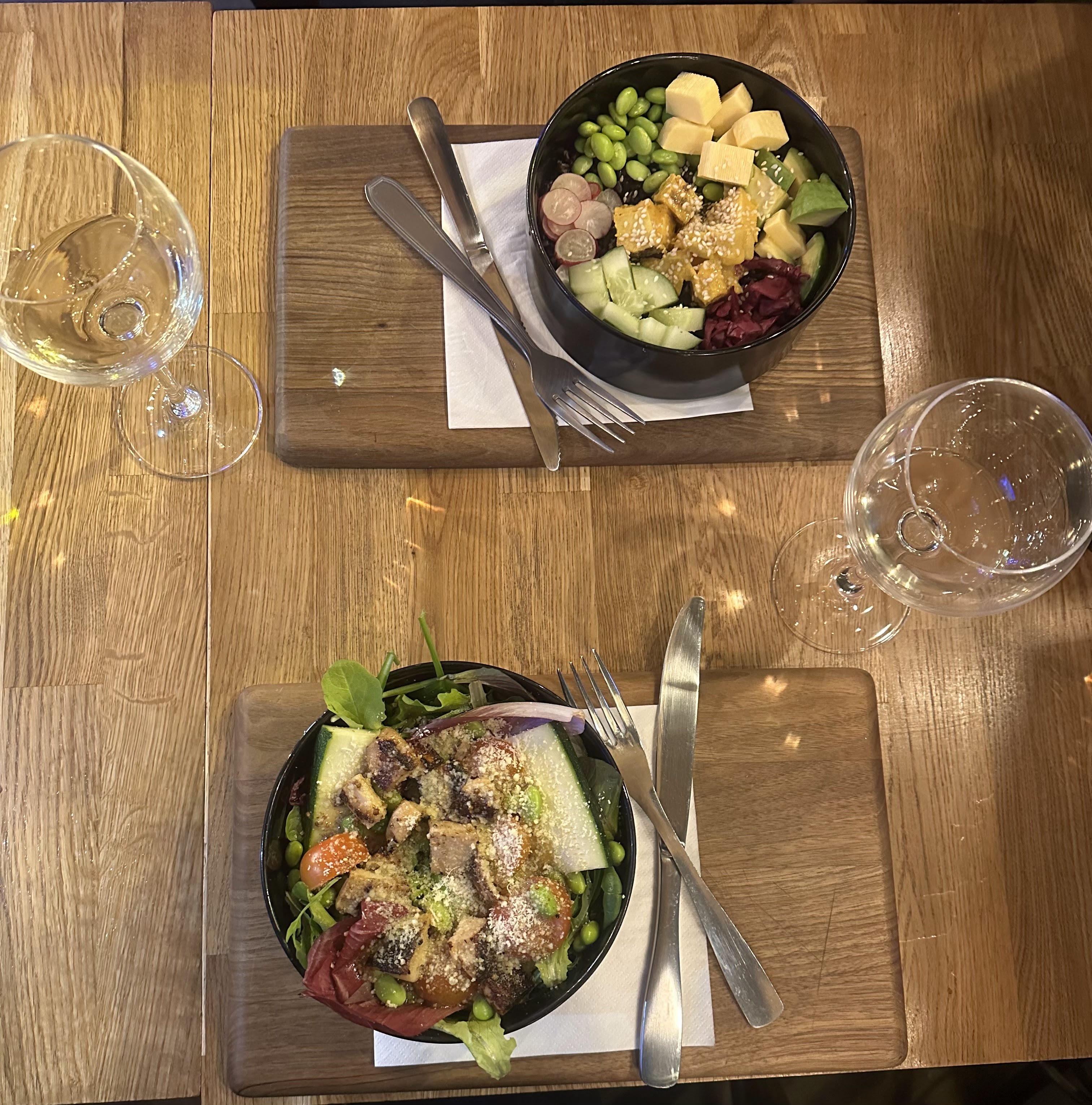 Une enseigne burger - salade qui au final est quand même plutôt industriel avec un style qui laisse penser le contraire au premier abord. Déçue par l’assaisonnement du plat qui semblait inexistant pour les légumes et inapproprié pour le poisson. Il s’agit plus d’une franchise industriel rapide qui propose du healthy en plus de ses burgers que d’un lieu où manger bien et sainement. Des toilettes à l’hygiène un peu douteuse suite au passage d’une personne très probablement peu soucieuse de la vie en communauté ou d’un enfant mal éduqué... Pas de savon disponible. Le personnel était cependant sympathique !