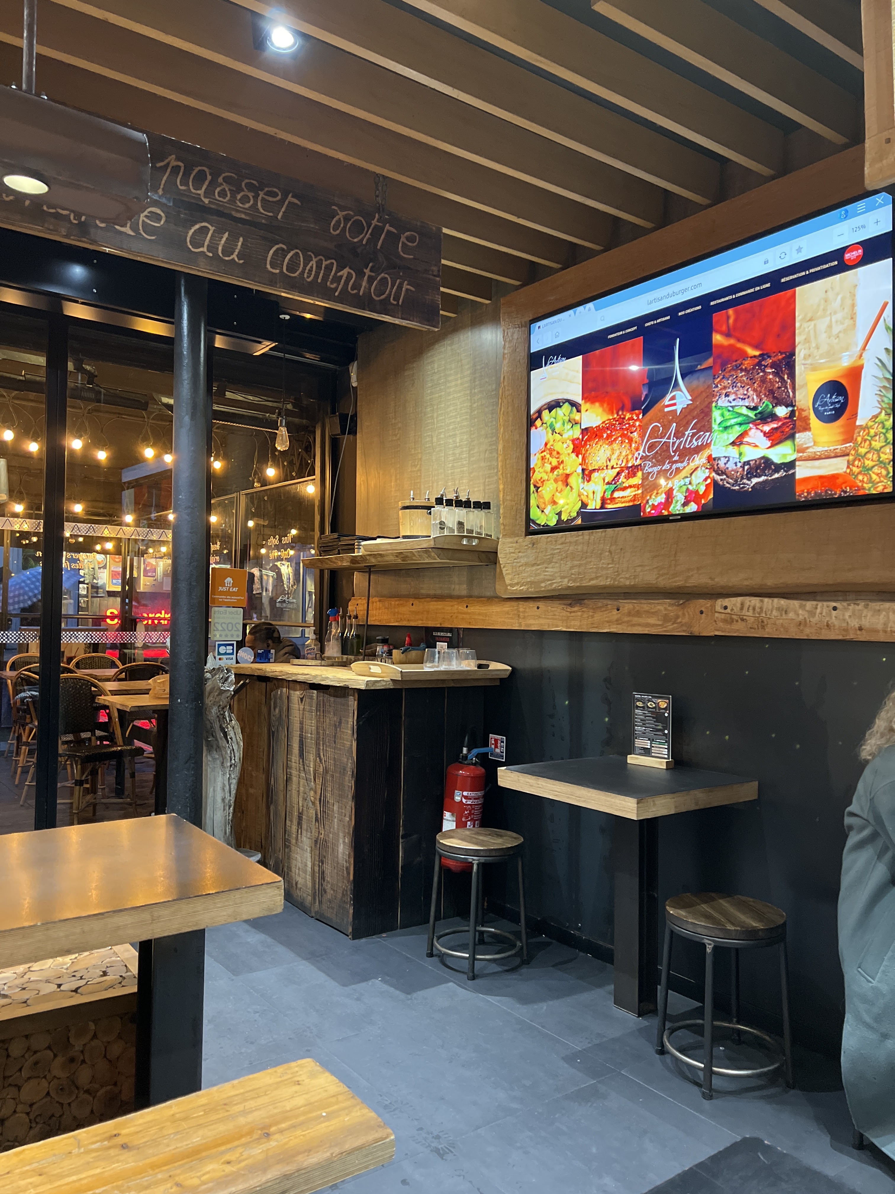 Étant le staff (entre 4 à 8 personnes) d'une des boutiques situées à côté, nous sommes allées manger deux fois dans moins de trois semaines chez l'Artisan. Les burgers sont excellentes -pensez à les commander saignantes!- parce que leur matières premières sont excellentes, ils sont rapides, les tables sont propres et l'accueil est très chaleureux. Alexandra, la propriétaire, est un vrai bijou! Merci de ce magnifique accueil que tu nous as dédié ces deux fois. Il aurait une 3ème, une 4ème, une 5ème... Recommandée par ses voisins au 100%!!