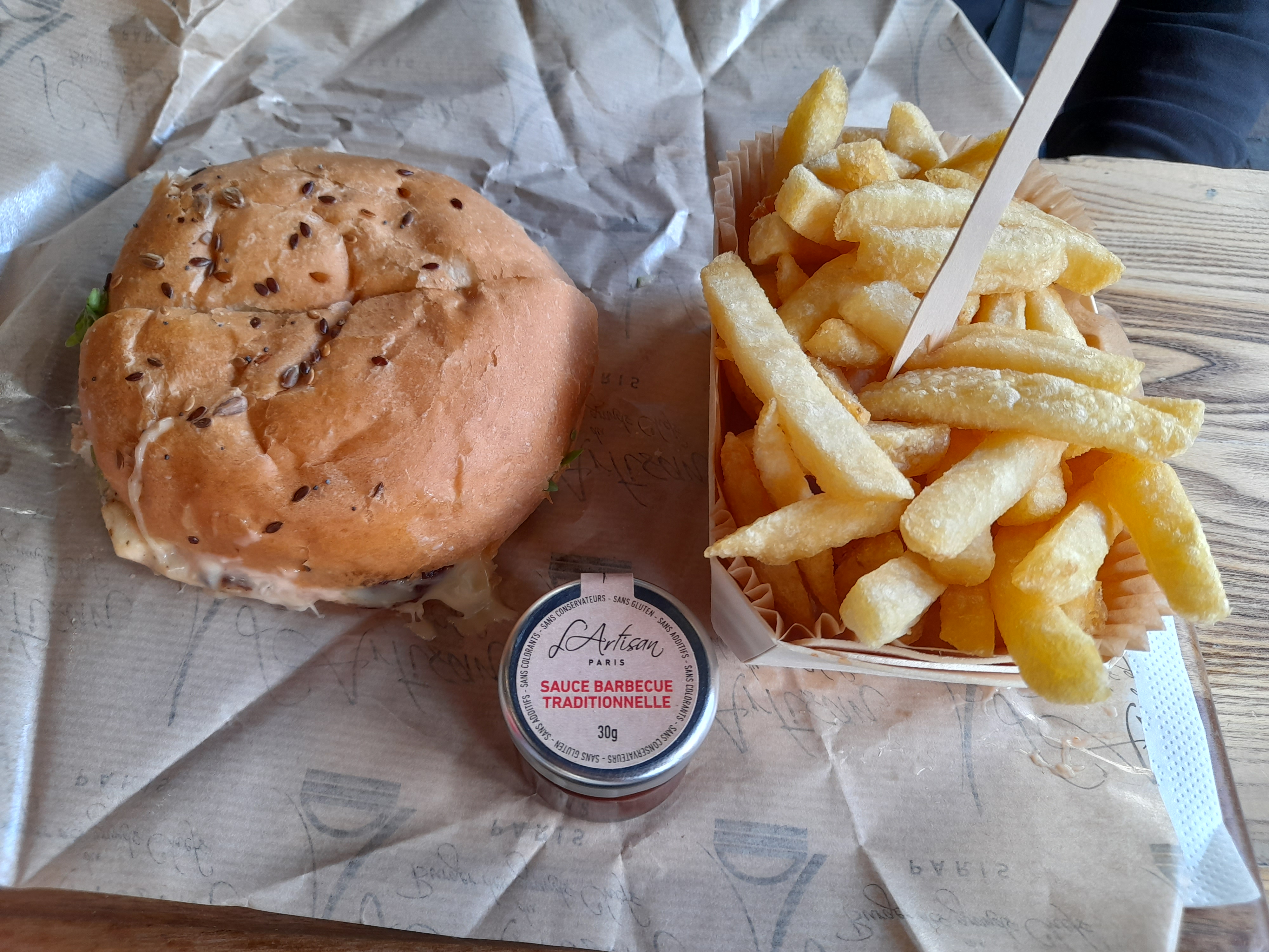 Belle découverte d’un petit restaurant de Burger. Très bon et les frites étaient bien cuites et croustillantes. Possibilité de choisir entre deux pains ! Les sauces de l’Artisan Burger étaient vraiment bonnes aussi. Un peu petit mais possibilité de prendre à emporter ou de se faire livrer. Les gestes barrières sont bien respectés! Au top 💪🏼