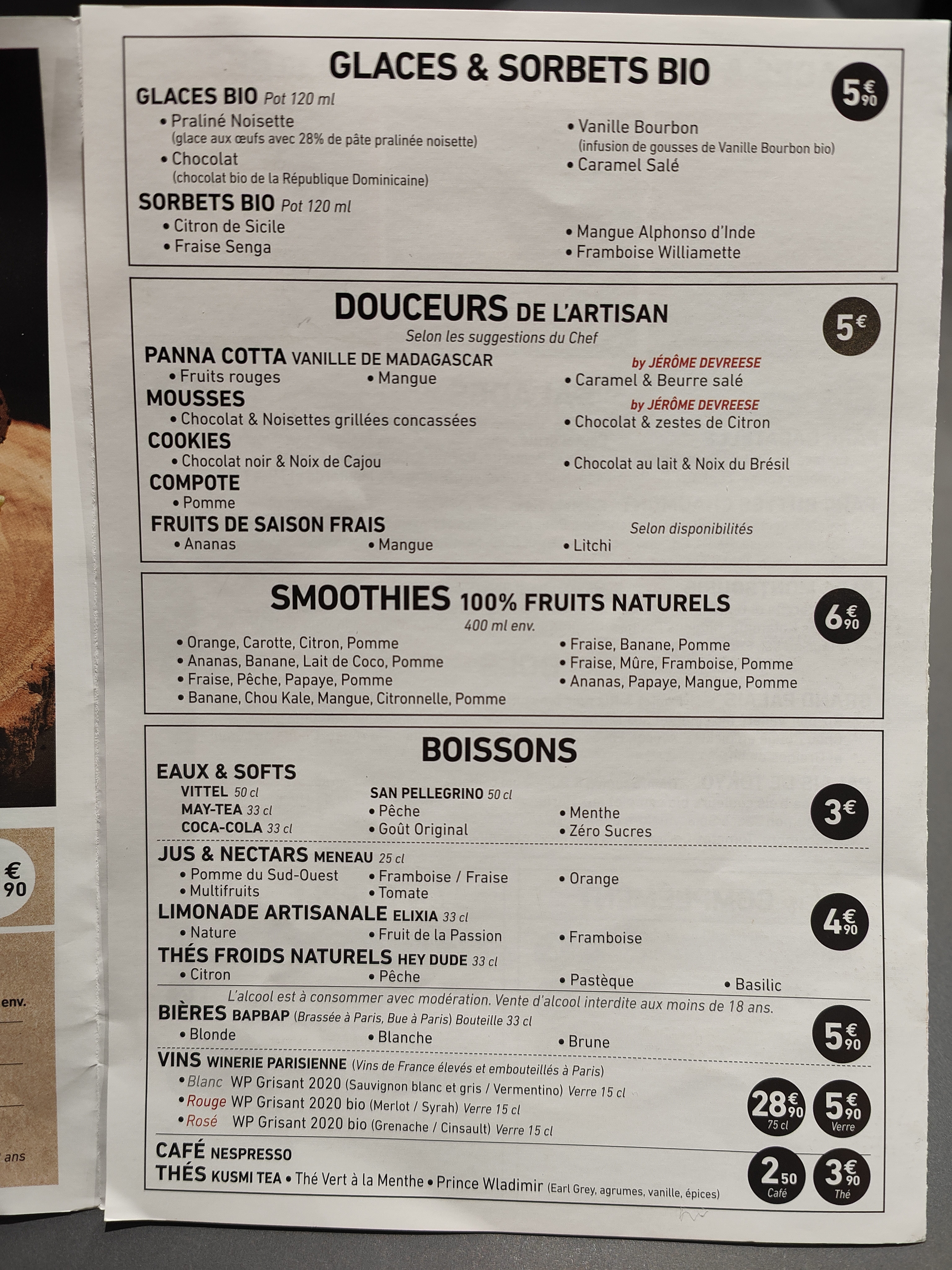 J'ai pris une salade ce jour à la burrata à emporter. Je suis extrêmement déçu le prix était conséquent pour une petite salade non pas à la burrata mais aux billes de mozzarella! J'ai également pris une mousse au chocolat, qui ressemblait surtout à du chocolat fondu au sucre. Vraiment pas bon et pas du tout qualitatif, d'autant plus au vue du prix!