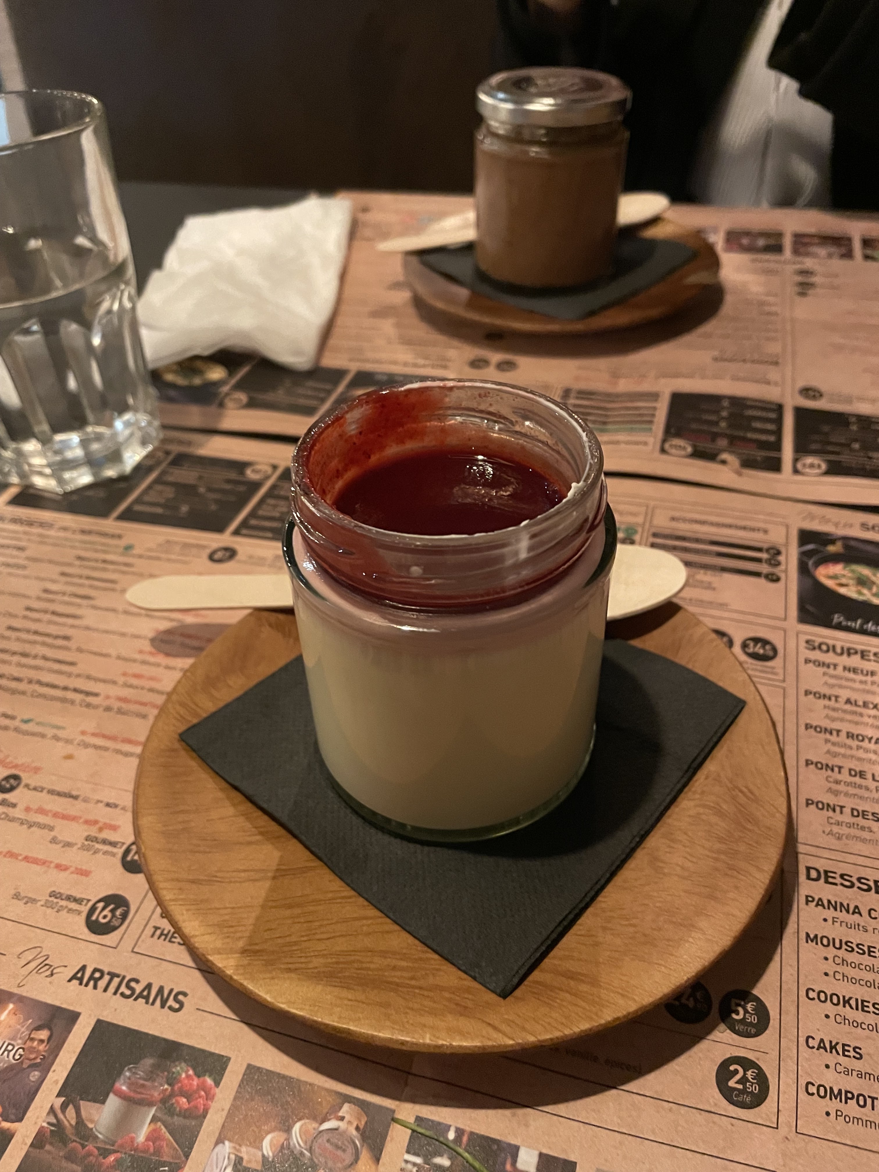 C’est la première fois que je mange un burger qui ne m’écœure pas. Leurs burgers sont très bons, frais et pas gras contrairement aux fast food ou autres restos de burgers.. La panacotta aux fruits rouges était aussi très bonne! Juste dommage qu’il y ai une odeur vraiment désagréable de remontées d’égouts.