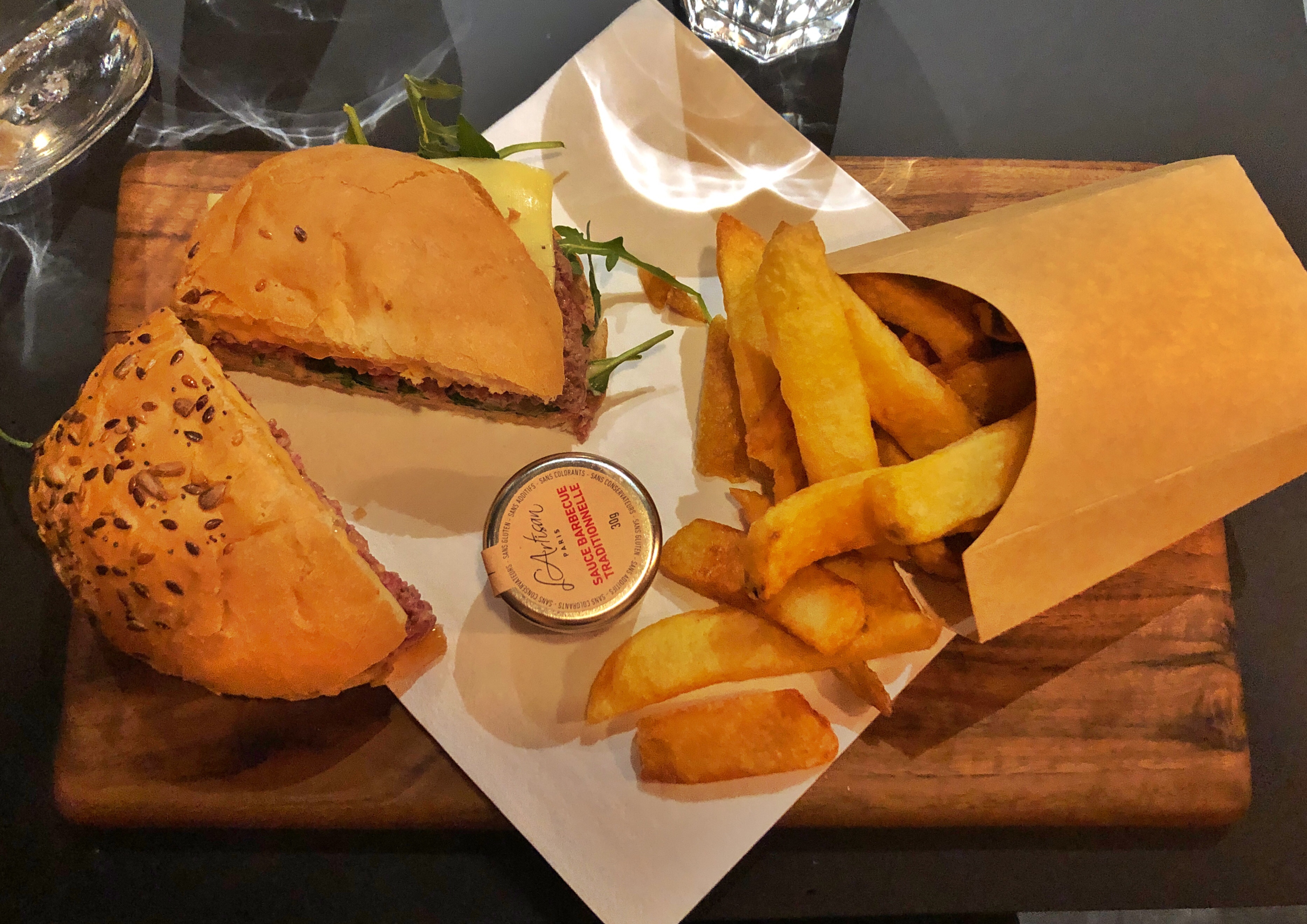 L’artisan du burger vous livrera un burger très bien cuit et goûteux ! Alors un soir de match de foot on peut avec plaisir lié le tout. Excellentes frites avec pour moi une sauce espelette