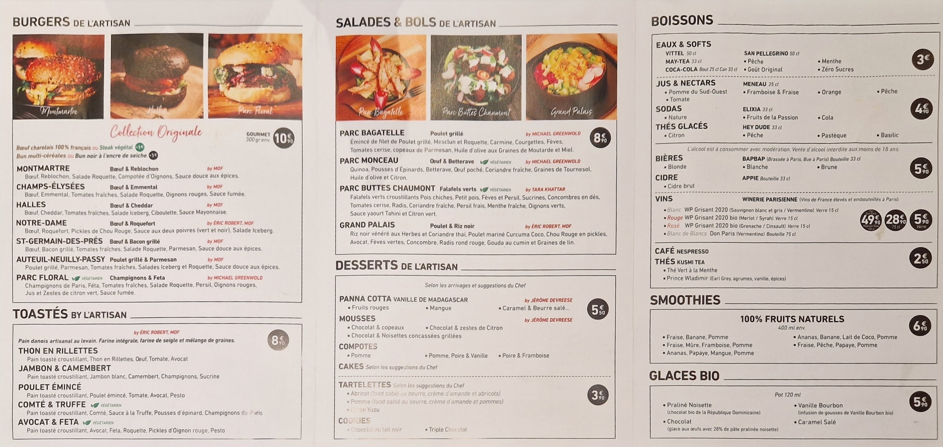 J'ai pris le burger Montmartre il est excellent. Frittes très bonnes aussi à prendre en formule (13.50€) Prix correct vu la qualité.