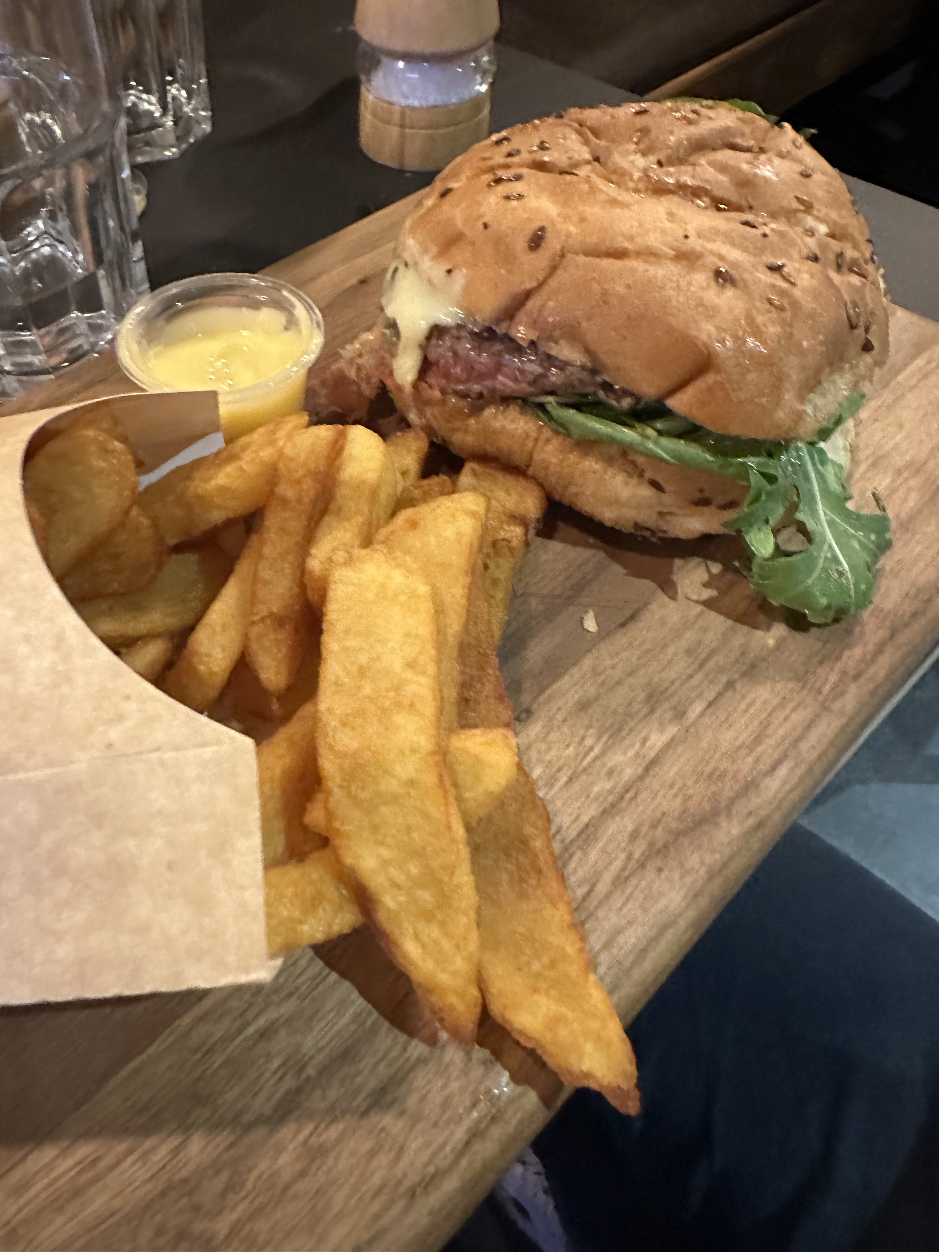 La serveuse agréable, burger bien mais sauce et frite non, ambiance 😞