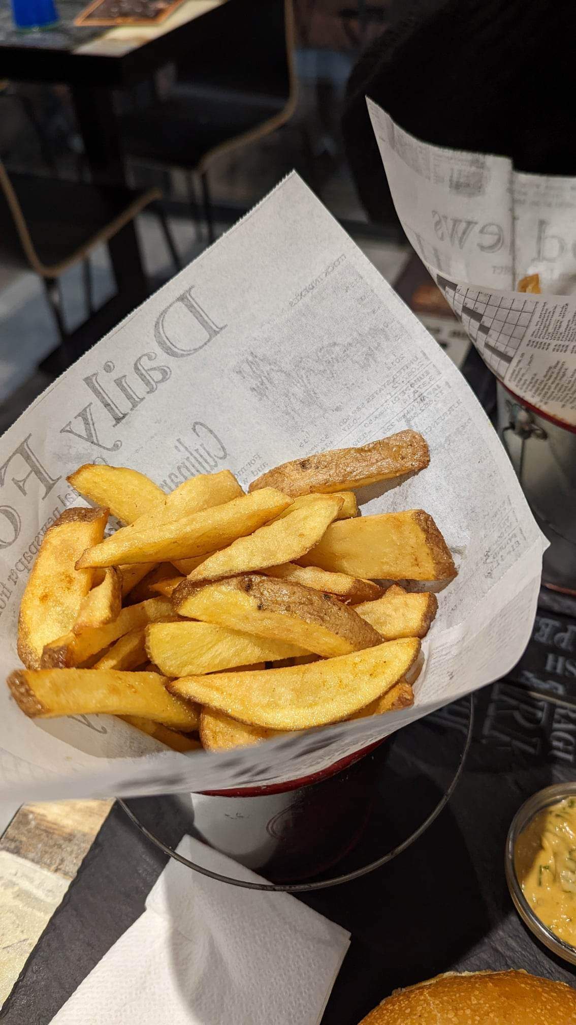 Très bon burger et excellentes frites maison. Mention spéciale pour la sauce verte 🥰 Petit bémol sur la ventilation HS
