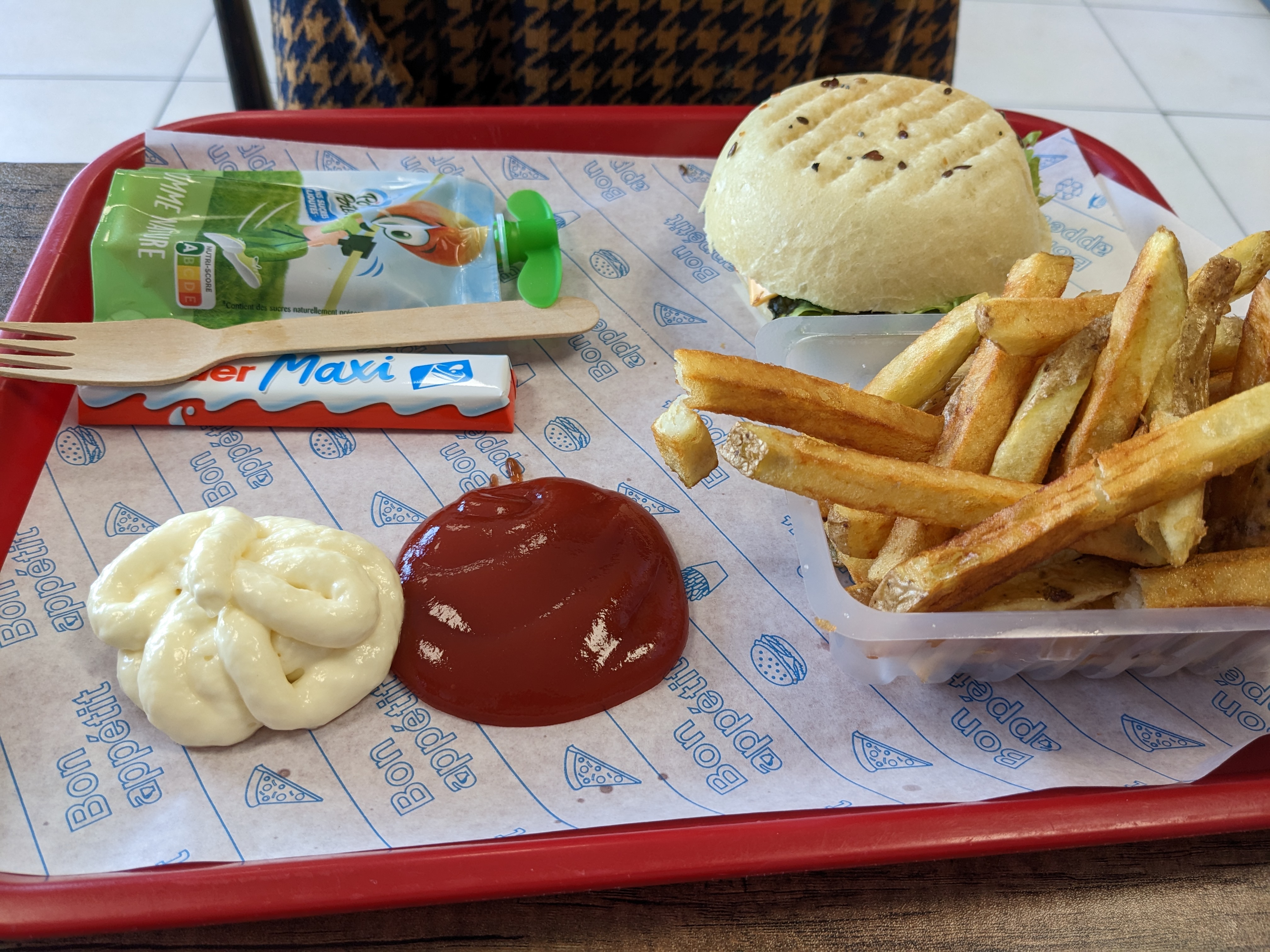 Passage du midi bien aimable, les frites au top maison, un américain très bon