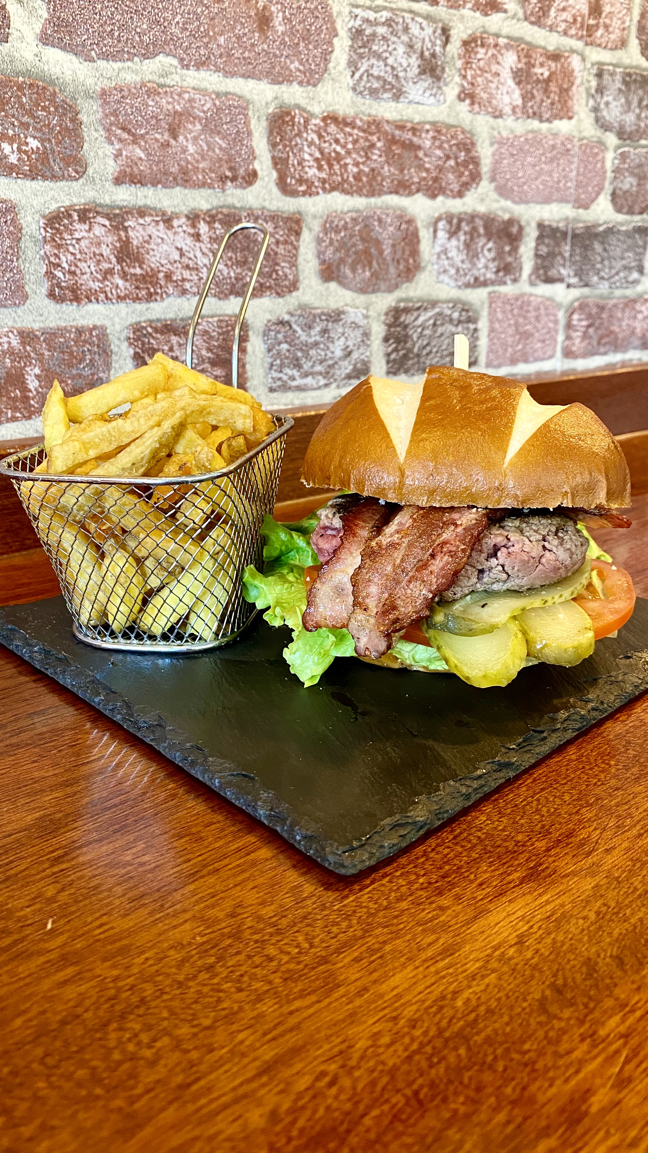 Parfait. Facile de commander en ligne, tout est clair. La commande a été livrée à l’heure demandée. Les hamburgers ( BIG & BACON)sont tout simplement délicieux, du « vrai » steak haché et très bien garni. Les frites très bonnes également. Très contente de cette première commande.