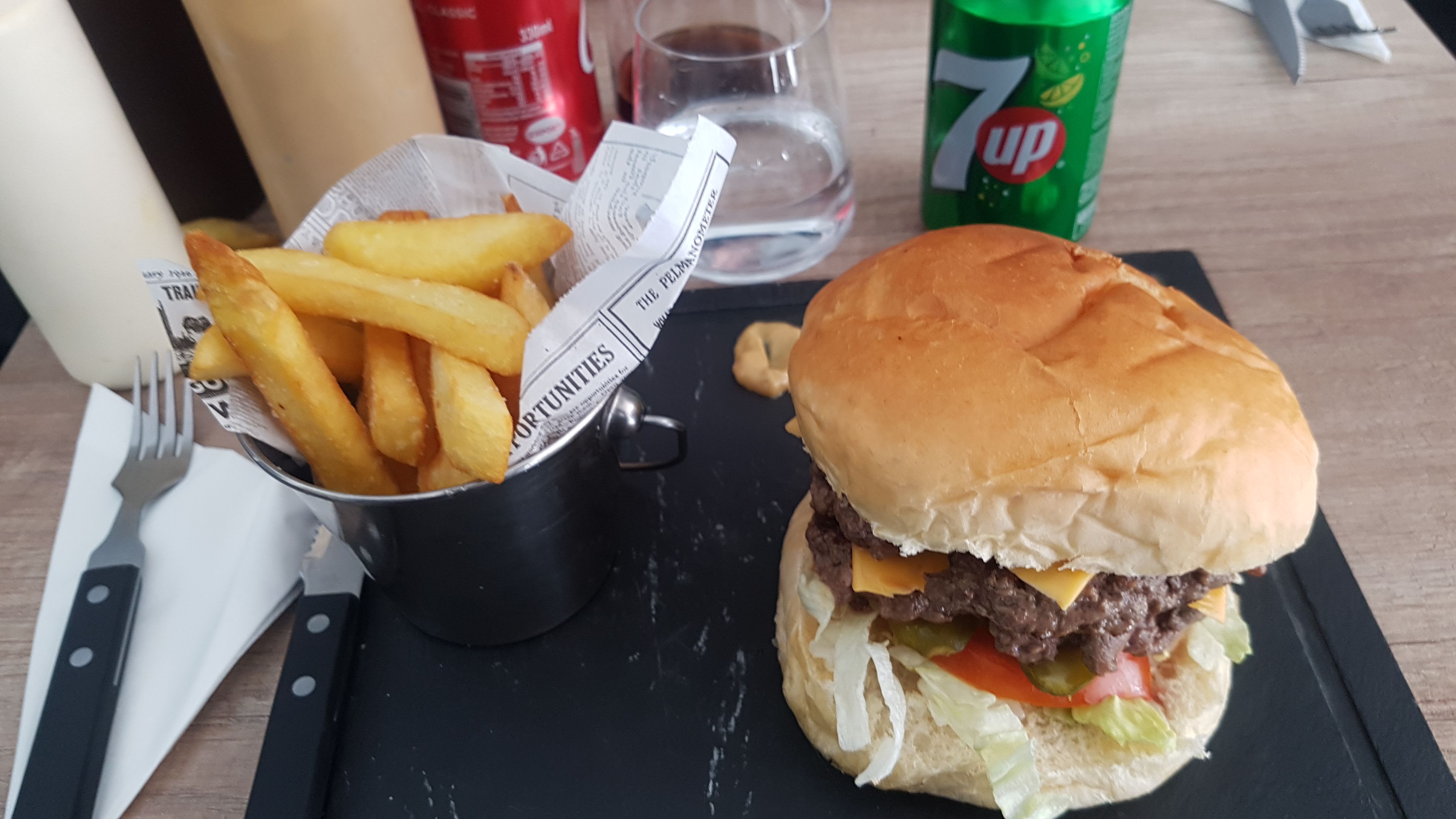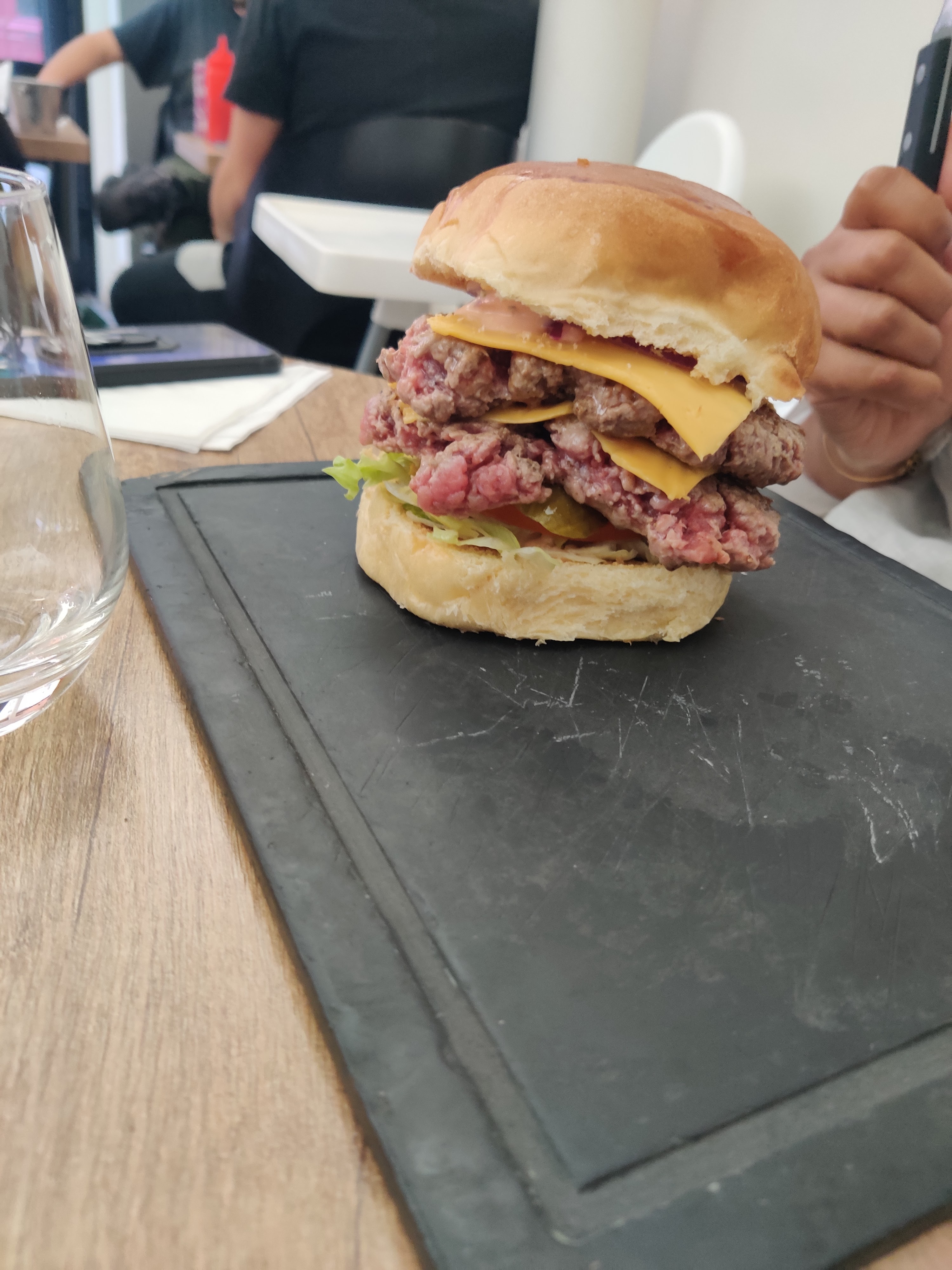 Premier repas de 2023 et quelle expérience culinaire ! Ma première initiative de l’année aura été de tenter le Burger 300g (double steak), mais je n’aurais jamais imaginé qu’une prise de rdv chez un dentiste en parallèle était indispensable. Les steaks (ou peut être les briques?) étaient si cuits que le pauvre animal semblait avoir été abattu une deuxième fois. On peut aussi parler des frites, de la salade, des sauces .. ni fait ni à faire. 50€ pour deux Burger avec boisson Bonne année 2023 !